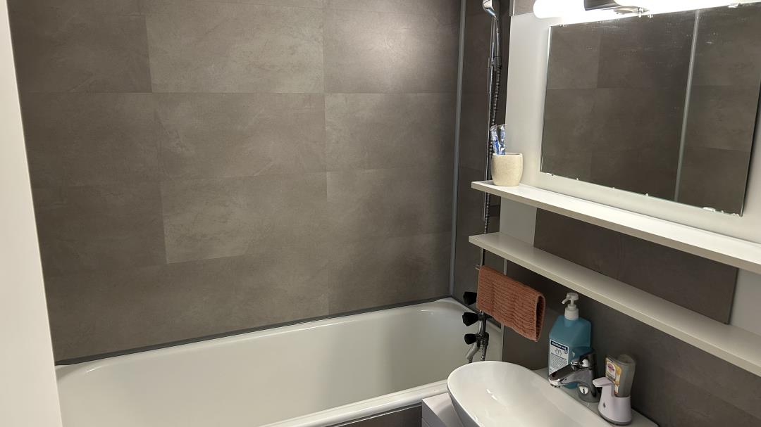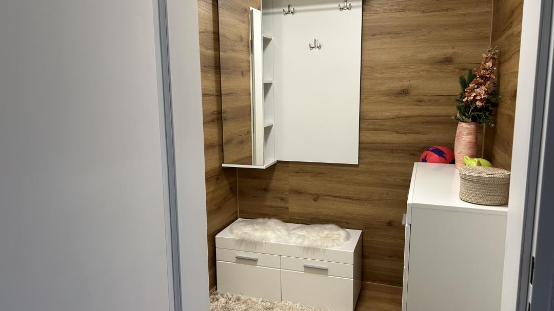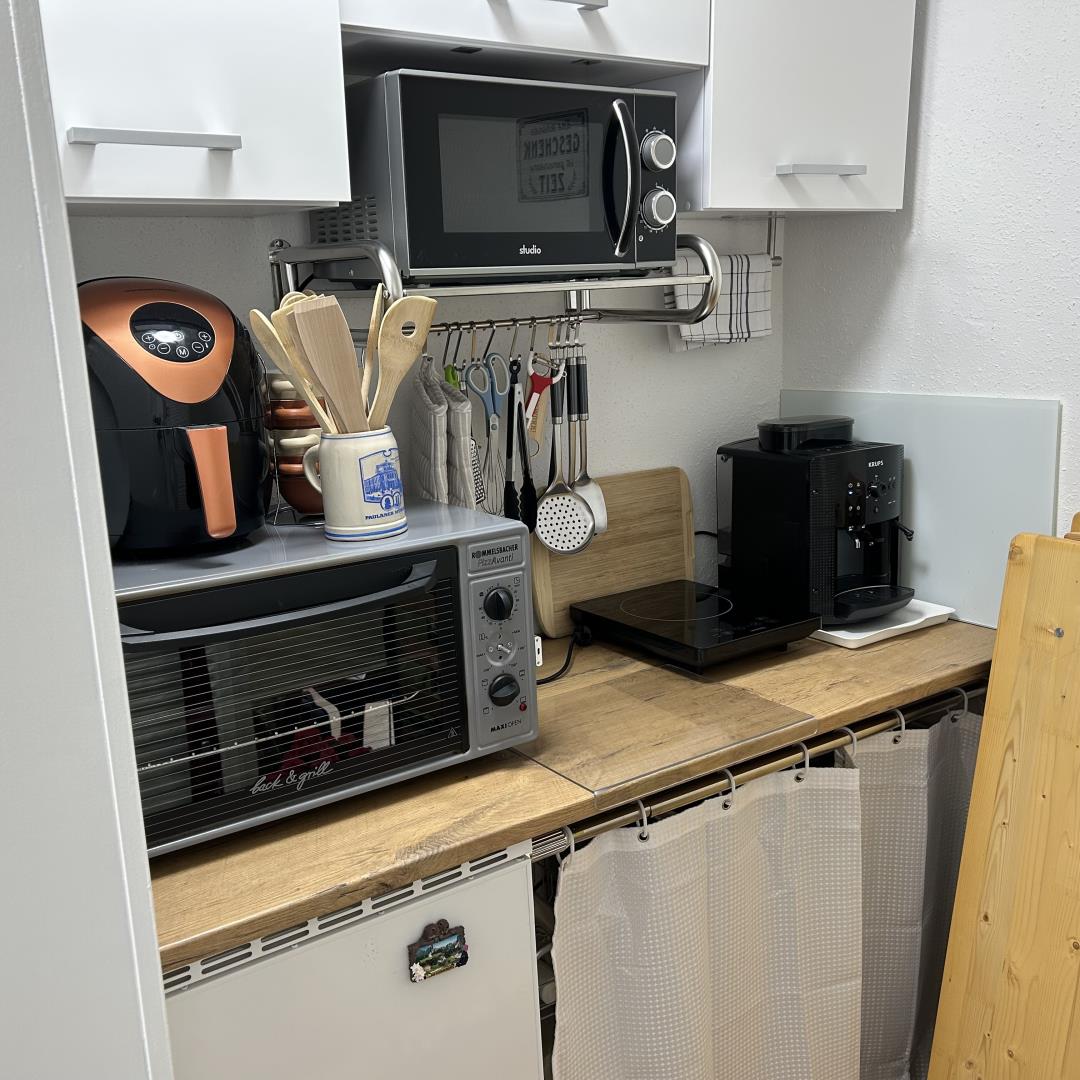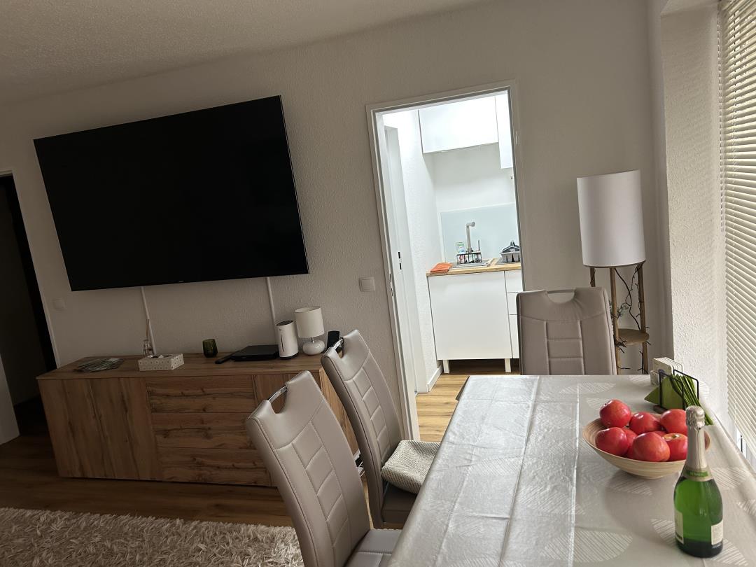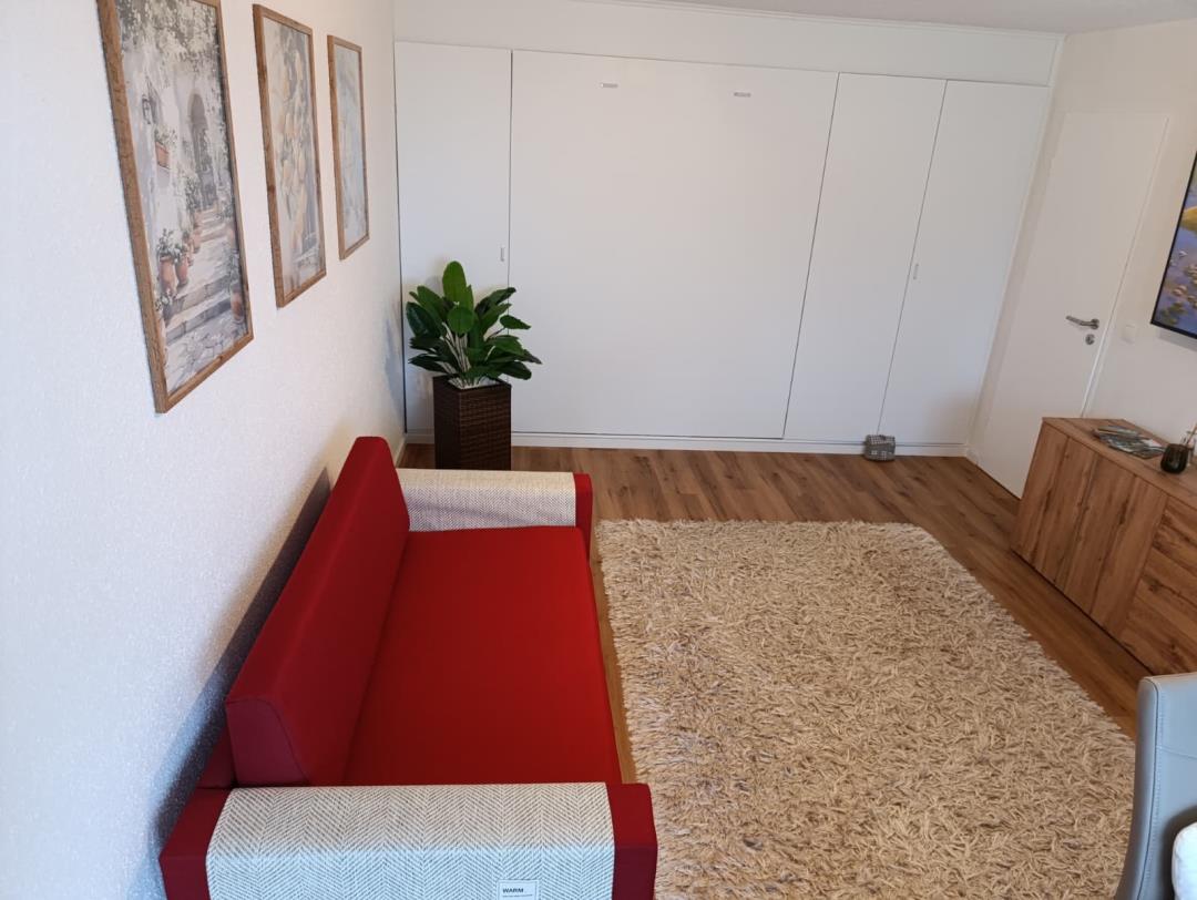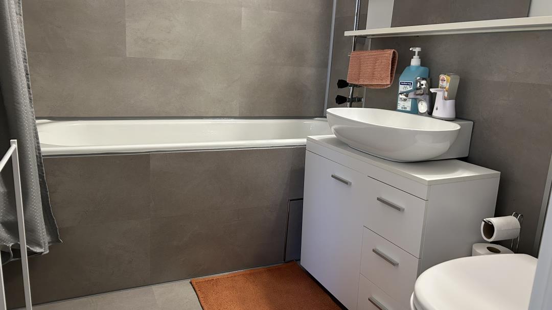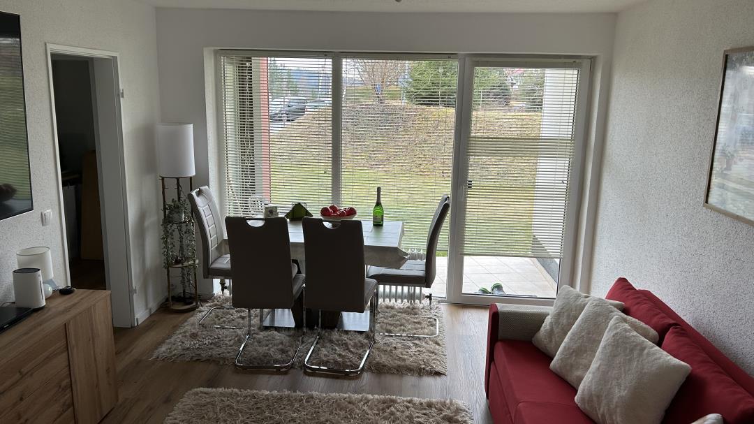 Dieses gemütliche Erdgeschoss-Apartment überzeugt mit einer einladenden Terrasse und einer besonders komfortablen Lage direkt neben dem Haupteingang sowie dem Parkplatz. Beim Betreten erwartet Sie ein praktisches Vorzimmer, gefolgt von einem Badezimmer mit WC und Badewanne. Der kombinierte Wohn- und Schlafraum bietet maximale Flexibilität: Ein hochwertiges Wandbett sowie eine Schlafcouch sorgen für erholsame Nächte. Ein Esstisch mit vier Stühlen lädt zu gemeinsamen Mahlzeiten ein. Die Küche ist umfassend ausgestattet und ideal für den täglichen Gebrauch wie auch für längere Aufenthalte. Zur Verfügung stehen: – Kaffeemaschine (Bohnen) – Airfryer – großer Pizza-/Backofen (freistehend) – Mikrowelle – Induktionskochplatte (1 Feld) – Wasserkocher – Toaster – Kühlschrank mit Gefrierfach – Ausreichend Besteck für 4 Personen Die Terrasse ist sowohl vom Wohn- als auch vom Schlafbereich aus begehbar und bereits möbliert – perfekt zum Entspannen an der frischen Luft. Die Bettwäsche und Handtücher sind ebenfalls bereits im Mietpreis inkludiert. Ein rundum komfortables Apartment mit allem, was man für einen angenehmen Aufenthalt braucht.