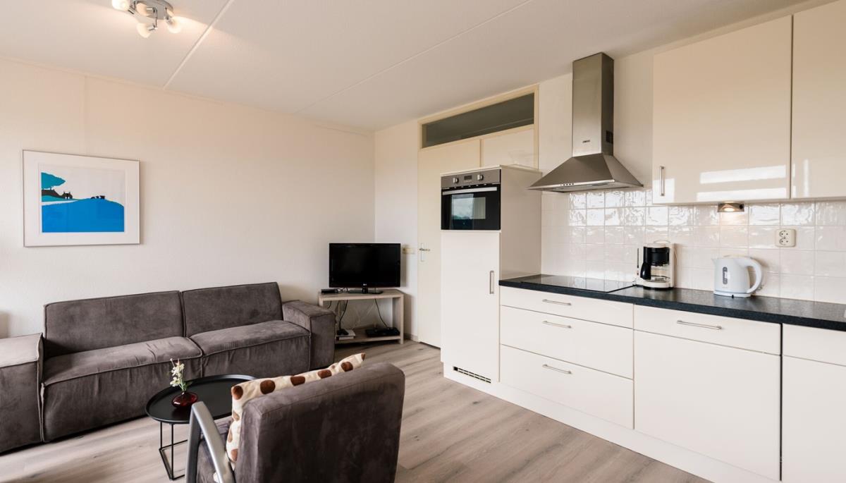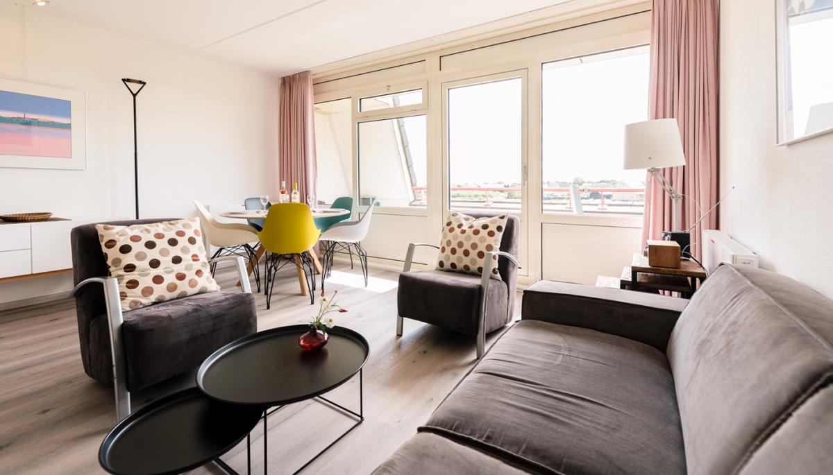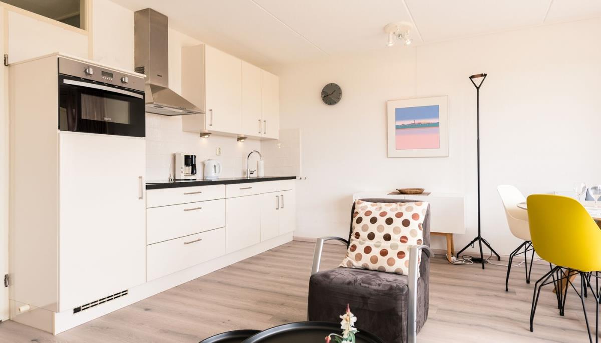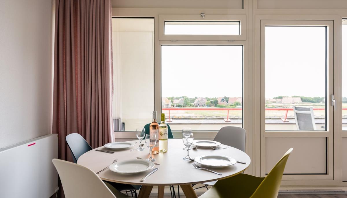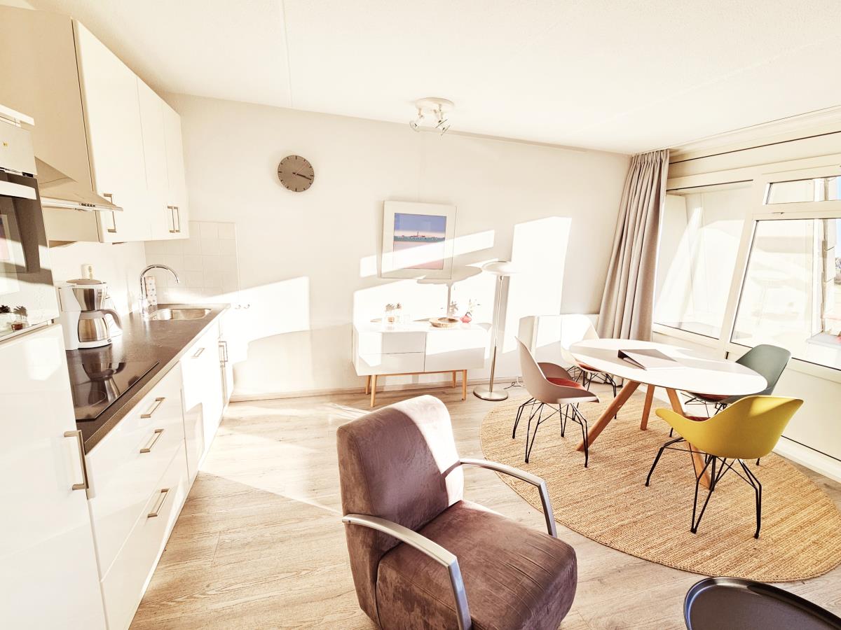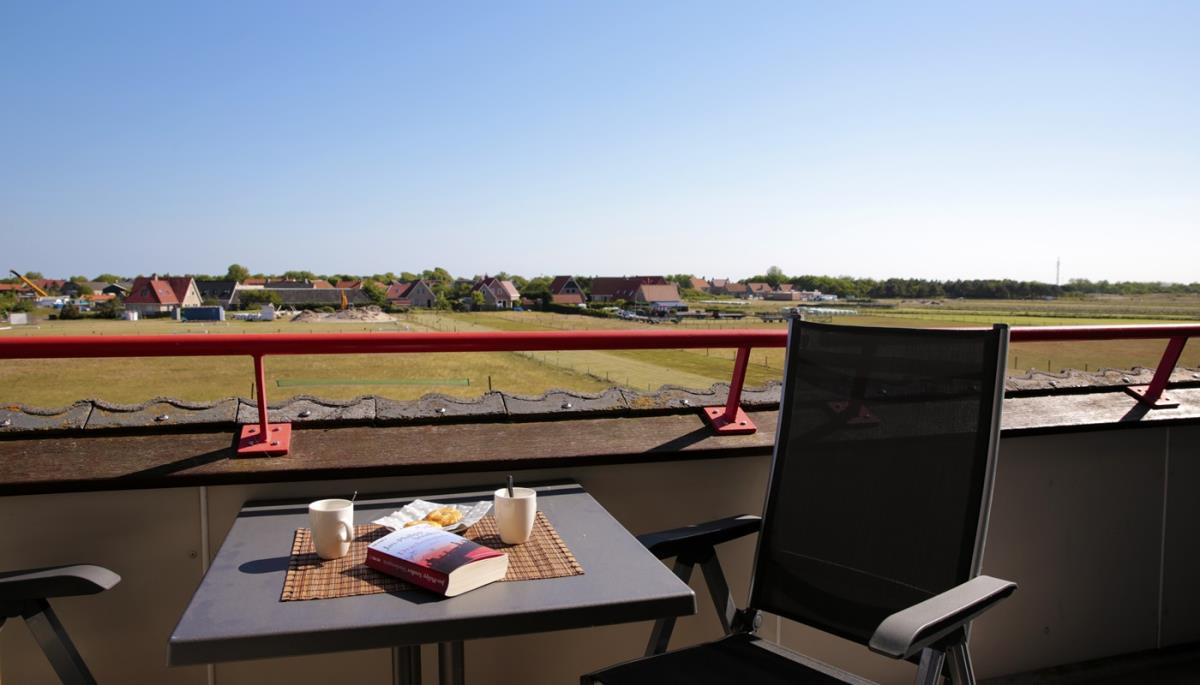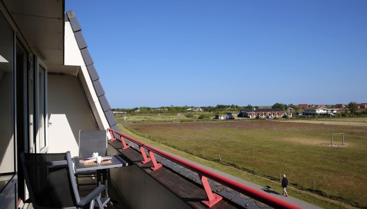Vom Wohnzimmer, der Küche und einem der Schlafzimmer aus haben Sie Zugang zum Balkon mit direktem Blick nach Süden und nach rechts über das atemberaubende Naturgebiet „De Vlijen“ im Westen von Ameland.