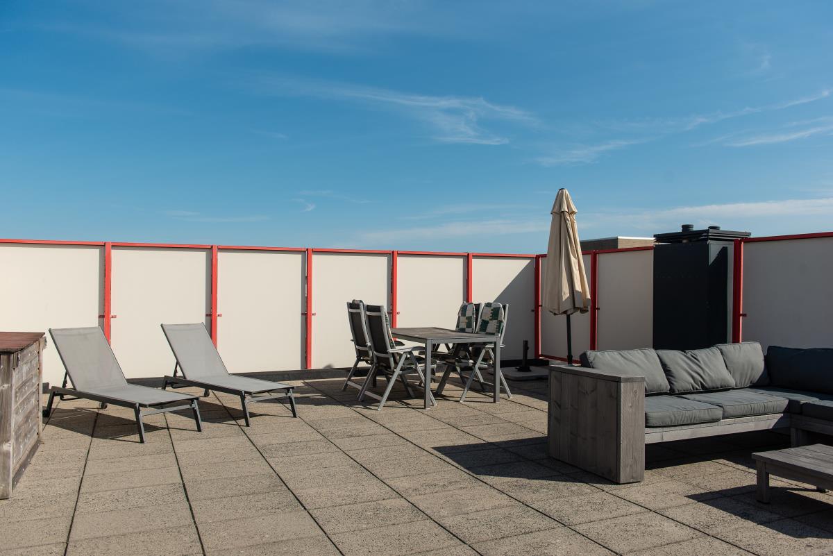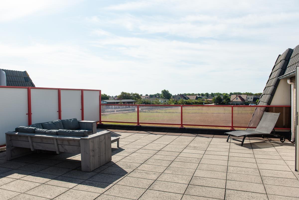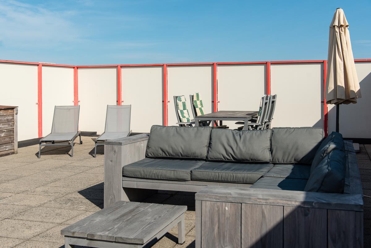 Schönes Appartement in der 2. Etage des Amelander Paradijs, in dem Haustiere erlaubt sind. Dieses Appartement hat ein gemütliches Wohnzimmer mit Ess- und Sitzecke. Die offene Küche ist unter anderem mit Mikrowelle, Geschirrspüler und einem kleinen Backofen ausgestattet. Das Besondere an dieser Wohnung ist die außergewöhnlich schöne und große Dachterrasse - ein Unikat im Amelander Paradijs. Genießen Sie diesen exklusiven Platz an der Sonne!