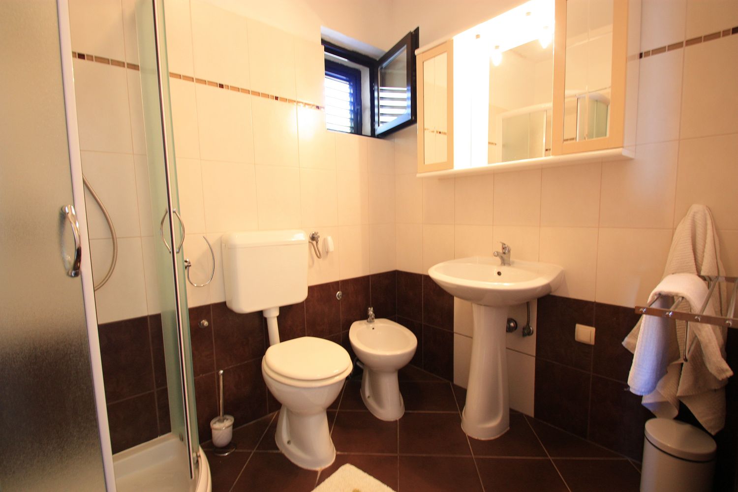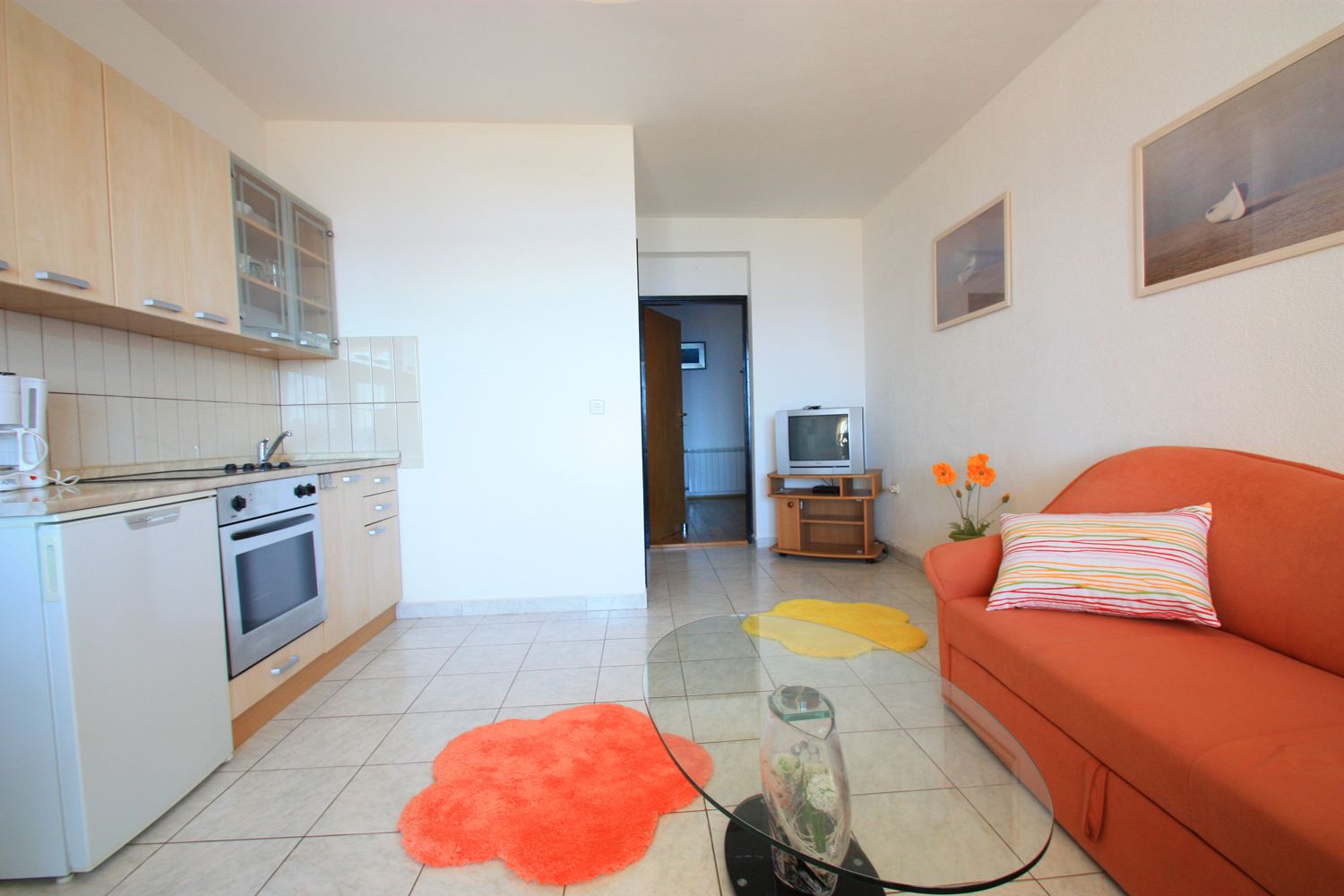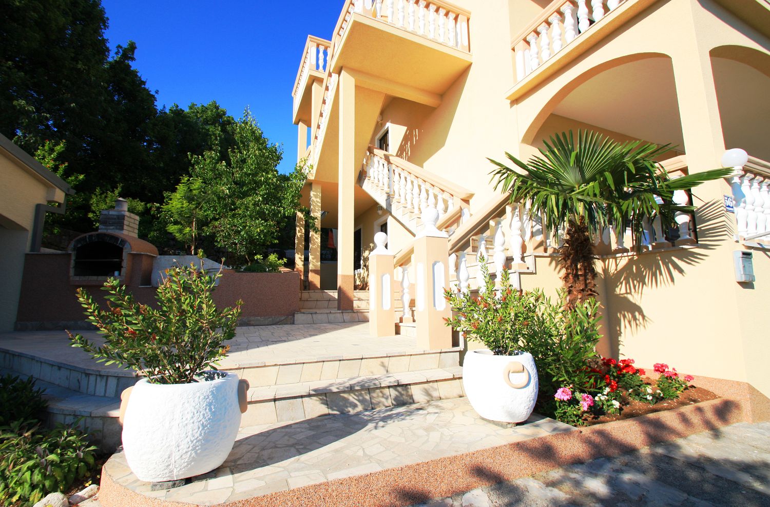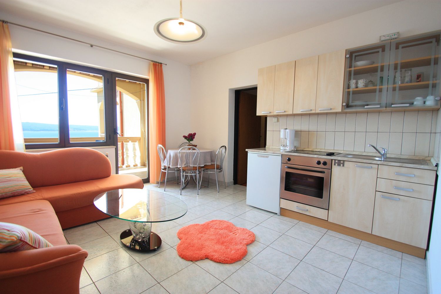 Gemütliche Ferienwohnung in der ruhigen Ortschaft Dramalj. Die Wohnung besteht aus einem Wohn-/Esszimmer mit Küche, in dem sich eine Schlafcouch für eine Person befindet. Von hier aus hat man Zugang zu einem teilweise überdachten Balkon mit herrlichem Meerblick. Außerdem gibt es zwei Schlafzimmer und ein Badezimmer. Die Klimaanlage und der Fernseher mit Satellitenempfang stehen gegen Gebühr zur Verfügung und befinden sich im Wohnbereich. Im Außenbereich befinden sich ein gemeinsamer Grill und ein großer Privatparkplatz.