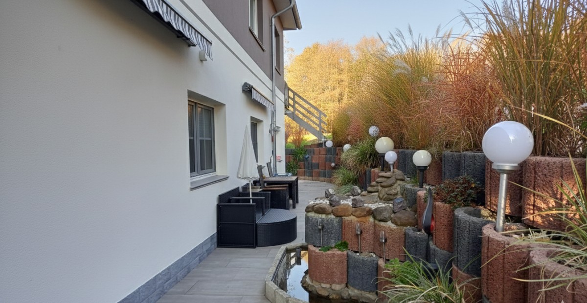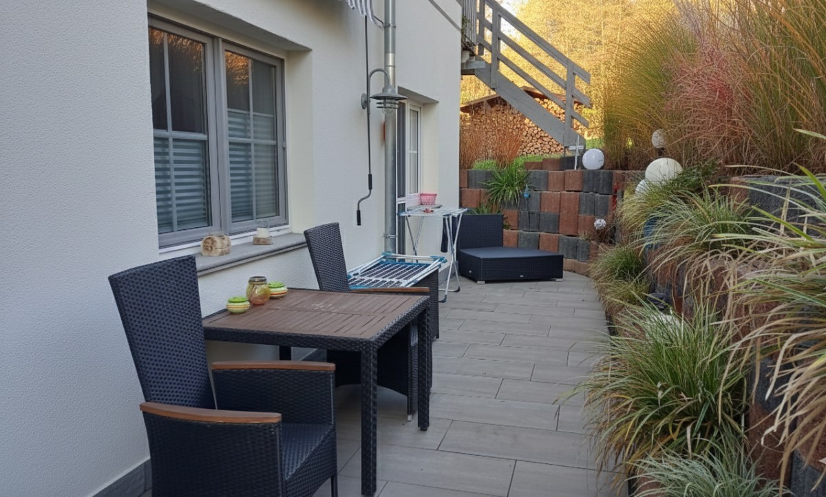 Genießen Sie die Natur auf Ihrer privaten Terrasse mit Markise, gemütlicher Sitzecke und Lounge-Möbeln. Ihr Parkplatz befindet sich für maximalen Komfort direkt vor der Haustür. Die gesamte Wohnung ist mit einer behaglichen Fußbodenheizung ausgestattet.