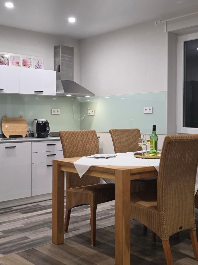 Modernes Wohnen in Bad Berleburg – Ihre komfortable Ferienwohnung auf Zeit - Willkommen in unserer modernen und großzügigen Ferienwohnung in Bad Berleburg. Auf 85 qm Wohnfläche im Obergeschoss bietet die Wohnung ausreichend Platz für bis zu 6 Personen und ist ideal für Familien, Paare oder Freunde, die einen entspannten Aufenthalt im Wittgensteiner Land genießen möchten. Die Ferienwohnung verfügt über zwei separate Schlafzimmer: eines mit gemütlichem Doppelbett sowie ein weiteres Schlafzimmer mit einem komfortablen Schlafsofa. Zusätzlich steht im Wohnzimmer ein weiteres Schlafsofa zur Verfügung. Der helle, offen gestaltete Wohn- und Essbereich lädt zum Verweilen ein und ist mit einer gut ausgestatteten Küche verbunden. Diese bietet Ihnen unter anderem Herd, Backofen, Kühlschrank mit Gefriermöglichkeit, Kaffeemaschine sowie weitere elektrische Küchengeräte – perfekt für die Selbstversorgung. Das moderne Badezimmer ist mit Dusche und WC ausgestattet. Kostenfreies WLAN steht Ihnen während Ihres gesamten Aufenthalts zur Verfügung. Bettwäsche und Handtücher sind selbstverständlich bereits im Mietpreis enthalten. Auch Ihr Hund ist bei uns nach vorheriger Absprache herzlich willkommen. Bitte melden Sie Ihren vierbeinigen Begleiter bei der Buchung an; hierfür berechnen wir 5 € pro Nacht. Freuen Sie sich auf eine gemütliche Unterkunft in ruhiger Lage – der ideale Ausgangspunkt für Erholung, Natur und Entdeckungen rund um Bad Berleburg.