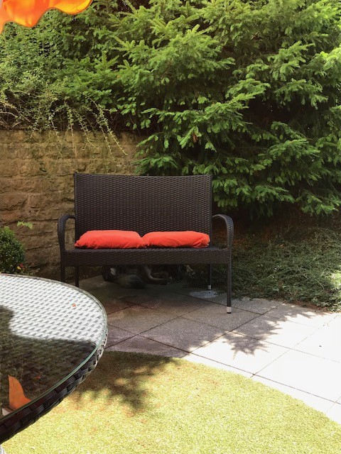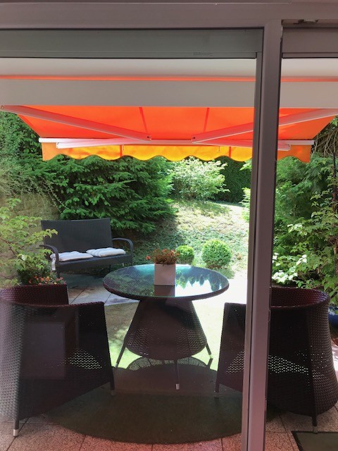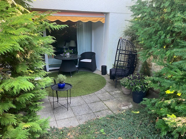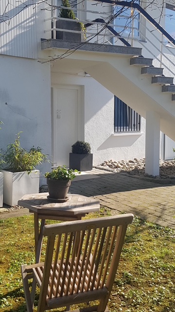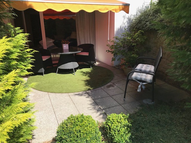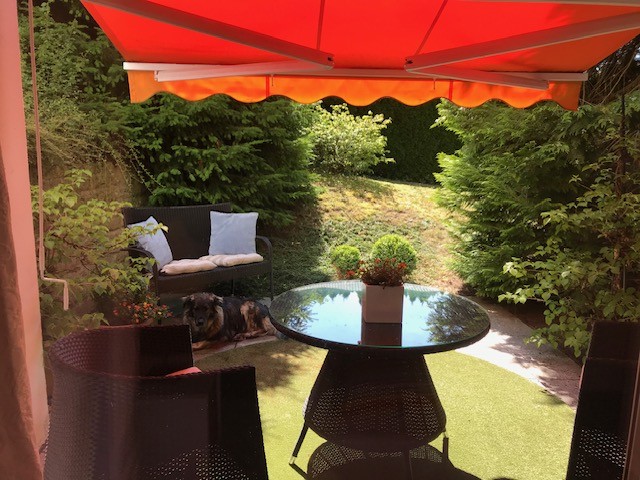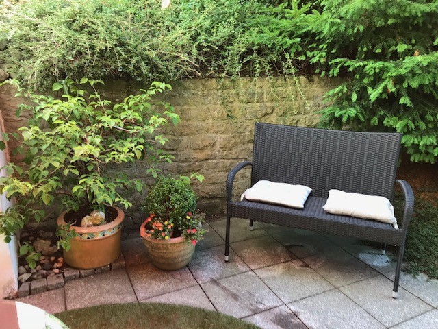 Terrasse & Garten Die private Terrasse bietet einen schönen Blick in den Garten. Hier können Sie frühstücken, entspannen oder den Abend in ruhiger Umgebung ausklingen lassen. Der Garten kann ebenfalls genutzt werden. ________________________________________