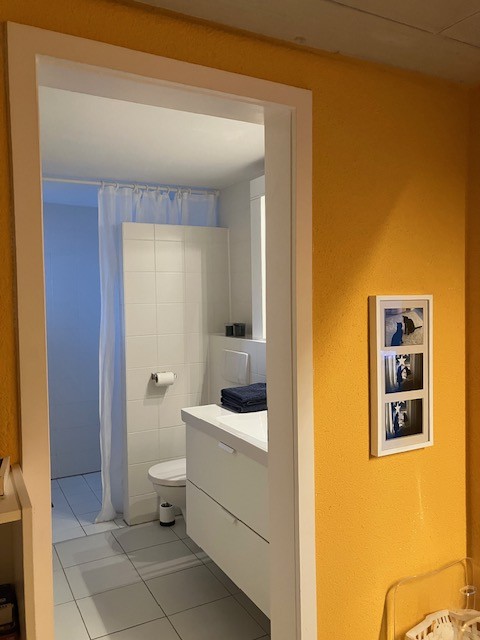 Bad • modernes Badezimmer mit Dusche • Handtücher und Bettwäsche werden bereitgestellt • barrierefreier Zugang