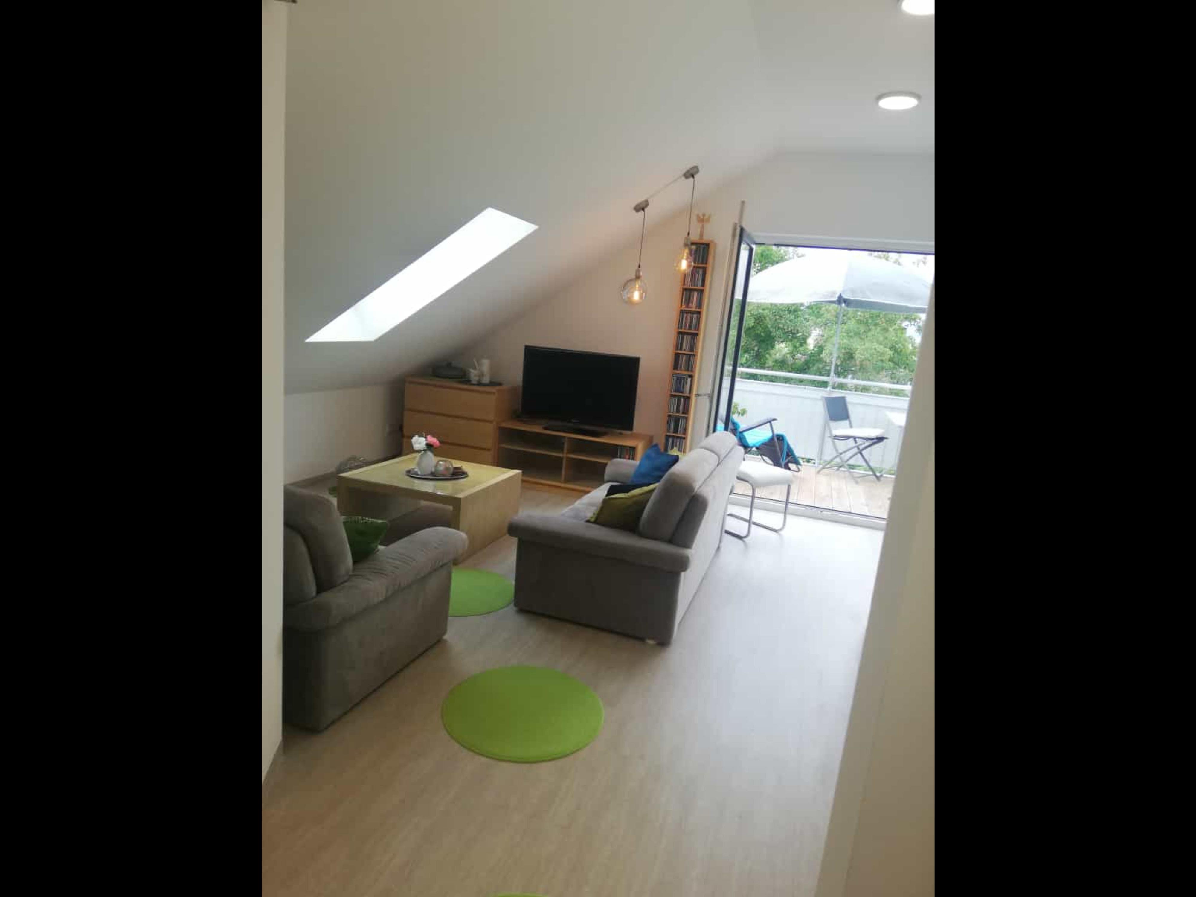 Das moderne Appartement verfügt über eine Wohnfläche von ca. 35 qm und liegt in einem Mehrfamilienhaus mit drei Wohneinheiten in der unterfränkischen Kreisstadt Bad Neustadt an der Saale, Stadtteil Herschfeld am Rande des Naturparks Bayerische Rhön. Im EG befindet sich unsere eigene Wohnung und unter dem Dach das hell eingerichtete Ferien-Appartement, welches erst im Jahr 2020 fertiggestellt wurde. Neben einem separaten Schlafraum und einem Bad bietet die Wohnung eine voll ausgestattete Küchenzeile. Die Wohnung besteht aus einem Schlafzimmer mit franz. Bett 200 cm x 140 cm, einem Badezimmer mit Wanne, Dusche und WC sowie einem Wohn-Essbereich mit moderner integrierter Küchenzeile. Die Küche ist voll ausgestattet inkl. Kühlschrank, Backofen, Mikrowelle, Gefriermöglichkeit und Spülmaschine. Der Balkon ist möbliert und dieser Wohnung zugehörig. Hunde sind bei uns herzlich willkommen. Wir freuen uns auf Ihre Buchung.