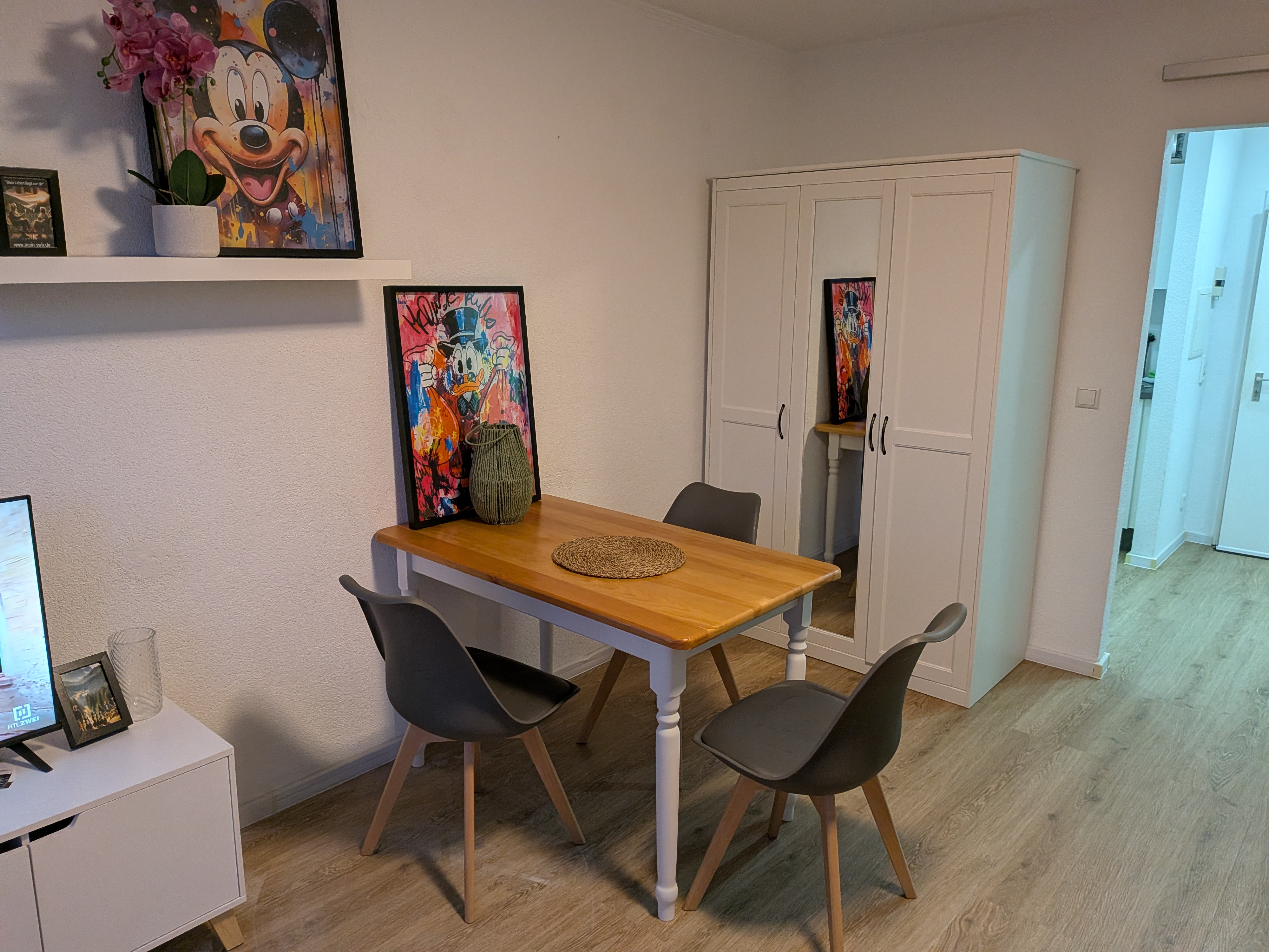 Die 34 m²-Wohnung ist kompakt, gemütlich und praktisch eingerichtet. Sie verfügt über eine gut ausgestattete Küche mit Mikrowelle, Senseo-Kaffeemaschine, Toaster, Wasserkocher und allem, was man für den täglichen Bedarf benötigt. Ein Sat-TV steht ebenfalls zur Verfügung. Die beiden Einzelbetten können auf Wunsch zusammengestellt werden.