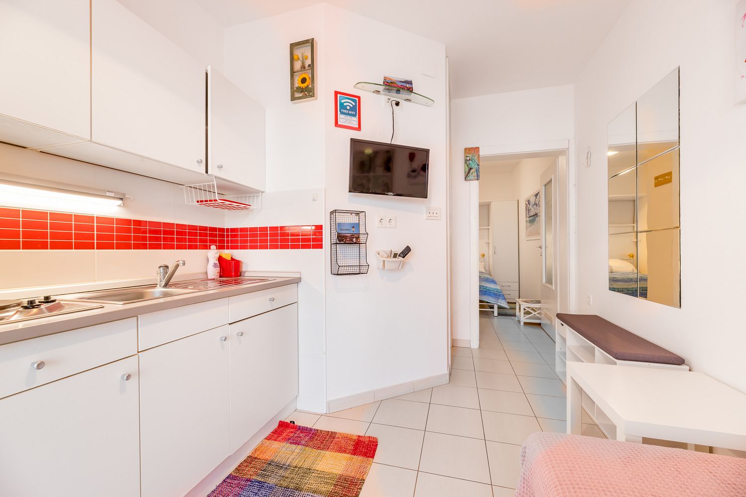 Vom Objekt bis zum Strand sind es 10 Meter und die Entfernung zum Zentrum beträgt 900 Meter. Das nächstgelegenste Lebensmittelgeschäft befindet sich 100 Meter von der Ferienimmobilie entfernt. In 50 Metern ist das umliegende Restaurant zu erreichen.