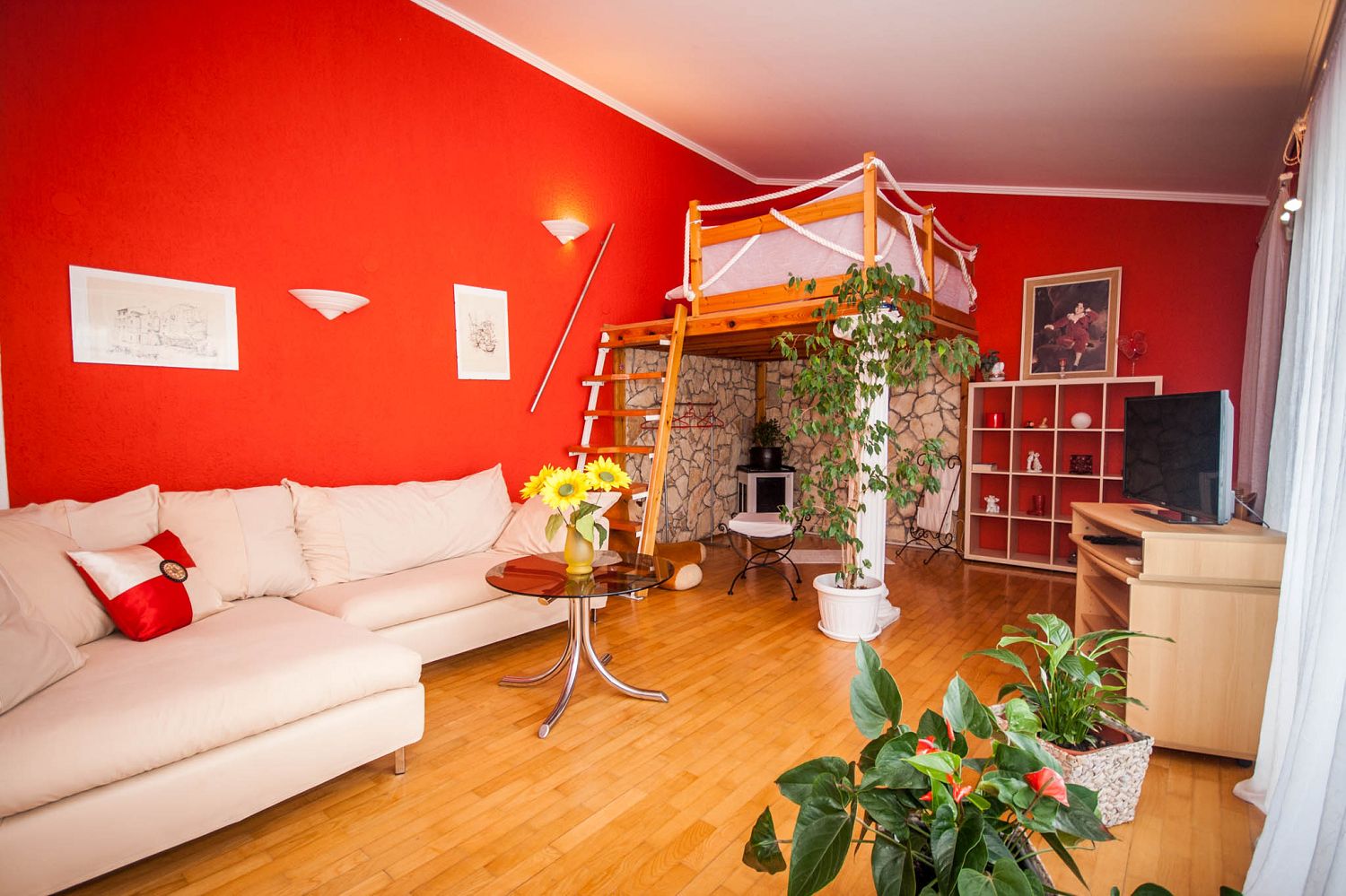 Wunderschöne Ferienwohnung in Strand - und Zentrumsnähe bestehend aus einem Schlafzimmer, Wohnzimmer mit zusätzlichen Bett, Badezimmer, Küche mit Esszimmer, Terrasse. Das Appartement verfügt über Klimaanlage, Parkplatz und Grillmoeglichkeit im Hof. Vom Objekt bis zum Strand sind es 400 Meter und zum Zentrum sind es 350 Meter. Das nächste Lebensmittelgeschäft ist 100 Meter entfernt. Zum Restaurant sind es 250 Meter.