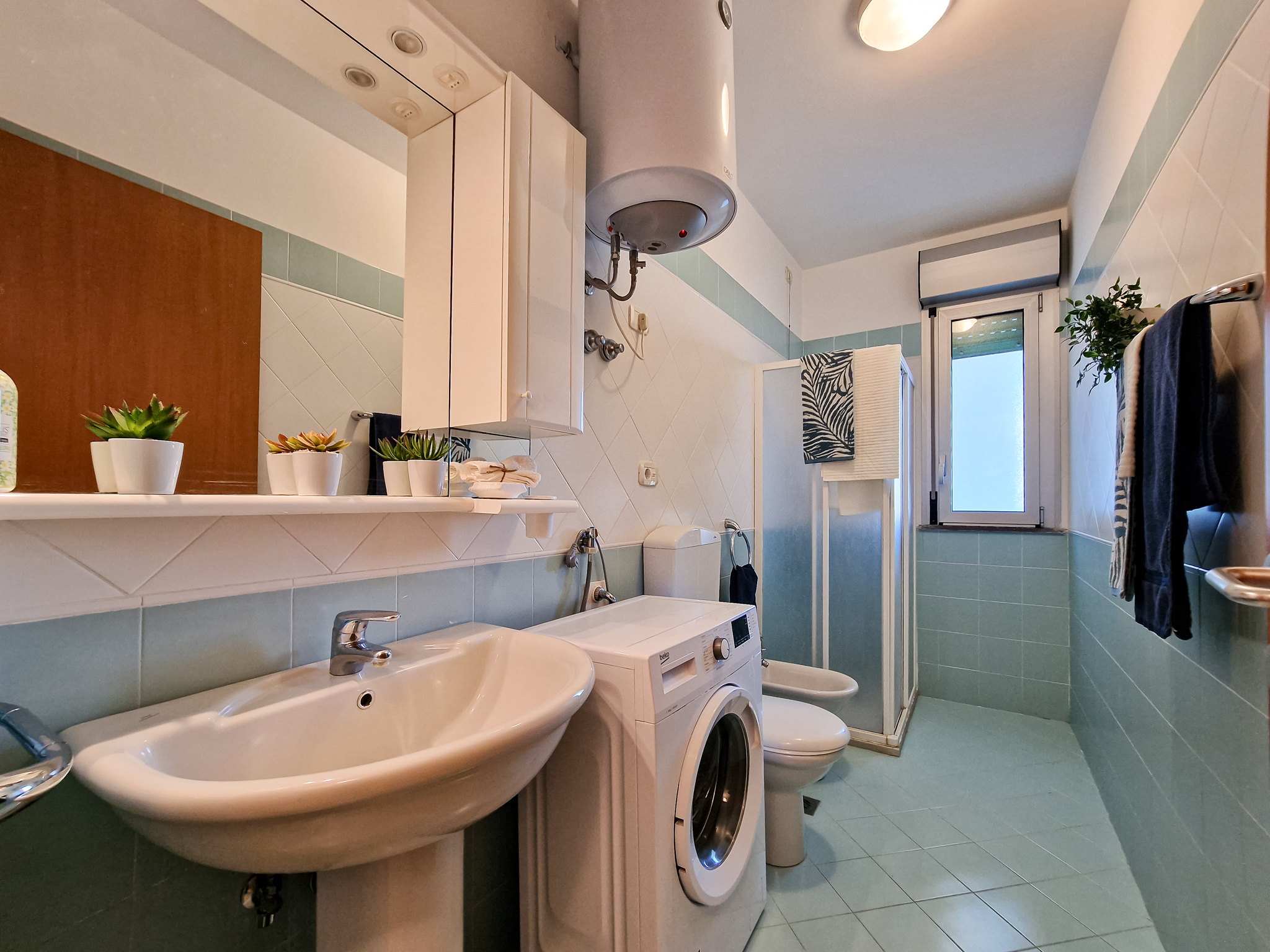 Die Dreizimmer-Wohnung Trilo C befindet sich im ersten oder zweiten Stockwerk und bietet Platz für max. 6 Personen. Je nach Wohneinheit variiert die Aufteilung der Schlafplätze: In der einen Variante verfügt die Wohnung über ein Schlafzimmer mit einem Doppelbett, ein zweites Zimmer mit zwei Einzelbetten sowie ein Doppelschlafsofa im Wohnbereich für zwei weitere Gäste. In der anderen Variante ist die Unterkunft mit einem Schlafzimmer mit Doppelbett und Einzelbett sowie einem weiteren Schlafzimmer ausgestattet, welches über einen Einzelbett verfügt, während im Wohnbereich ein Doppelsofa zwei zusätzliche Schlafplätze bietet. Eine gut eingerichtete Kochnische mit Herd, Geschirr, Besteck, Töpfen, Mikrowelle, italienischer Espressokanne und Kühlschrank mit Eisfach befindet sich ebenfalls im Wohnbereich. Das Badezimmer ist mit einer Dusche, einem Waschbecken, einem Bidet, sowie einem WC ausgestattet. Die Wohnung verfügt zudem über einen überdachten Balkon, welcher mit Tisch und Stühlen zum Verweilen einlädt. Die Fahrzeit ab italienischer Grenze beträgt ca. 4h. Hinweis: Wenn Sie mehr als eine Unterkunft benötigen, ist dies bei uns in der Regel möglich, da wir über mehrere Objekte des gleichen Haustyps verfügen.