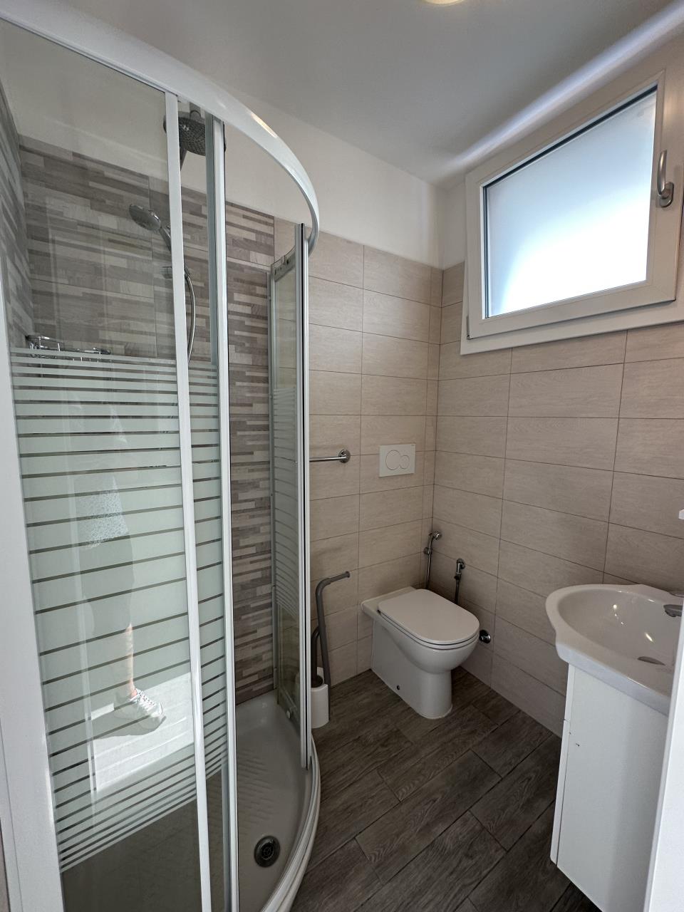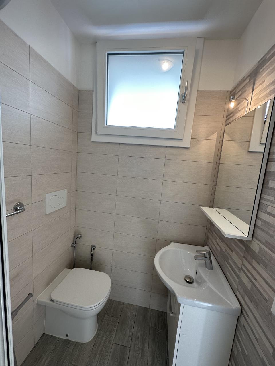 Die Dreizimmerwohnung befindet sich im 3. Stock bietet Platz für maximal 6 Personen. Sie besteht aus einem Schlafzimmer mit einem Doppelbett sowie einem Schlafzimmer mit zwei Einzelbetten. Im Wohnbereich bietet ein Bettsofa zwei weitere Schlafplätze. Ein SAT-TV und Klimaanlage sind ebenfalls vorhanden. Die vollausgestattete Küche verfügt über einen Gasherd, Geschirr, Besteck, Kochtöpfe, Mikrowelle und einen Kühlschrank mit Eisfach. Das Badezimmer verfügt über eine Dusche, ein WC und ein Waschbecken. Der Balkon lädt mit Tisch und Stühlen zum Verweilen und Entspannen ein. Fahrzeit ab italienischer Grenze ca. 4h.
