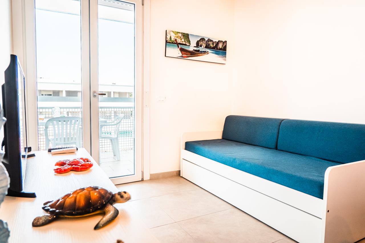 Die geräumige, renovierte Zweizimmerwohnung im 5. und letzten Stock bietet Platz für maximal 5 Personen. Sie umfasst ein Schlafzimmer mit Doppelbett und Einzelbett sowie ein Schlafsofa im Wohnbereich, das zwei zusätzliche Schlafmöglichkeiten bietet. Ein SAT-TV und Klimaanlage sind ebenfalls vorhanden. Die vollausgestattete Küche verfügt über einen Induktionsherd, Geschirr, Besteck, Kochtöpfe, Mikrowelle, Geschirrspüler und einen Kühlschrank mit Eisfach. Das Badezimmer ist mit Dusche, WC, Bidet und Waschbecken ausgestattet. Zur Wohnung gehört ein grosszügiger Balkon der mit einem Tisch und Stühlen zum Verweilen und Entspannen einlädt. Fahrzeit ab italienischer Grenze ca. 4h.
