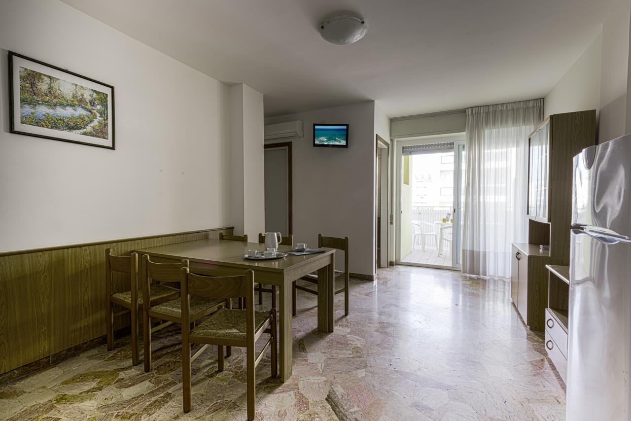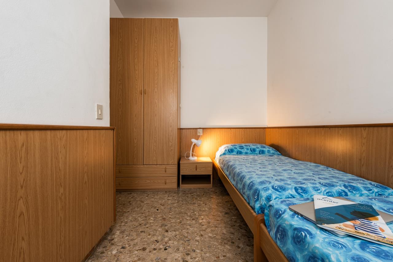 Die Dreizimmerwohnung mit seitlichem Meerblick befindet sich im 5. Stock bietet Platz für maximal 6 Personen. Sie besteht aus einem Schlafzimmer mit einem Doppelbett sowie einem Schlafzimmer mit zwei Einzelbetten. Im Wohnbereich bietet ein Bettsofa zwei weitere Schlafplätze. Ein SAT-TV und Klimaanlage sind ebenfalls vorhanden. Die vollausgestattete Küche verfügt über einen Gasherd, Geschirr, Besteck, Kochtöpfe, Mikrowelle und einen Kühlschrank mit Eisfach. Das Badezimmer verfügt über eine Dusche, ein WC und ein Waschbecken. Der Balkon mit seitlichem Meerblick lädt mit Tisch und Stühlen zum Verweilen und Entspannen ein. Fahrzeit ab italienischer Grenze ca. 4h.