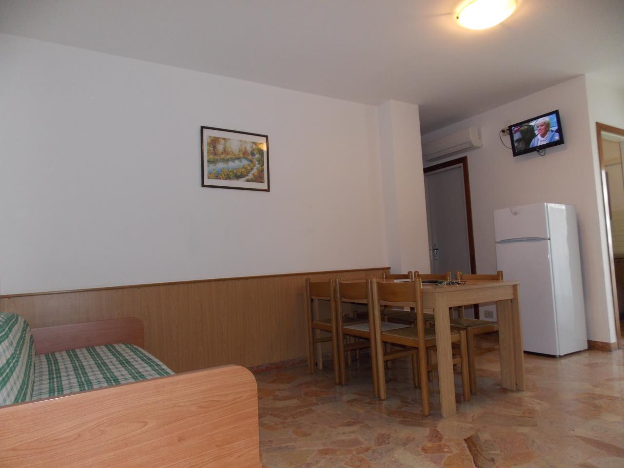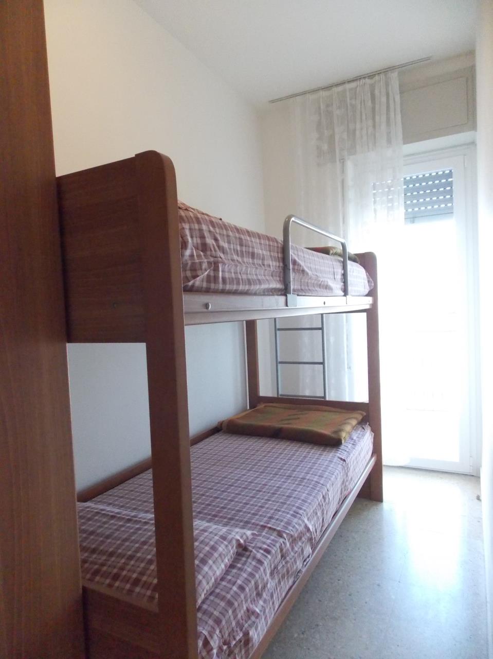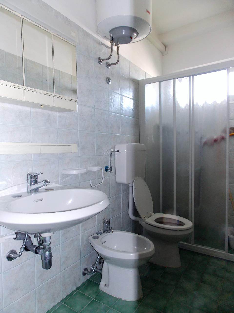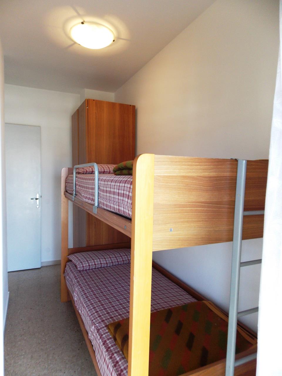 Die Dreizimmerwohnung mit Meerblick befindet sich im 7. und zugleich obersten Stockwerk und bietet Platz für maximal 6 Personen. Sie besteht aus einem Schlafzimmer mit einem Doppelbett sowie einem Schlafzimmer mit einem Etagenbett. Im Wohnbereich bietet ein Bettsofa zwei weitere Schlafplätze. Ein SAT-TV, eine Waschmaschine und Klimaanlage sind ebenfalls vorhanden. Die vollausgestattete Küche verfügt über einen Gasherd, Geschirr, Besteck, Kochtöpfe, Mikrowelle und einen Kühlschrank mit Eisfach. Das Badezimmer verfügt über eine Dusche, ein WC, ein Bidet und ein Waschbecken. Der grosszügige Balkon mit Meerblick lädt mit Tisch und Stühlen zum Verweilen und Entspannen ein. Fahrzeit ab italienischer Grenze ca. 4h.