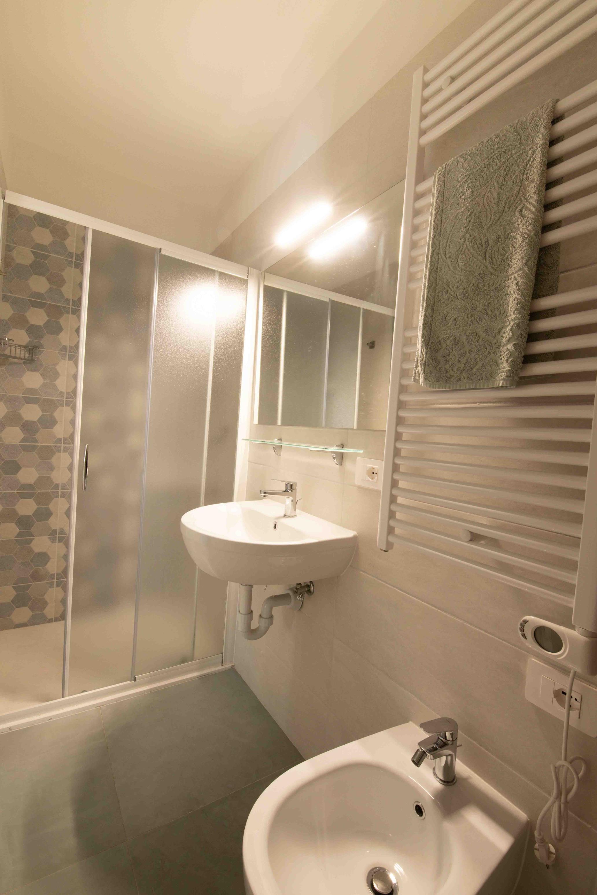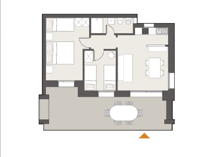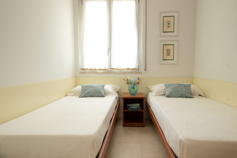 Die Dreizimmer-Wohnung Trilo D befindet sich im 1. Stock und bietet Platz für maximal 5 Personen. Sie umfasst ein Schlafzimmer mit Doppelbett und Einzelbett sowie ein Schlafzimmer mit zwei Einzelbetten. Ein SAT-TV und Klimaanlage sind ebenfalls vorhanden. Die vollausgestattete Küche verfügt über einen Induktionsherd, Geschirr, Besteck, Kochtöpfe, Mikrowelle, amerikanische Kaffeemaschine und einen Kühlschrank mit Eisfach. Das Badezimmer ist mit Dusche, WC, Bidet und Waschbecken ausgestattet. Die Wohnung verfügt über einen grosszügigen 20 m² Balkon der mit Tisch und Stühlen zum Entspannen einlädt. Fahrzeit ab italienischer Grenze ca. 5h. Hinweis: Wenn Sie mehr als eine Unterkunft benötigen, ist dies bei uns in der Regel möglich, da wir über mehrere Objekte des gleichen Haustyps verfügen.