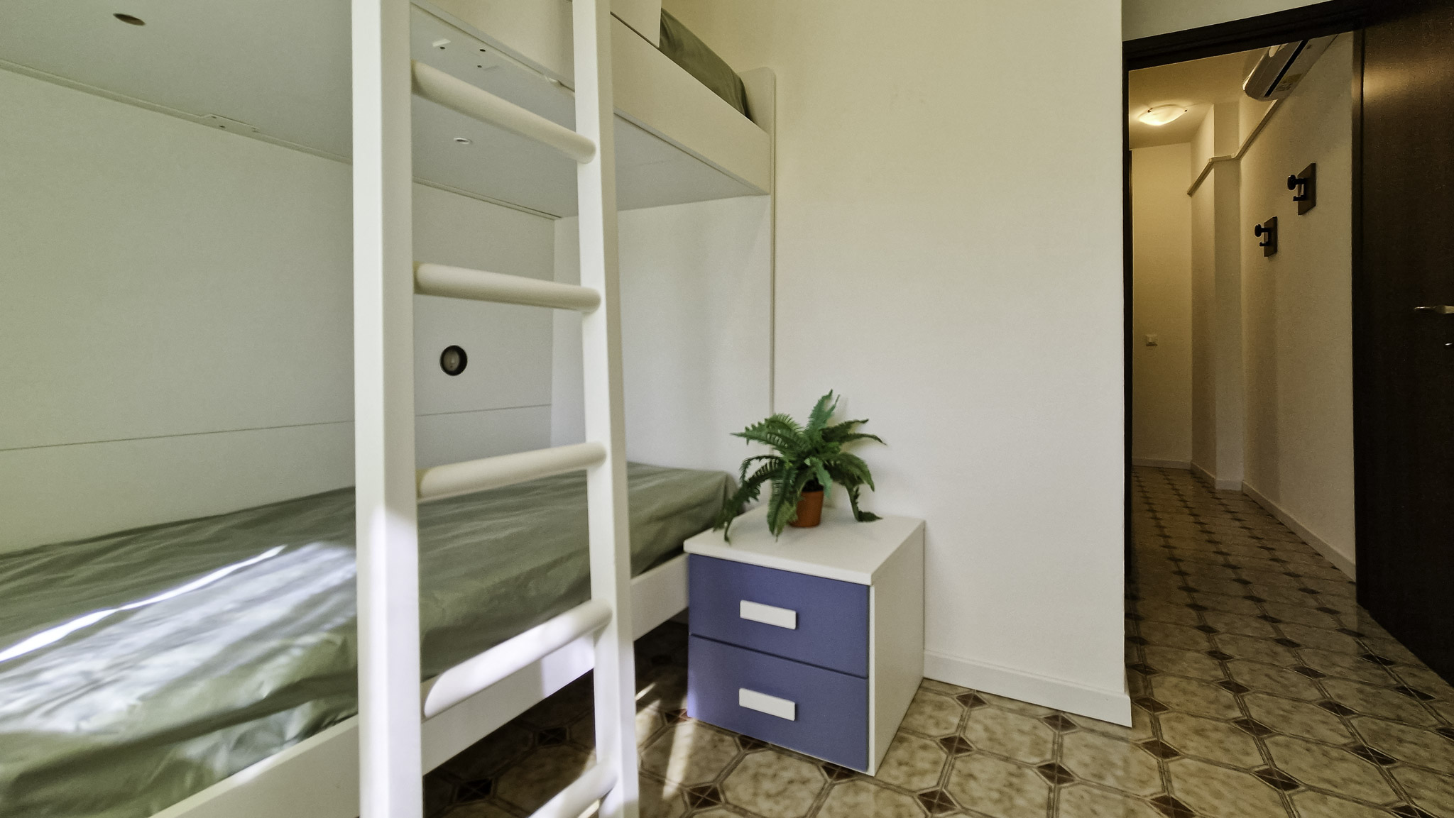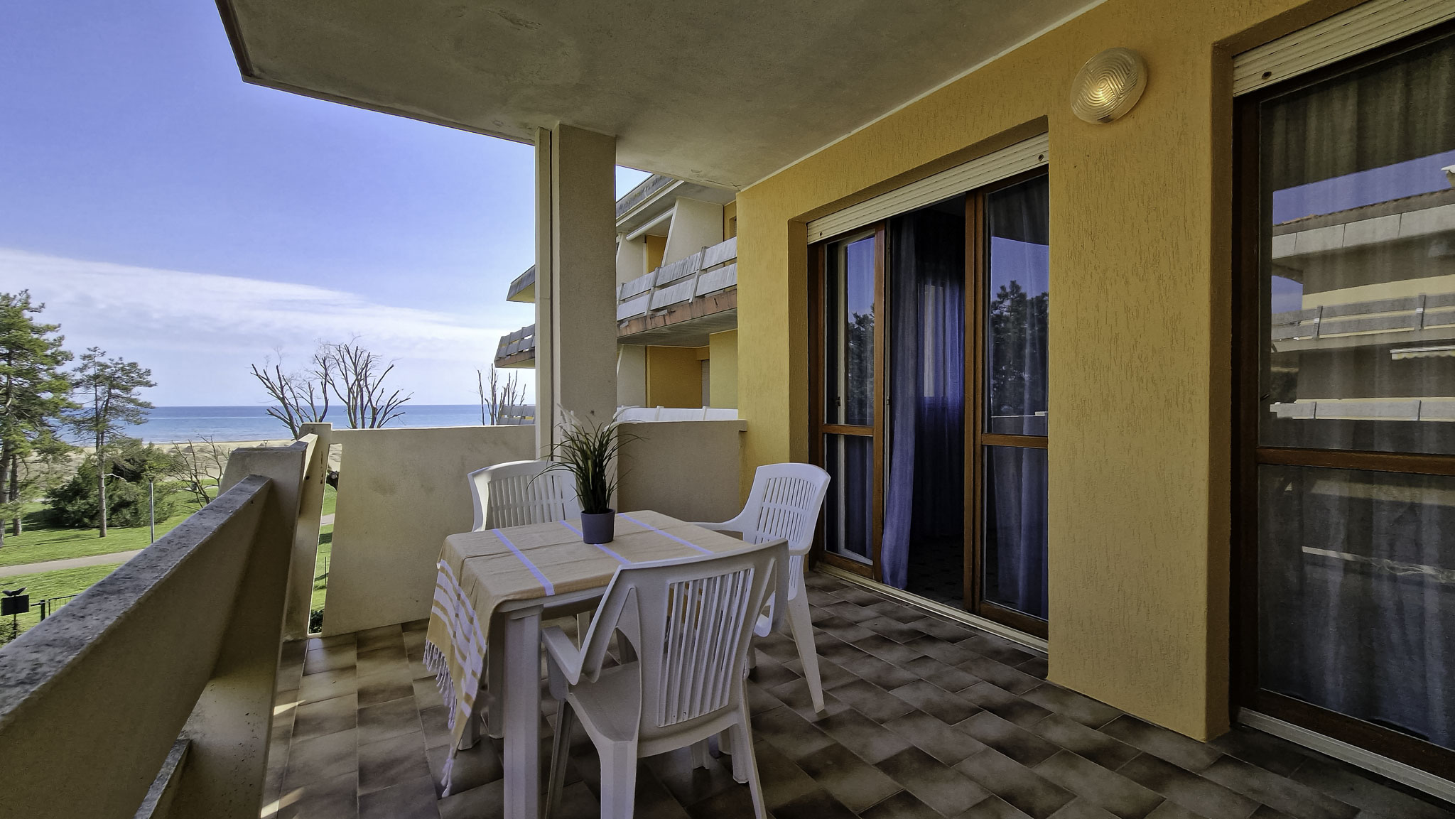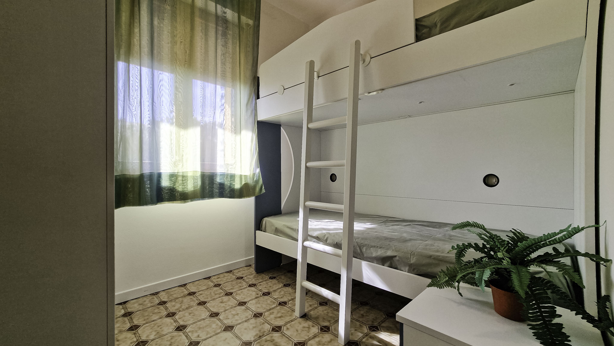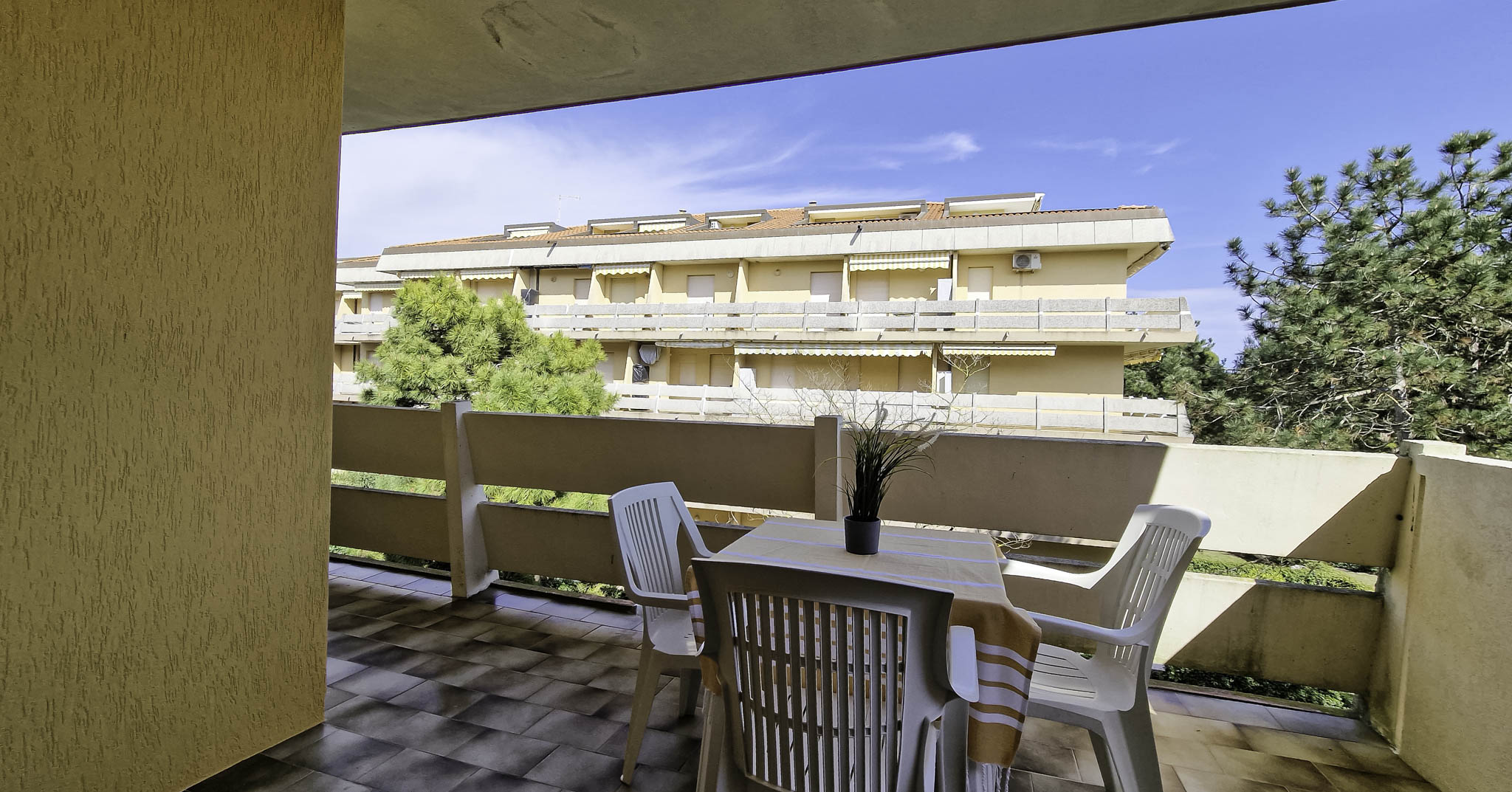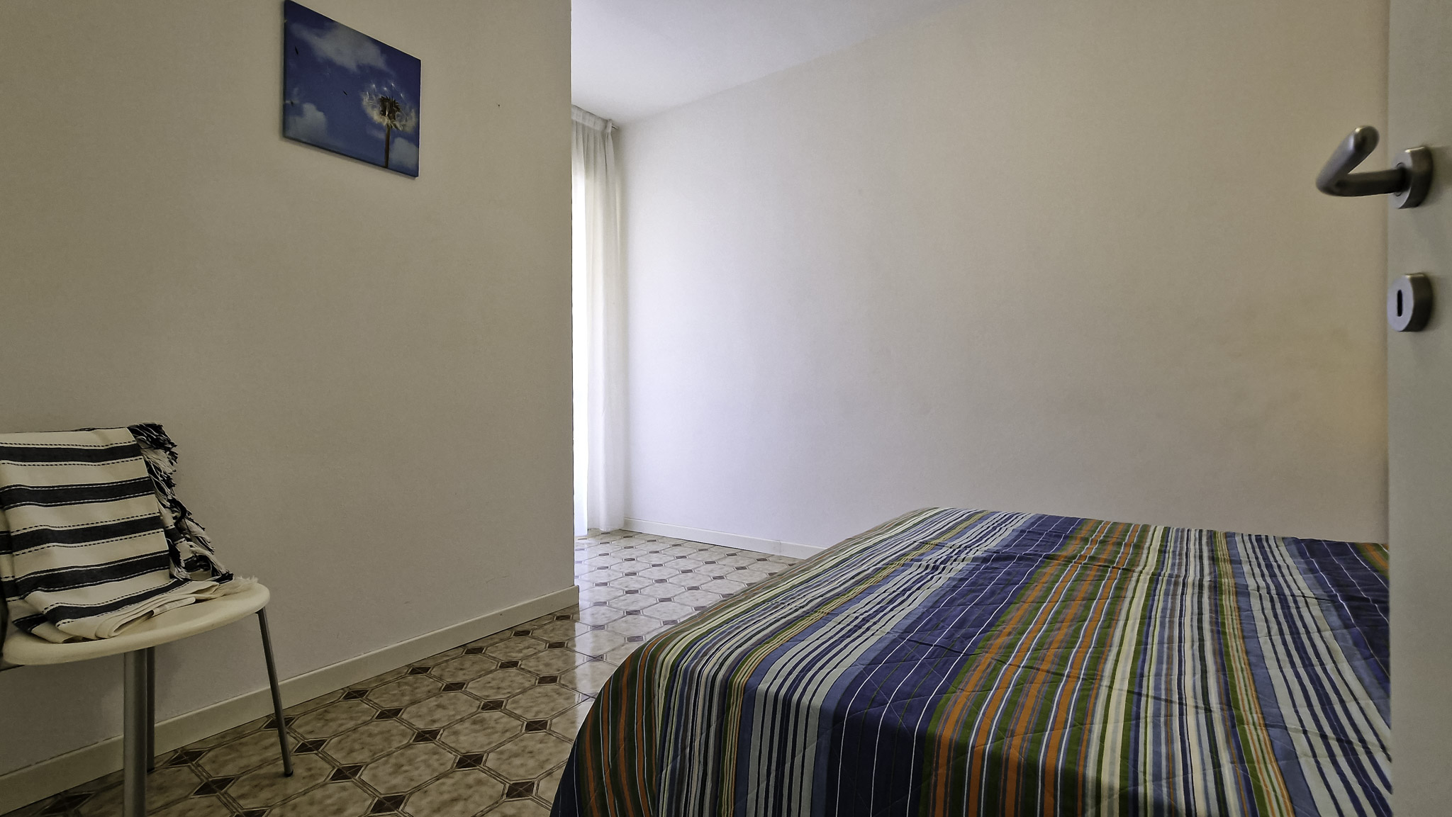 Die Dreizimmer-Wohnung C befindet sich entweder im 2. oder 3. Obergeschoss und bietet Platz für max. 6 Personen. Die Unterkunft besteht aus einem Schlafzimmer mit Doppelbett und einem weiteren Schlafzimmer mit einem Etagenbett für 2 Personen. Zwei weitere Schlafplätze bietet bei Bedarf das Schlafsofa im Wohnzimmer. Im Wohnzimmer befindet sich ausserdem die gut eingerichtete Küche mit Geschirr, Besteck, Töpfen, einer Mikrowelle, einem Kühlschrank und einem Gasherd. Tisch, Stühle und ein SAT-TV sind vorhanden. Das Badezimmer verfügt über ein WC, eine Dusche und ein Waschbecken. Die Terrasse lädt zum Entspannen ein. Ein überdachter Parkplatz und eine Klimaanlage sind ebenfalls vorhanden. Die Fahrzeit ab italienischer Grenze beträgt ca. 4h.