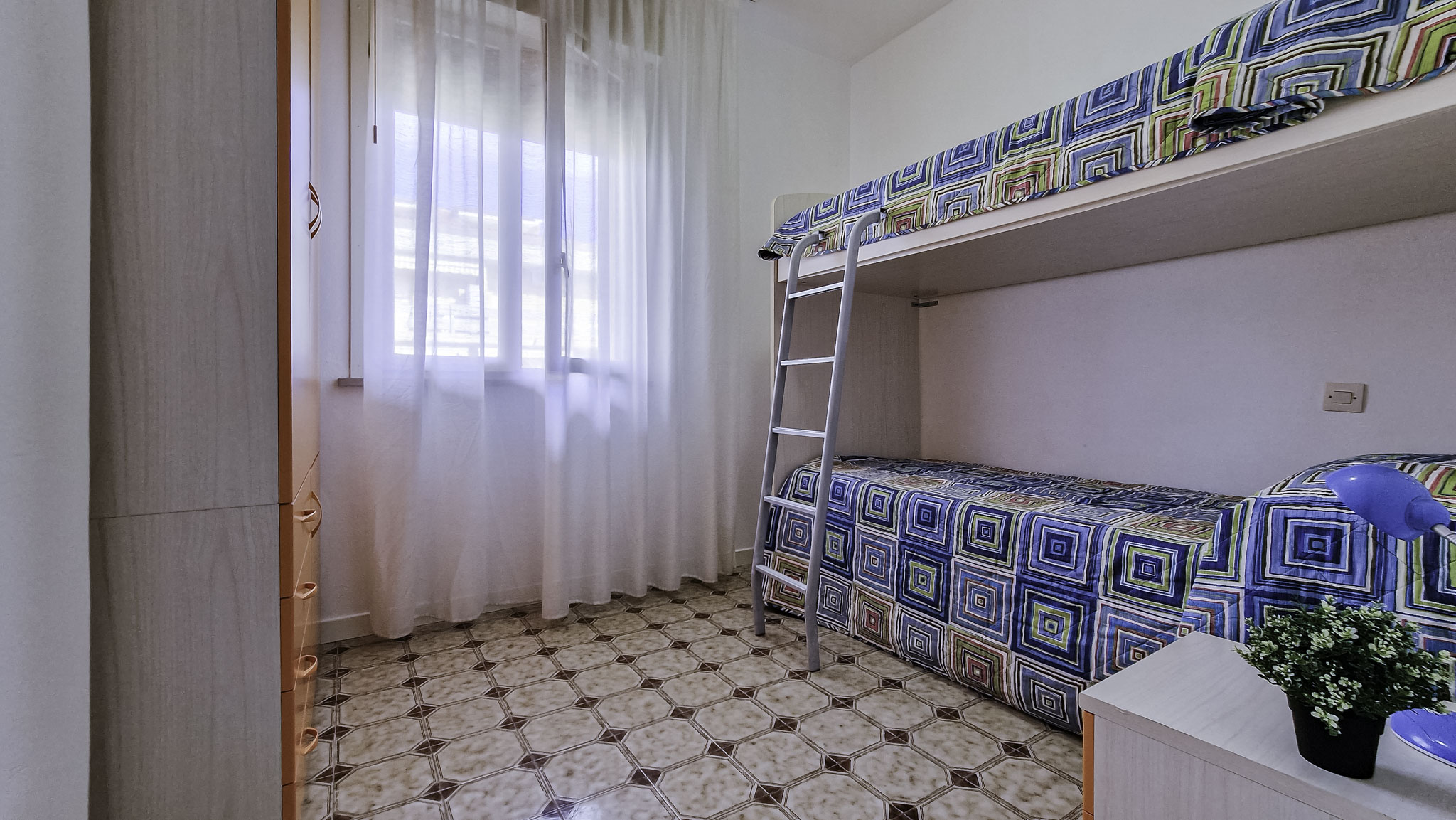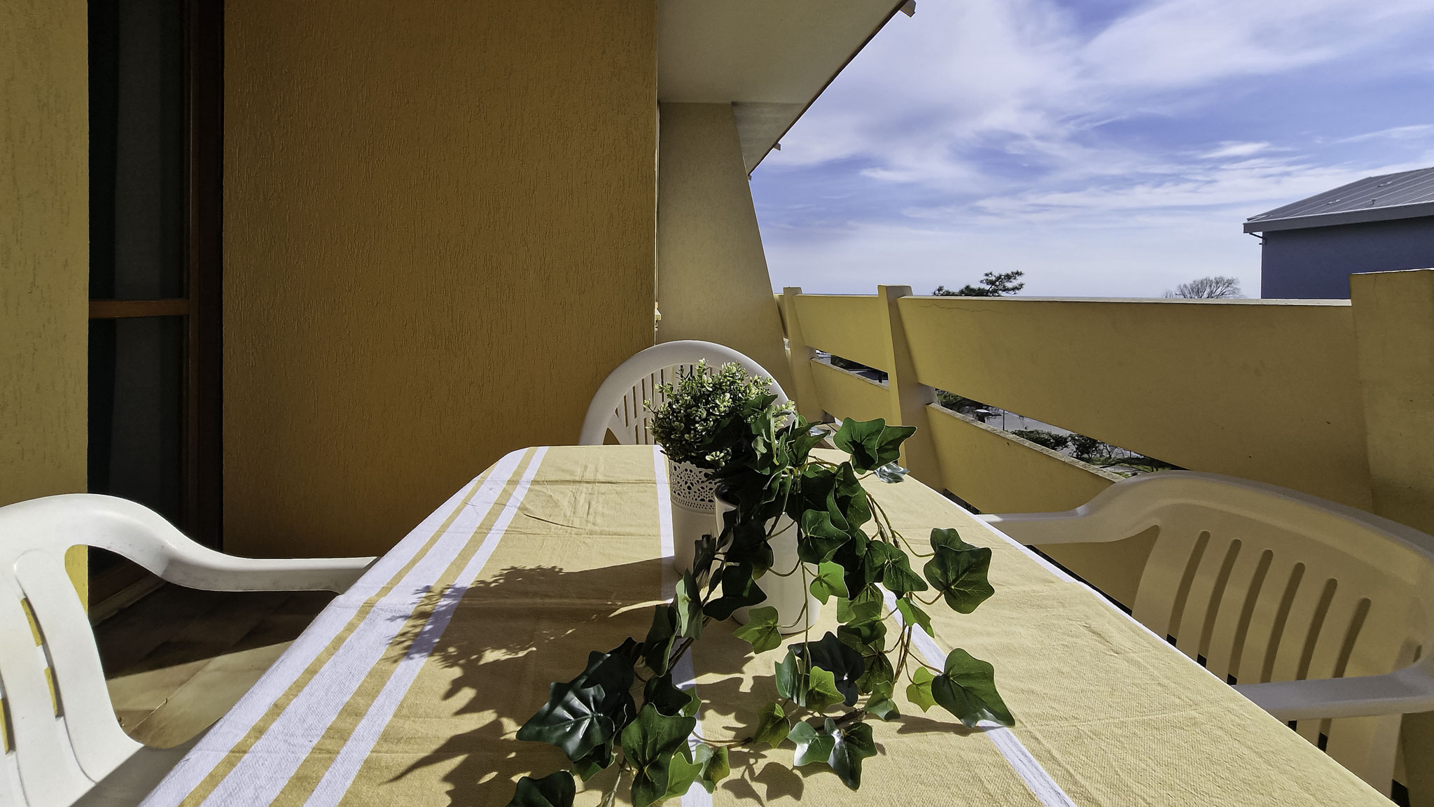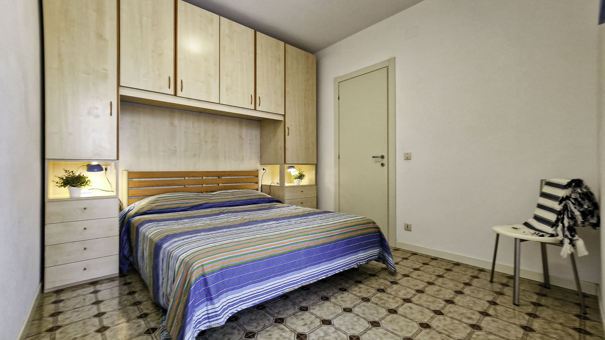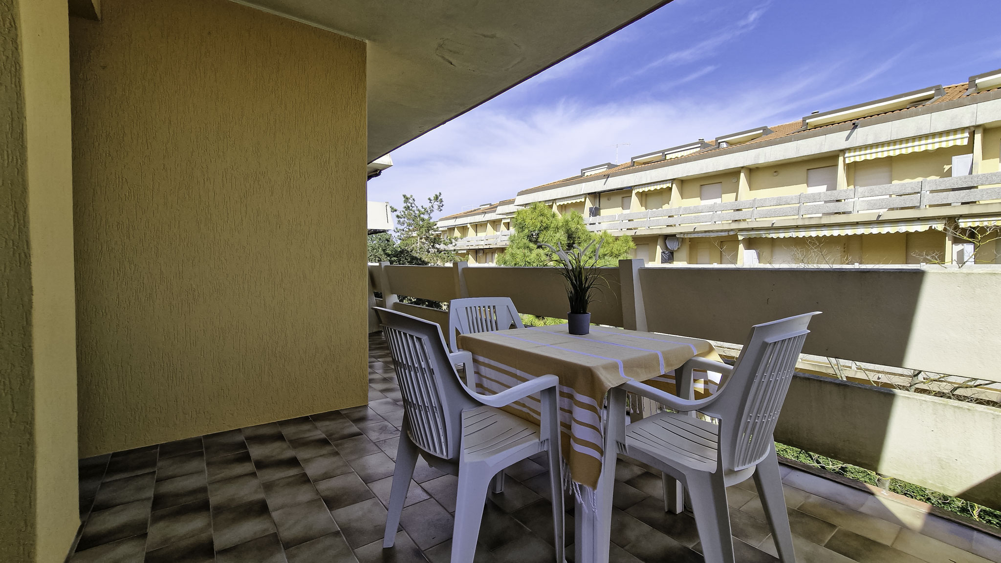 Die Dreizimmer-Wohnung C befindet sich entweder im 2. oder 3. Obergeschoss und bietet Platz für max. 6 Personen. Die Unterkunft besteht aus einem Schlafzimmer mit Doppelbett und einem weiteren Schlafzimmer mit einem Etagenbett für 2 Personen. Zwei weitere Schlafplätze bietet bei Bedarf das Schlafsofa im Wohnzimmer. Im Wohnzimmer befindet sich ausserdem die gut eingerichtete Küche mit Geschirr, Besteck, Töpfen, einer Mikrowelle, einem Kühlschrank und einem Gasherd. Tisch, Stühle und ein SAT-TV sind vorhanden. Das Badezimmer verfügt über ein WC, eine Dusche und ein Waschbecken. Die Terrasse lädt zum Entspannen ein. Ein überdachter Parkplatz und eine Klimaanlage sind ebenfalls vorhanden. Die Fahrzeit ab italienischer Grenze beträgt ca. 4h.