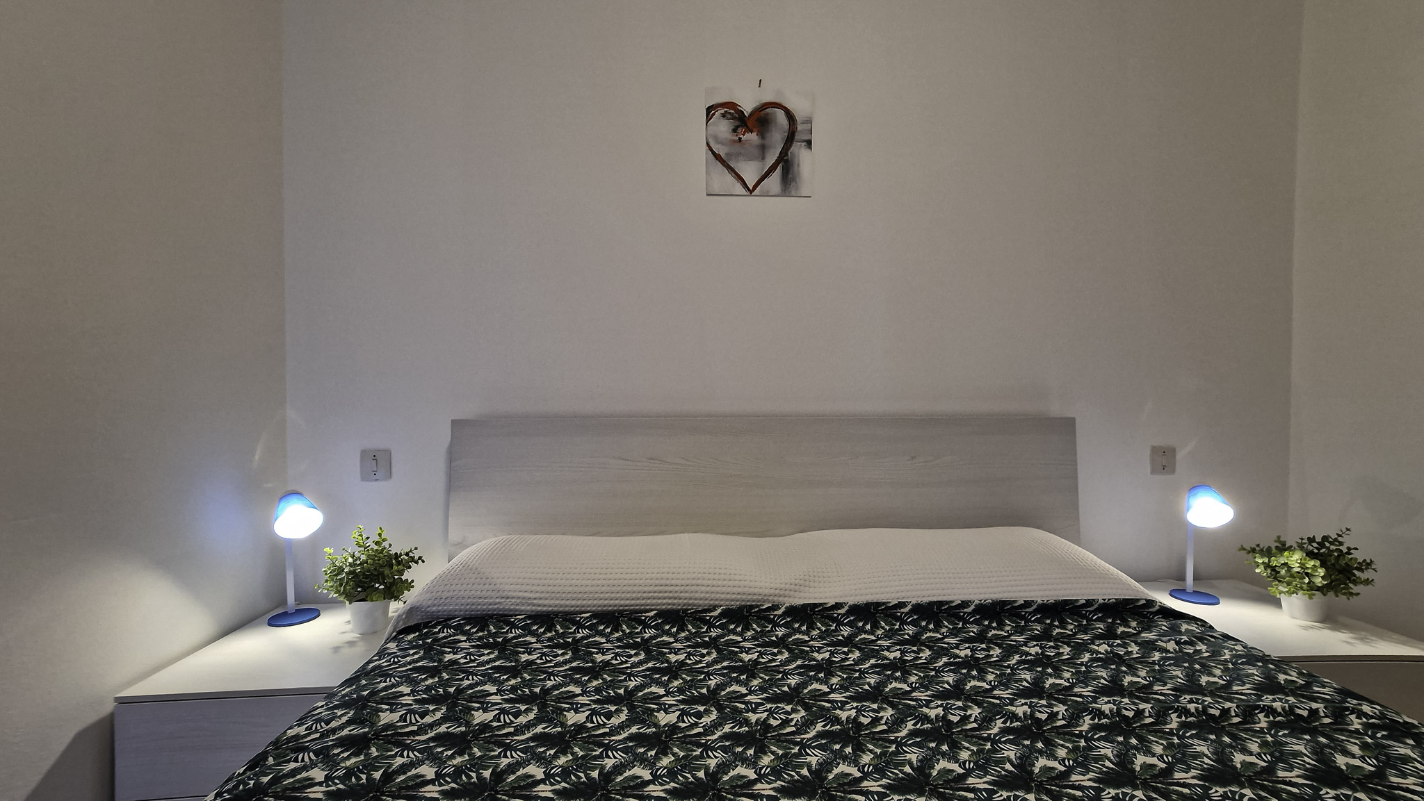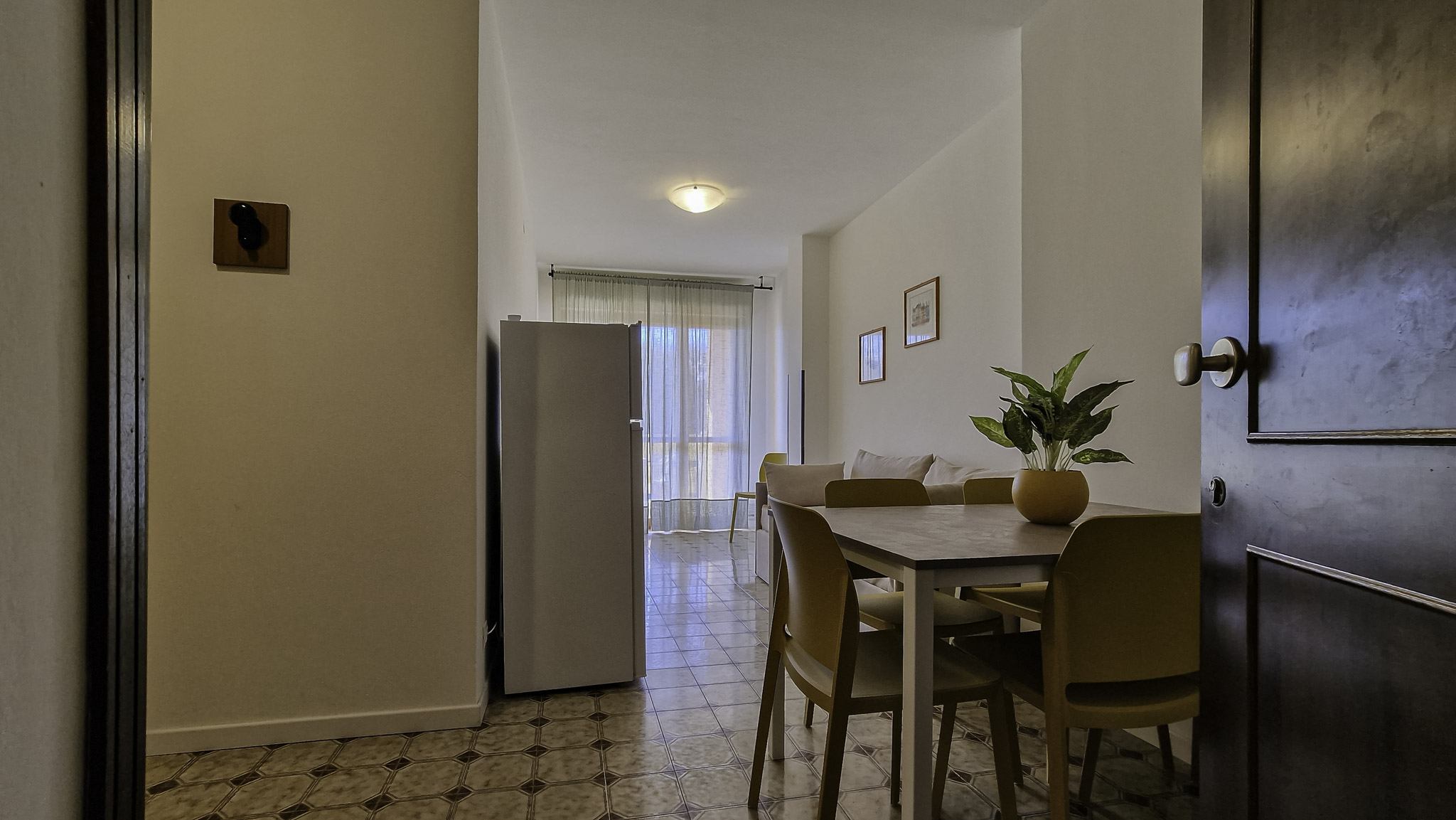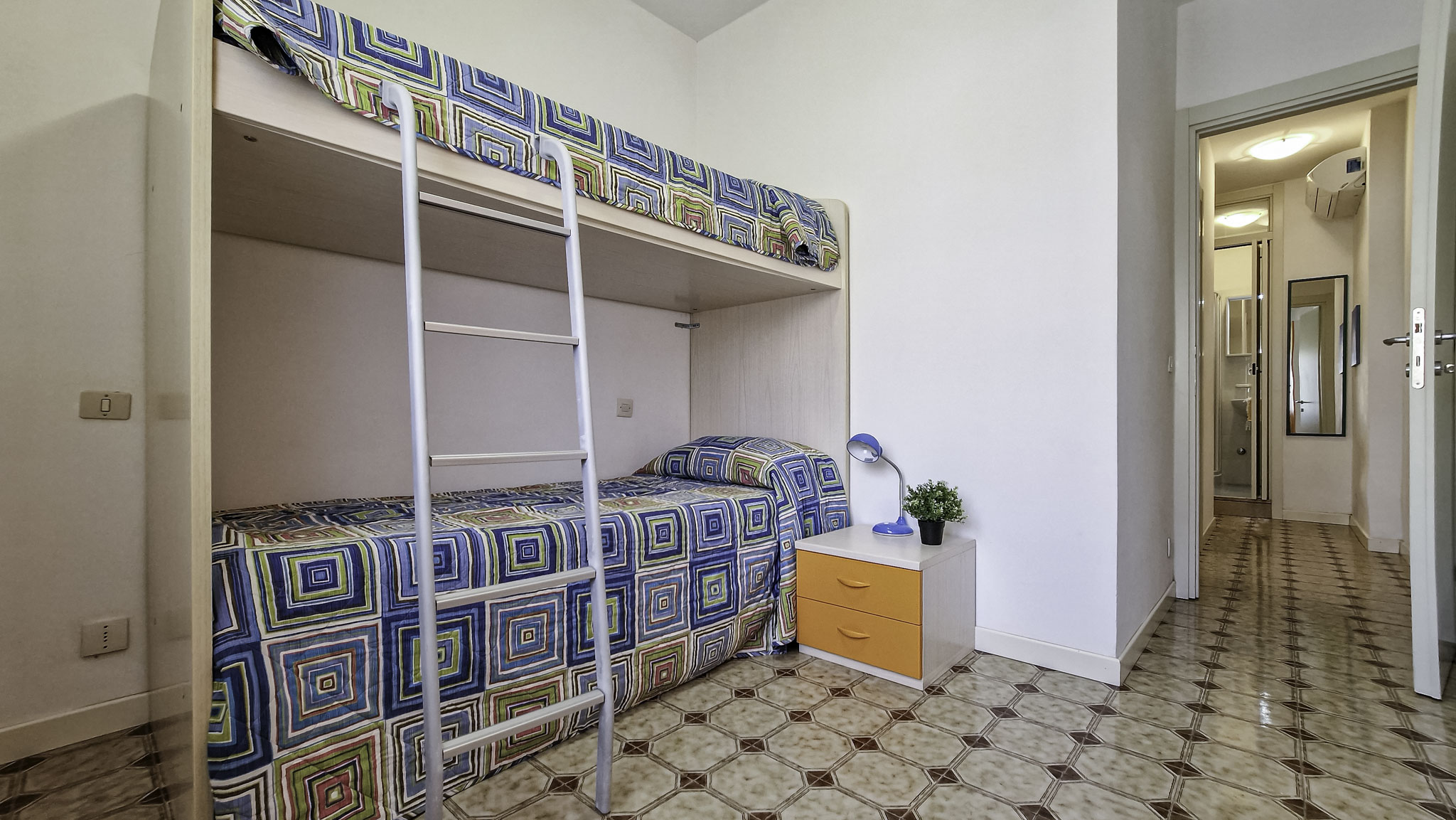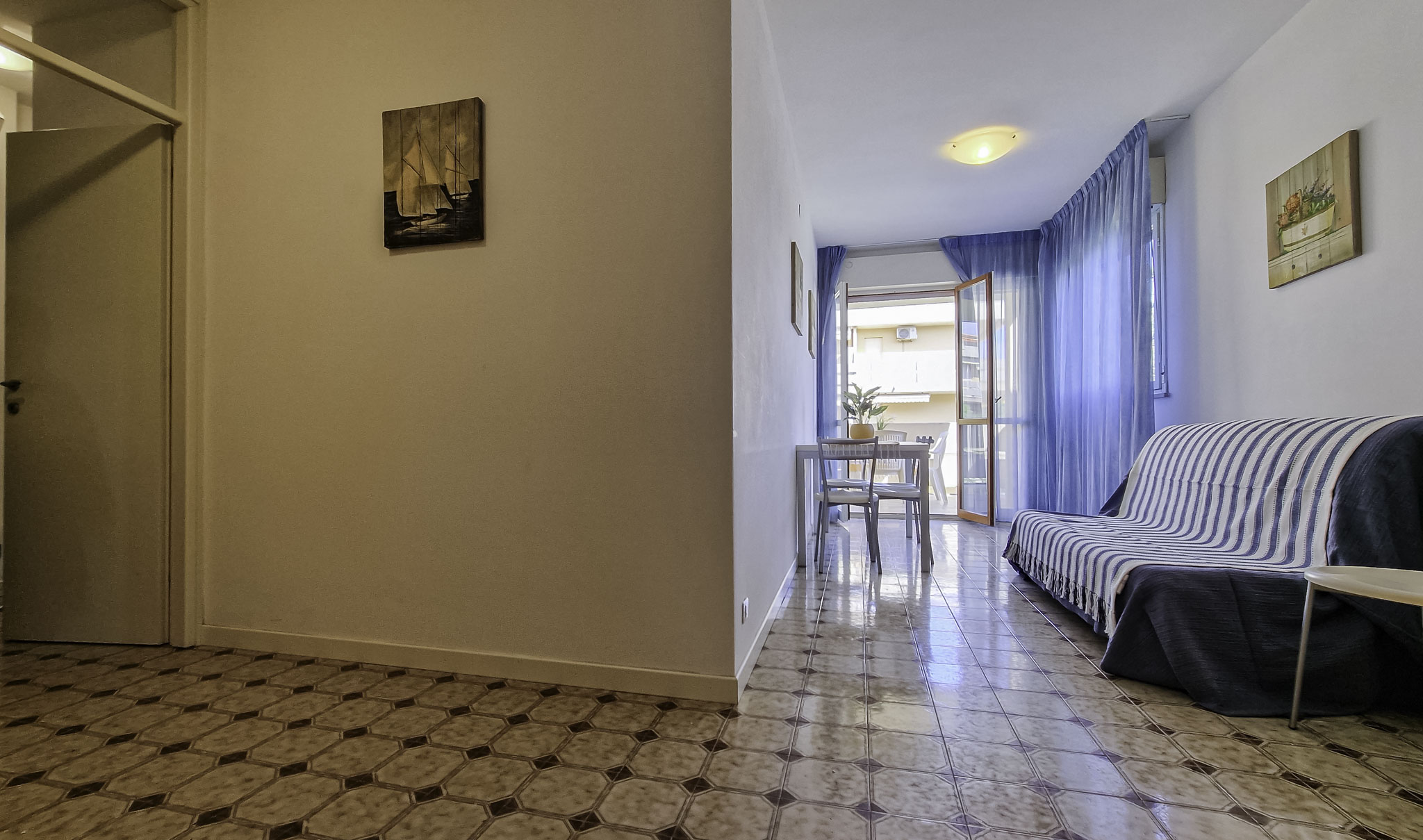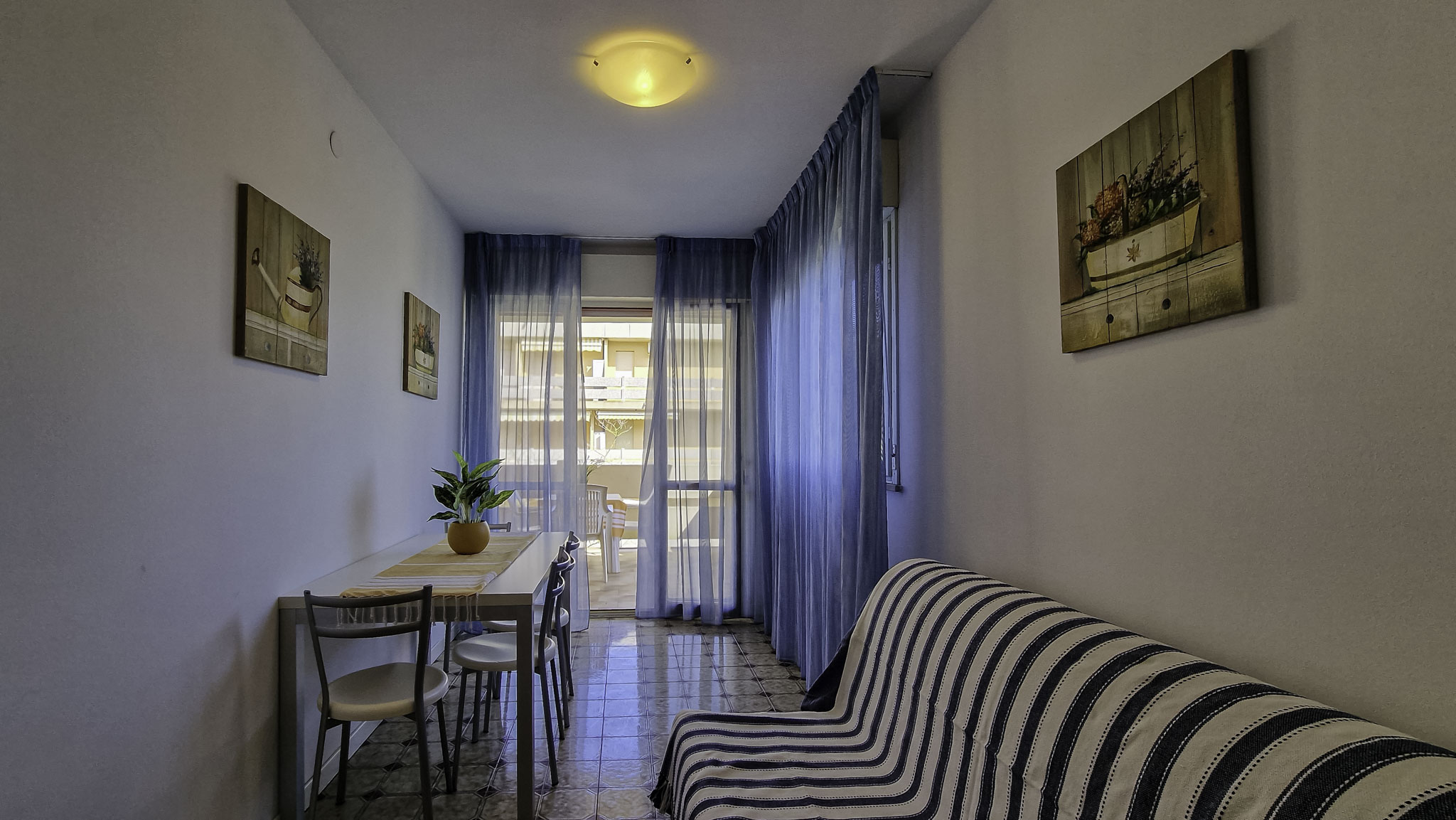 Die Dreizimmer-Wohnung C befindet sich entweder im 2. oder 3. Obergeschoss und bietet Platz für max. 6 Personen. Die Unterkunft besteht aus einem Schlafzimmer mit Doppelbett und einem weiteren Schlafzimmer mit einem Etagenbett für 2 Personen. Zwei weitere Schlafplätze bietet bei Bedarf das Schlafsofa im Wohnzimmer. Im Wohnzimmer befindet sich ausserdem die gut eingerichtete Küche mit Geschirr, Besteck, Töpfen, einer Mikrowelle, einem Kühlschrank und einem Gasherd. Tisch, Stühle und ein SAT-TV sind vorhanden. Das Badezimmer verfügt über ein WC, eine Dusche und ein Waschbecken. Die Terrasse lädt zum Entspannen ein. Ein überdachter Parkplatz und eine Klimaanlage sind ebenfalls vorhanden. Die Fahrzeit ab italienischer Grenze beträgt ca. 4h.