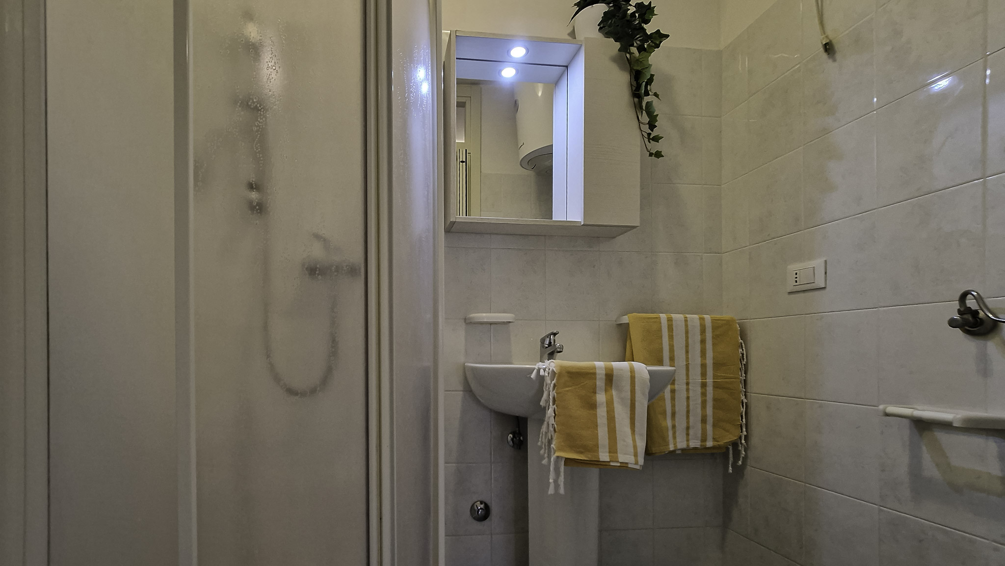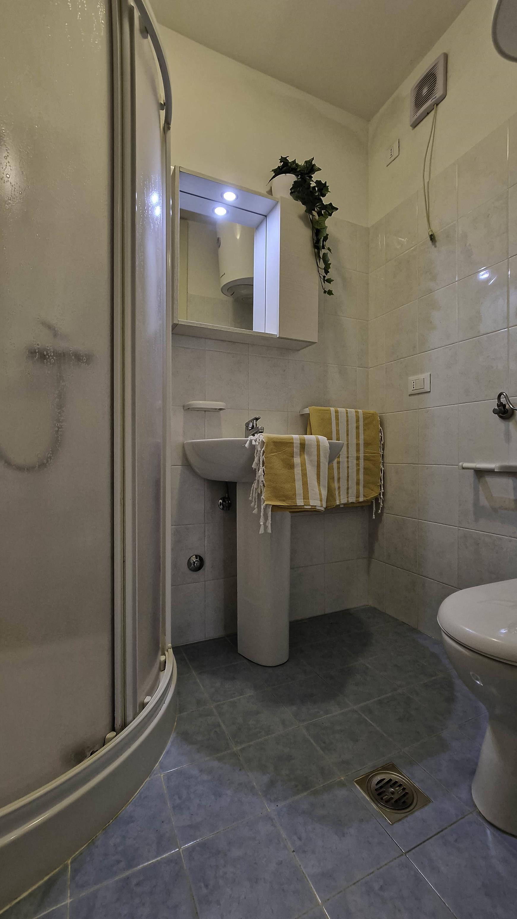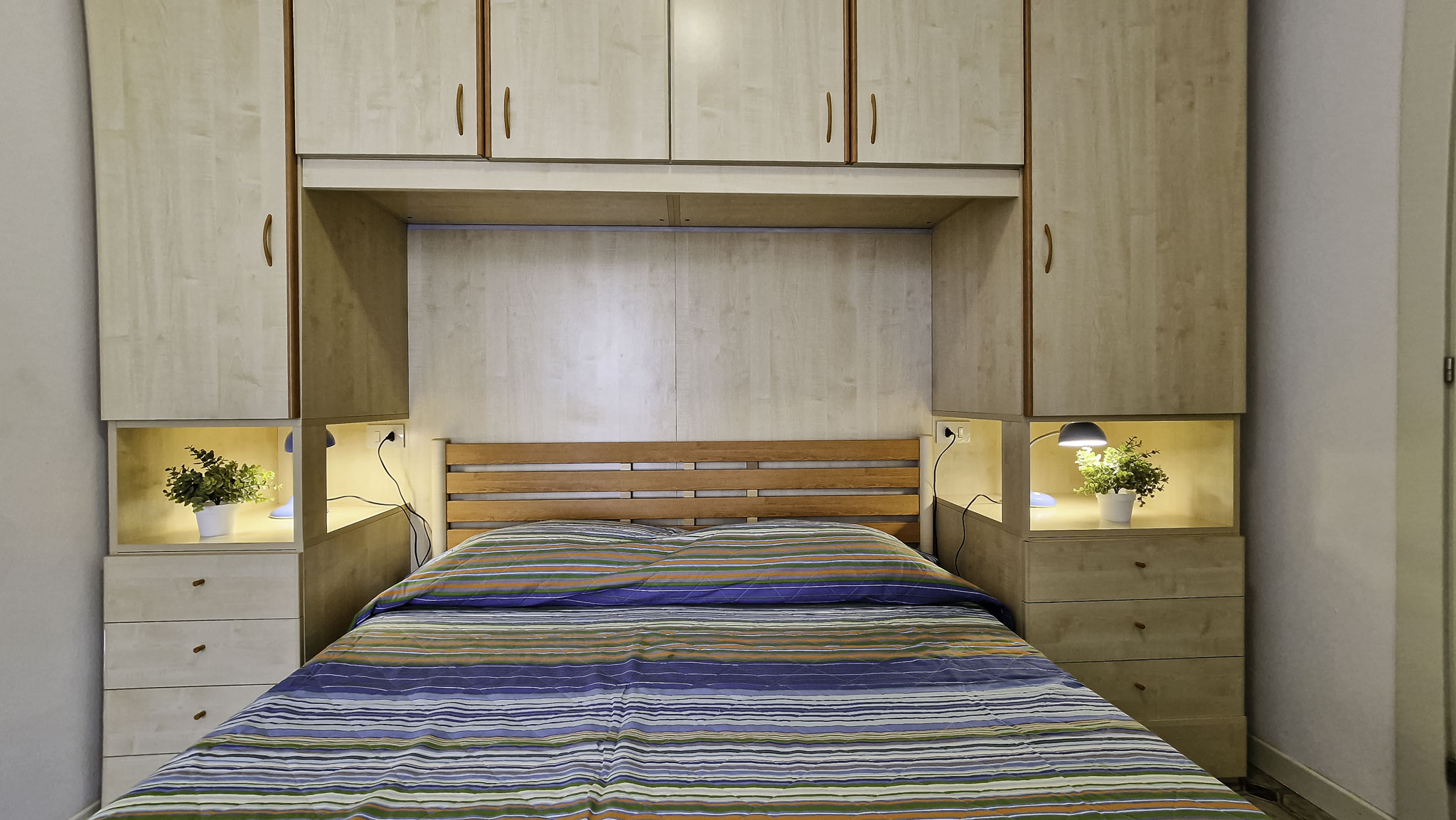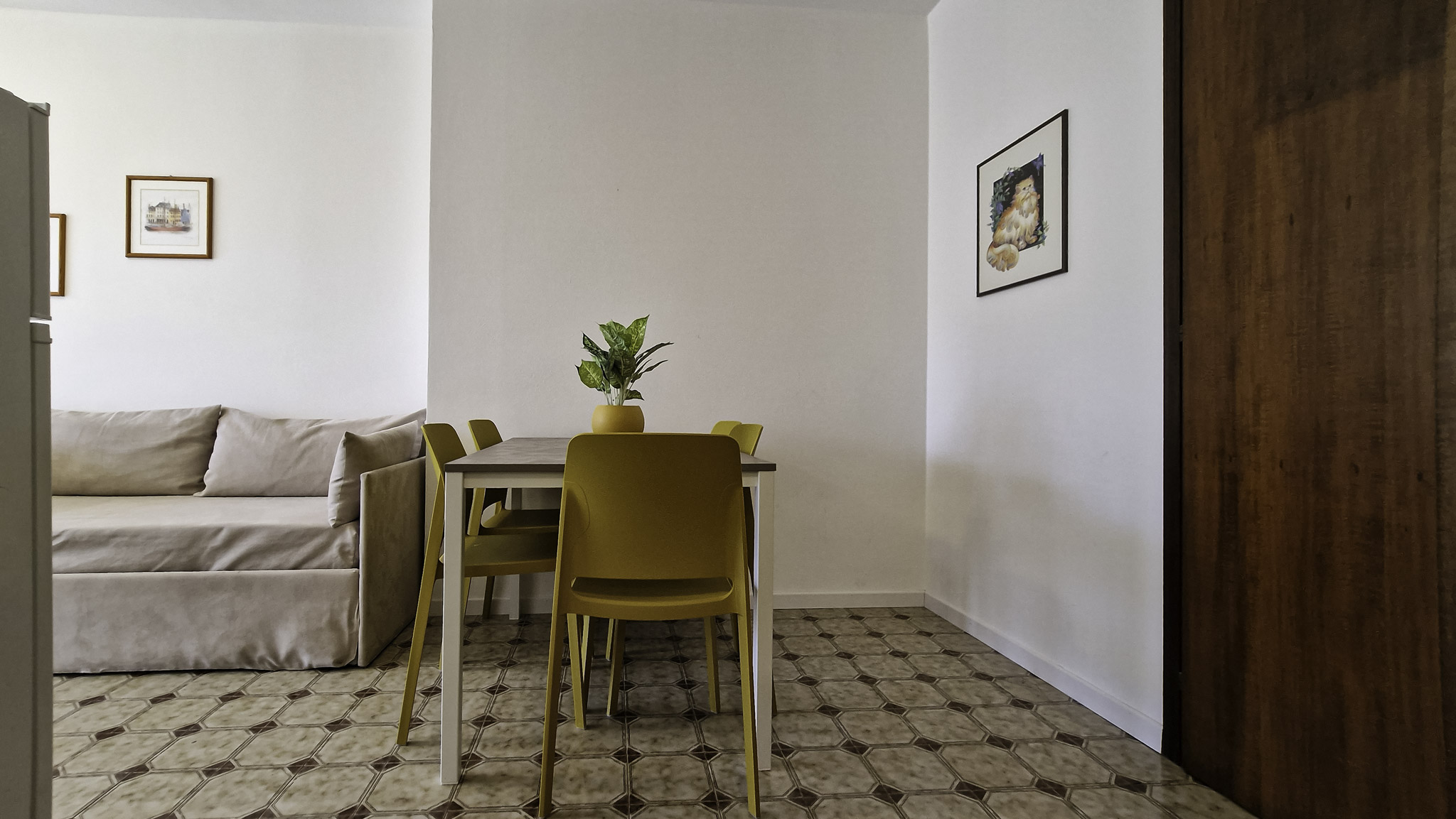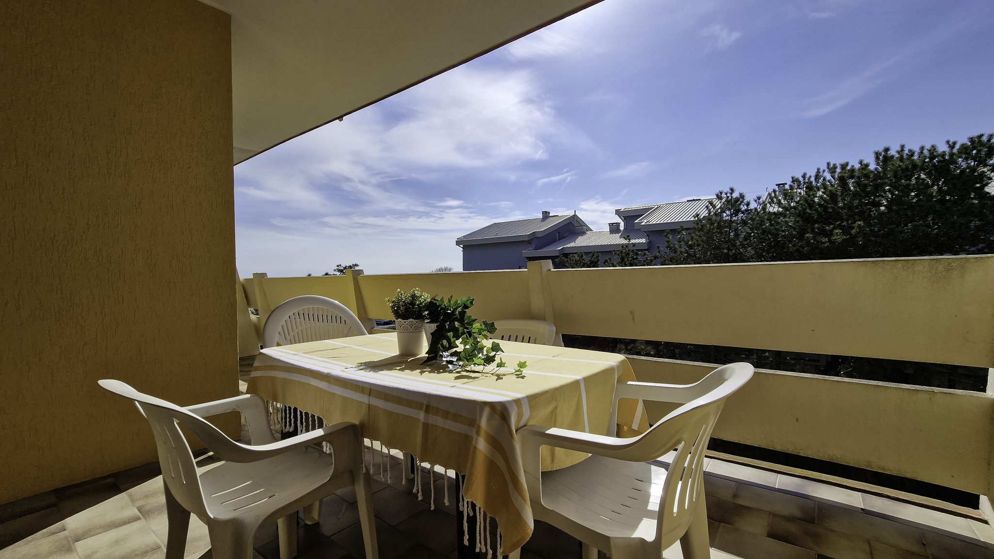 Die Dreizimmer-Wohnung C befindet sich entweder im 2. oder 3. Obergeschoss und bietet Platz für max. 6 Personen. Die Unterkunft besteht aus einem Schlafzimmer mit Doppelbett und einem weiteren Schlafzimmer mit einem Etagenbett für 2 Personen. Zwei weitere Schlafplätze bietet bei Bedarf das Schlafsofa im Wohnzimmer. Im Wohnzimmer befindet sich ausserdem die gut eingerichtete Küche mit Geschirr, Besteck, Töpfen, einer Mikrowelle, einem Kühlschrank und einem Gasherd. Tisch, Stühle und ein SAT-TV sind vorhanden. Das Badezimmer verfügt über ein WC, eine Dusche und ein Waschbecken. Die Terrasse lädt zum Entspannen ein. Ein überdachter Parkplatz und eine Klimaanlage sind ebenfalls vorhanden. Die Fahrzeit ab italienischer Grenze beträgt ca. 4h.