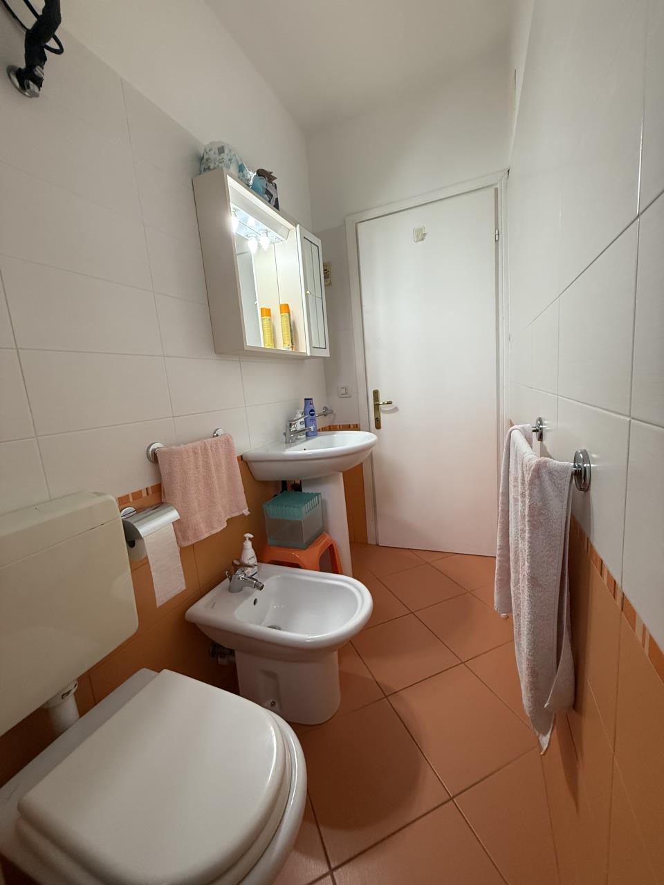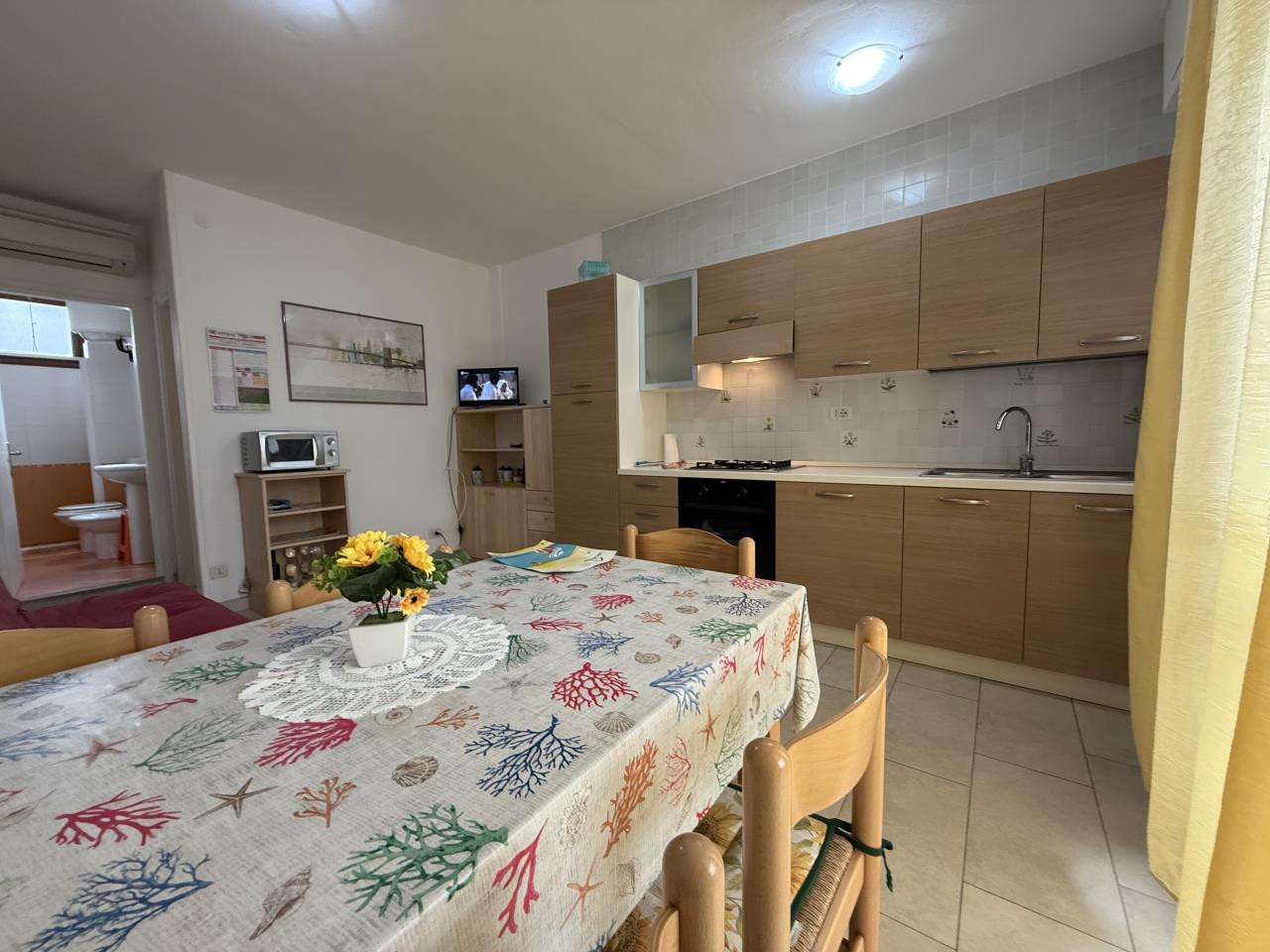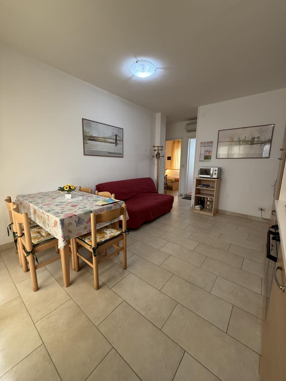 Die Dreizimmerwohnung mit Meerblick befindet sich im 1. Stock und bietet Platz für maximal 6 Personen. Sie besteht aus einem Schlafzimmer mit einem Doppelbett sowie einem Schlafzimmer mit drei Einzelbetten. Im Wohnbereich bietet das Bettsofa ein weiteren Schlafplatz. Ein SAT-TV und Klimaanlage sind ebenfalls vorhanden. Die vollausgestattete Küche verfügt über einen Gasherd, Geschirr, Besteck, Kochtöpfe, Mikrowelle und einen Kühlschrank mit Eisfach. Das Badezimmer verfügt über eine Dusche, ein WC, ein Bidet und ein Waschbecken. Der Balkon mit Meerblick lädt mit Tisch und Stühlen zum Verweilen und Entspannen ein. Fahrzeit ab italienischer Grenze ca. 4h.
