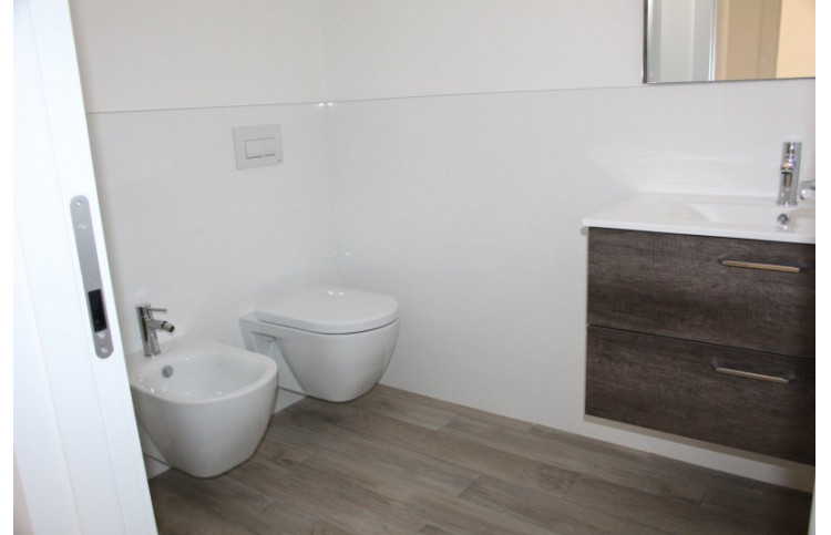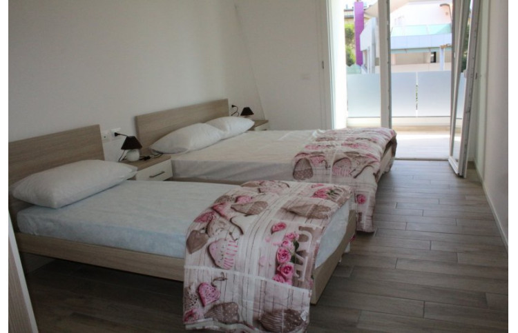 Die neue Dreizimmer-Wohnung bietet Platz für max. 7 Personen und befindet sich im zweiten Stockwerk. Die Unterkunft verfügt über ein Schlafzimmer, welches mit einem Doppelbett und einem Einzelbett ausgestattet ist. Ein weiteres Schlafzimmer bietet einen Doppelbett. Bei Bedarf bietet die Doppelbettcouch im kombinierten Wohn- und Essbereich zwei weitere Schlafplätze. Eine gut eingerichtete Kochnische mit Induktionsherd, Geschirr, Besteck, Töpfen, Mikrowelle, italienische Espressokanne, Geschirrspüler und Kühlschrank mit Eisfach befindet sich ebenfalls im Wohnbereich. Das Badezimmer mit Fenster ist mit einer Waschmaschine, einer Dusche, einem Waschbecken, einem Bidet und einem WC ausgestattet. Ein SAT-TV und Klimaanlage sind vorhanden. Der überdachte Balkon ist mit Tisch und Stühlen ausgestattet und lädt zum Entspannen und Verweilen ein. Der Parkplatz ist überdacht. Die Fahrzeit ab italienischer Grenze beträgt ca. 4h. Hinweis: Wenn Sie mehr als eine Unterkunft benötigen, ist dies bei uns in der Regel möglich, da wir über mehrere Objekte des gleichen Haustyps verfügen.