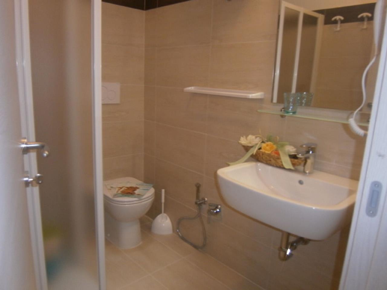Die Wohnung Bilo B2 befindet sich im 2. Stockwerk und bietet Platz für max. 5 Personen (eine Überbelegung mit einem Baby im Reisebett ist auf Anfrage möglich). Die Unterkunft besteht aus einem Schlafzimmer mit einem Doppelbett und einem Einzelbett. Das Doppelschlafsofa im Wohnzimmer bietet einen weiteren Schlafplatz für 2 Personen. Im Wohnbereich befindet sich ausserdem die gut eingerichtete Küche mit einem Herd, Geschirr, Besteck, Töpfen, Kaffeemaschine, Mikrowelle und Kühlschrank mit Eisfach. Das Badezimmer ist mit einer Dusche, einem Waschbecken sowie einem WC ausgestattet. Bettwäsche und Handtücher können auf Wunsch vor Ort gemietet werden (bitte beim Buchen reservieren). Die Wohnung verfügt zudem über einen überdachten Balkon mit Tisch und Stühlen zum Verweilen. Bei Bedarf kann ein Reisebett oder ein Hochstuhl dazu gemietet werden (bei Buchung bitte reservieren). Optional steht Wifi zur Verfügung. Die Fahrzeit ab italienischer Grenze beträgt ca. 4h. Hinweis: Wenn Sie mehr als eine Unterkunft benötigen, ist dies bei uns in der Regel möglich, da wir über mehrere Objekte des gleichen Haustyps verfügen.