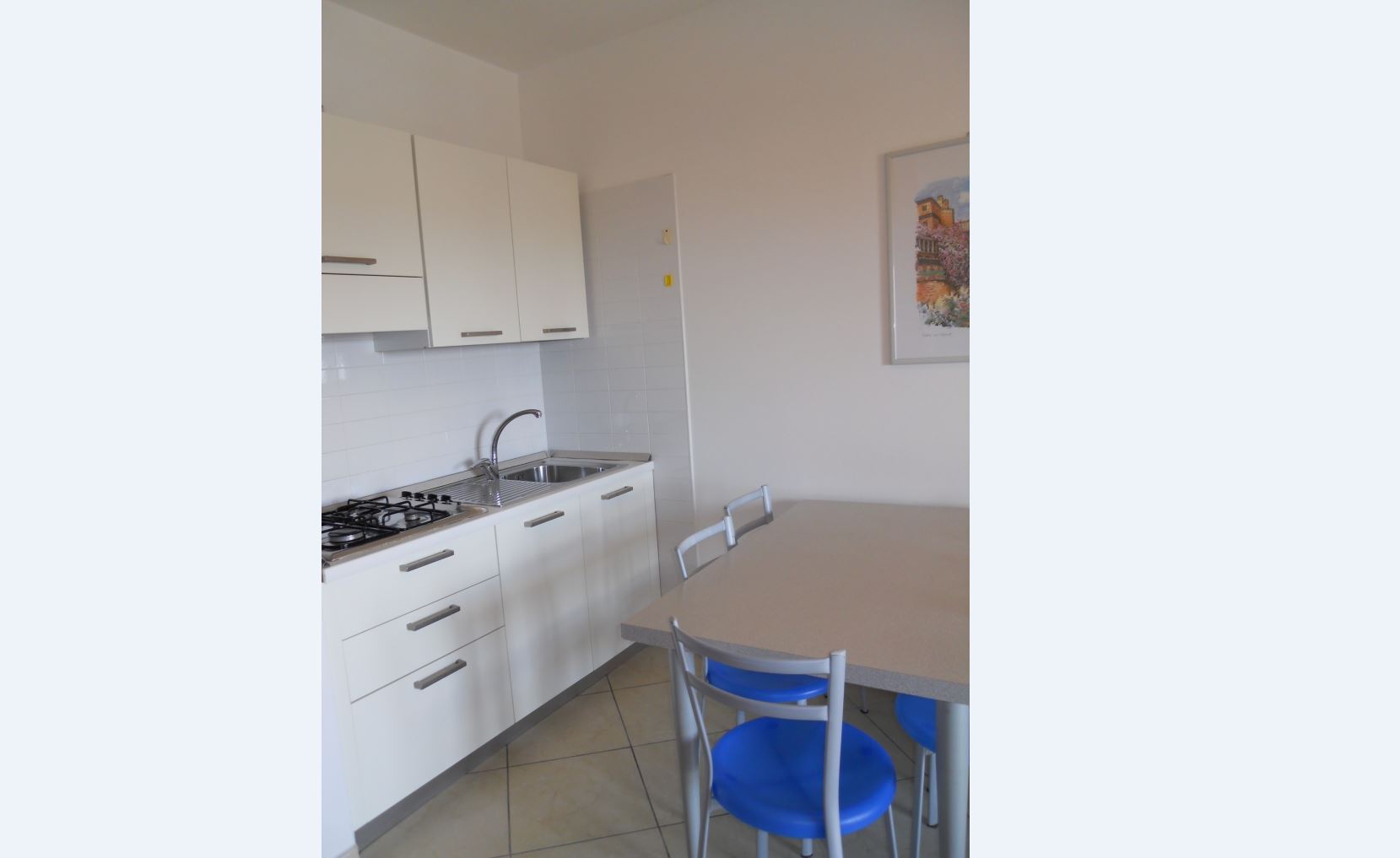 Die grosszügige Dreizimmer-Wohnung Tipo C bietet Platz für bis zu 6 Personen und befindet sich wahlweise im ersten oder fünften Stock einer mehrstöckigen Residenz mit Aufzug. Je nach Wohneinheit variiert die Raumaufteilung leicht: In der einen Variante verfügt die Wohnung über ein Schlafzimmer mit Doppelbett, ein Kinderzimmer mit Stockbett sowie ein Doppelschlafsofa im Wohnbereich für zwei weitere Gäste. In der anderen Variante ist das Schlafzimmer mit einem Doppelbett und einem zusätzlichen Einzelbett ausgestattet, während das zweite Zimmer über ein Etagenbett verfügt und im Wohnbereich ein Einzelschlafsofa bereitsteht. Eine gut eingerichtete Kochnische mit Herd, Geschirr, Besteck, Töpfen, italienischer Espressokanne und Kühlschrank mit Eisfach befindet sich ebenfalls im Wohnbereich. Das Badezimmer ist mit einer Dusche, einem Waschbecken, einem Bidet, sowie einem WC ausgestattet. Die Wohnung verfügt über einen überdachten Balkon mit seitlichem Meerblick welcher mit Tisch und Stühlen zum Verweilen einlädt. Die Fahrzeit ab italienischer Grenze beträgt ca. 4h. Hinweis: Wenn Sie mehr als eine Unterkunft benötigen, ist dies bei uns in der Regel möglich, da wir über mehrere Objekte des gleichen Haustyps verfügen.