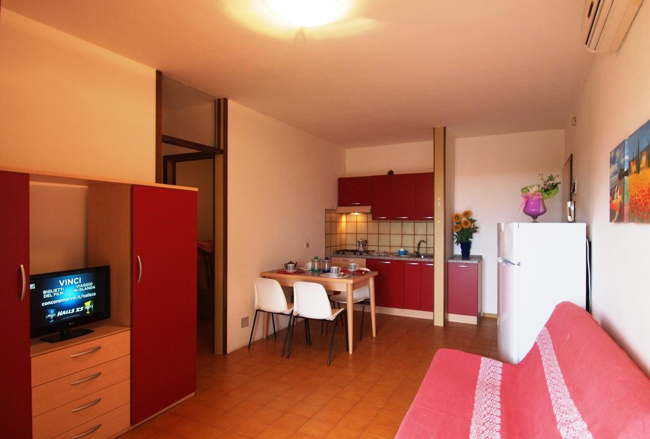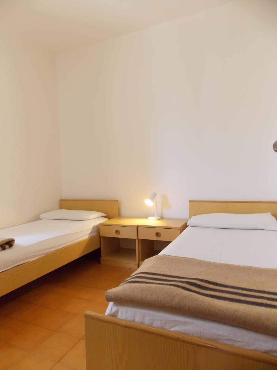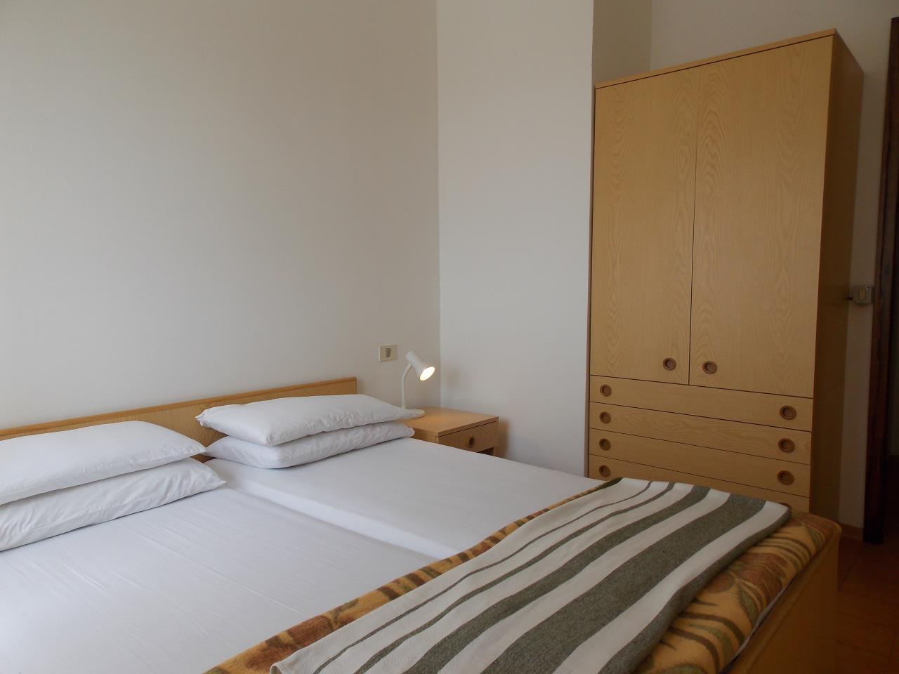 Die Dreizimmerwohnung mit seitlichem Meerblick befindet sich im 3. Stock und bietet Platz für maximal 6 Personen. Sie besteht aus einem Schlafzimmer mit einem Doppelbett sowie einem Schlafzimmer mit zwei Einzelbetten. Im Wohnbereich bietet ein Bettsofa zwei weitere Schlafplätze. Ein SAT-TV und Klimaanlage sind ebenfalls vorhanden. Die vollausgestattete Küche verfügt über einen Gasherd, Geschirr, Besteck, Kochtöpfe und einen Kühlschrank mit Eisfach. Das Badezimmer verfügt über eine Dusche, ein WC, ein Bidet und ein Waschbecken. Die Wohnung verfügt über einen Balkon mit seitlichem Meerblick und lädt mit Tisch und Stühlen zum Entspannen ein. Fahrzeit ab italienischer Grenze ca. 4h.