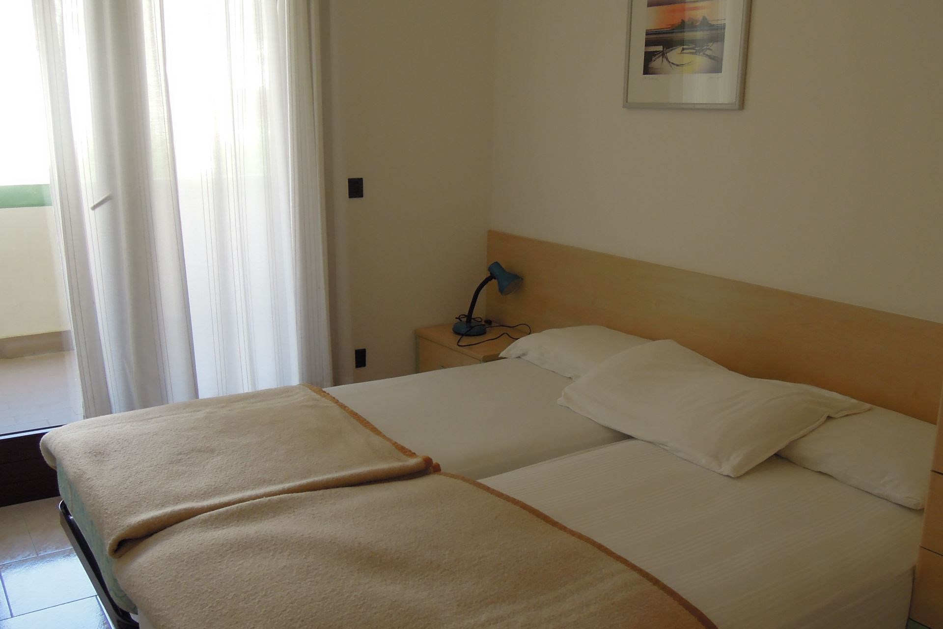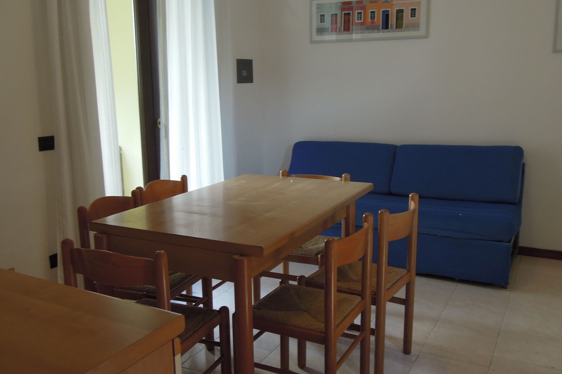 Die Vierzimmer-Wohnung Tipo D bietet Platz für max. 8 Personen und befindet sich auf zwei Stockwerken (Erdgeschoss und 1. OG). Die Wohnung verfügt über insgesamt 3 Schlafzimmer, eines mit einem Doppel- und einem Einzelbett, eines mit zwei Einzelbetten und ein Zimmer mit einem Einzelbett. Im Wohnbereich bietet ein Doppelschlafsofa zwei weitere Schlafplätze. Eine gut eingerichtete Kochnische mit Herd, Geschirr, Besteck, Töpfen, italienischer Espressokanne, Mikrowelle und Kühlschrank mit Eisfach befindet sich ebenfalls im Wohnbereich. Eine Klimaanlage ist vorhanden. Die beiden Badezimmer sind jeweils mit einer Dusche, einem Waschbecken, einem Bidet, sowie einem WC ausgestattet. Die Wohnung verfügt zudem über einen eingezäunten Garten mit Poolblick und eine überdachte Terrasse mit Gartenmöbeln. Die Fahrzeit ab italienischer Grenze beträgt ca. 4h. Hinweis: Wenn Sie mehr als eine Unterkunft benötigen, ist dies bei uns in der Regel möglich, da wir über mehrere Objekte des gleichen Haustyps verfügen.