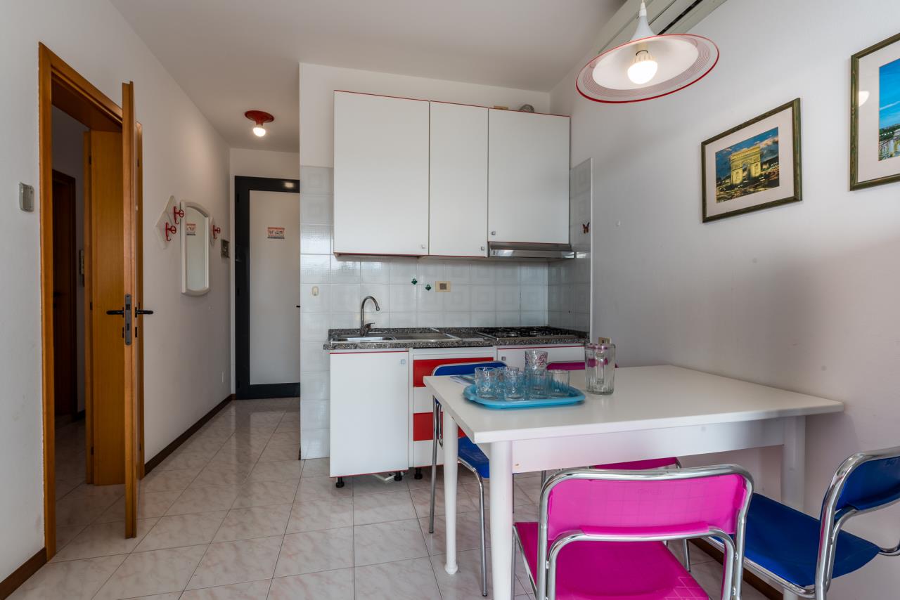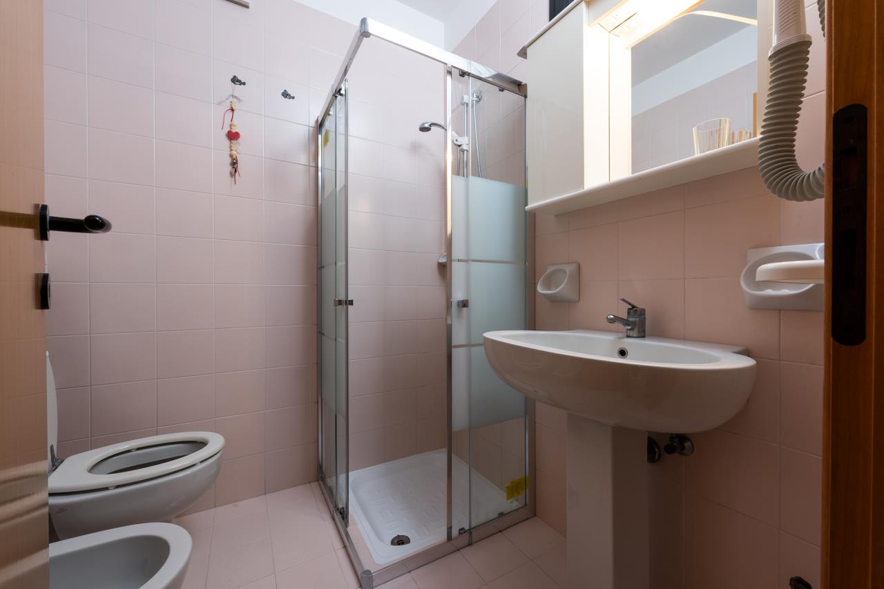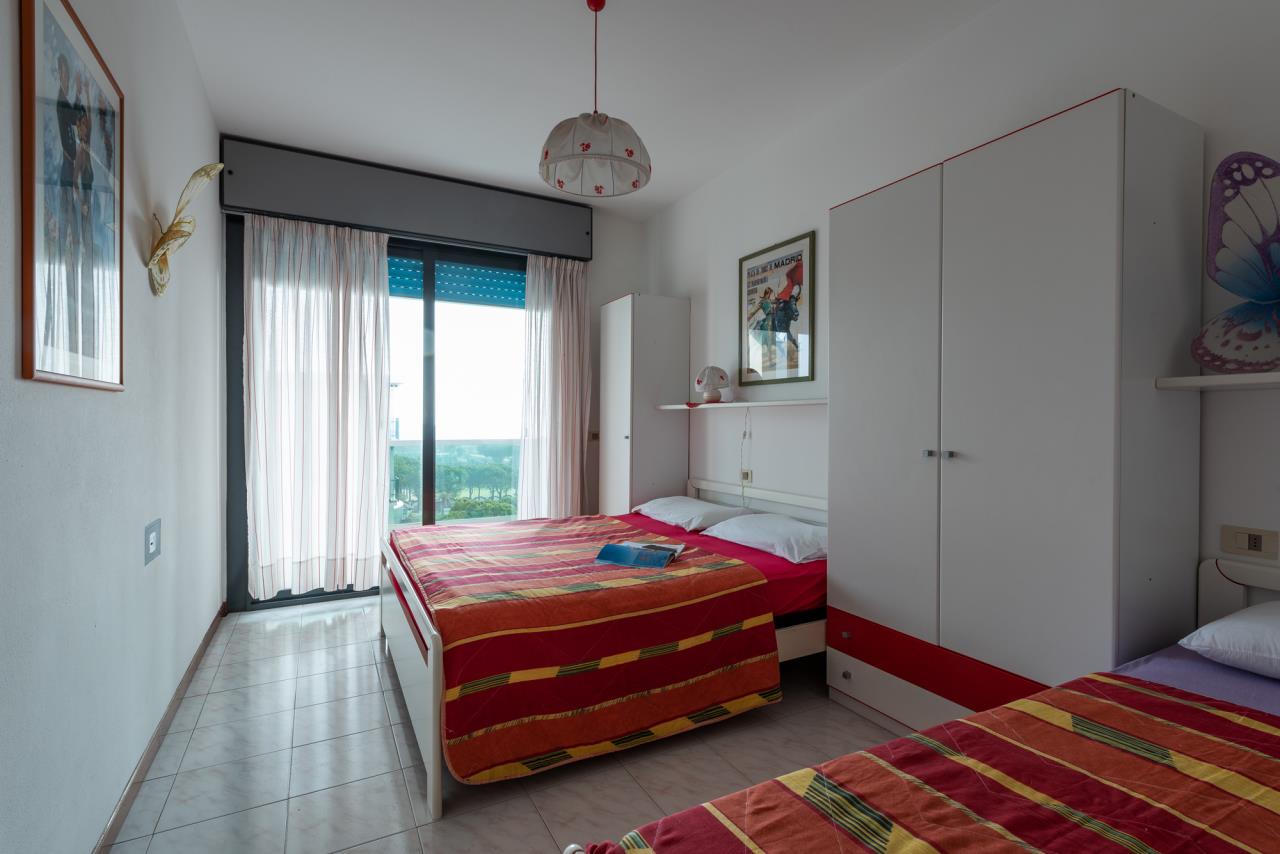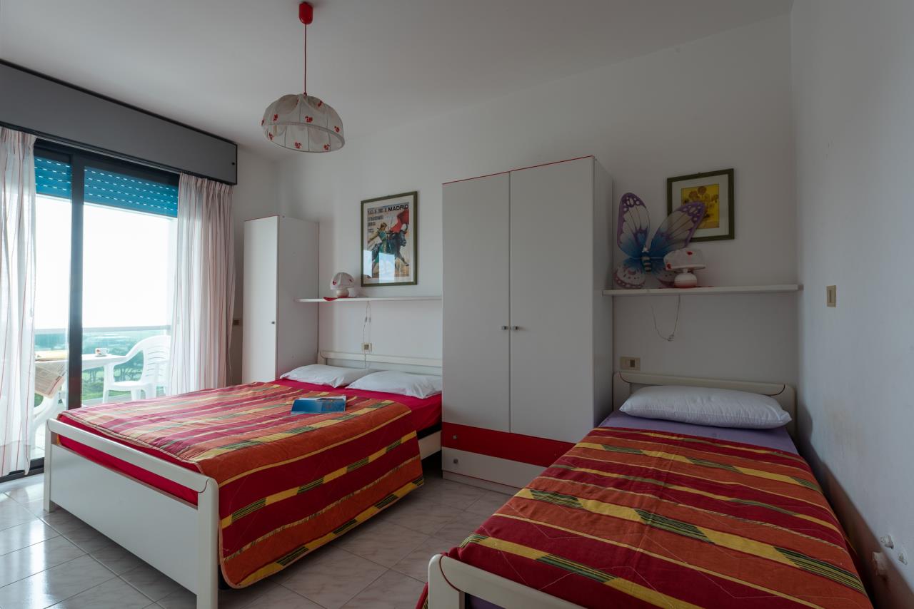 Die Zweizimmerwohnung mit seitlichem Meerblick befindet sich im 5. Stock und bietet Platz für maximal 5 Personen. Sie umfasst ein Schlafzimmer mit Doppelbett und Einzelbett sowie ein Schlafsofa im Wohnbereich, das zwei zusätzliche Schlafmöglichkeiten bietet. Ein SAT-TV und Klimaanlage sind ebenfalls vorhanden. Die vollausgestattete Küche verfügt über einen Gasherd, Geschirr, Besteck, Kochtöpfe, Mikrowelle, Waschmaschine und einen Kühlschrank mit Eisfach. Die Unterkunft verfügt über zwei Badezimmer, die jeweils mit Dusche, WC, Waschbecken und Bidet ausgestattet sind. Zur Wohnung gehört ein 12 m² grosser Balkon mit seitlichem Meerblick, der mit einem Tisch und Stühlen zum Verweilen und Entspannen einlädt. Fahrzeit ab italienischer Grenze ca. 4h.