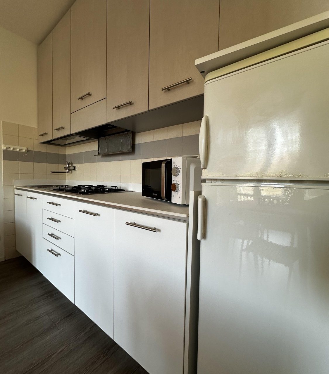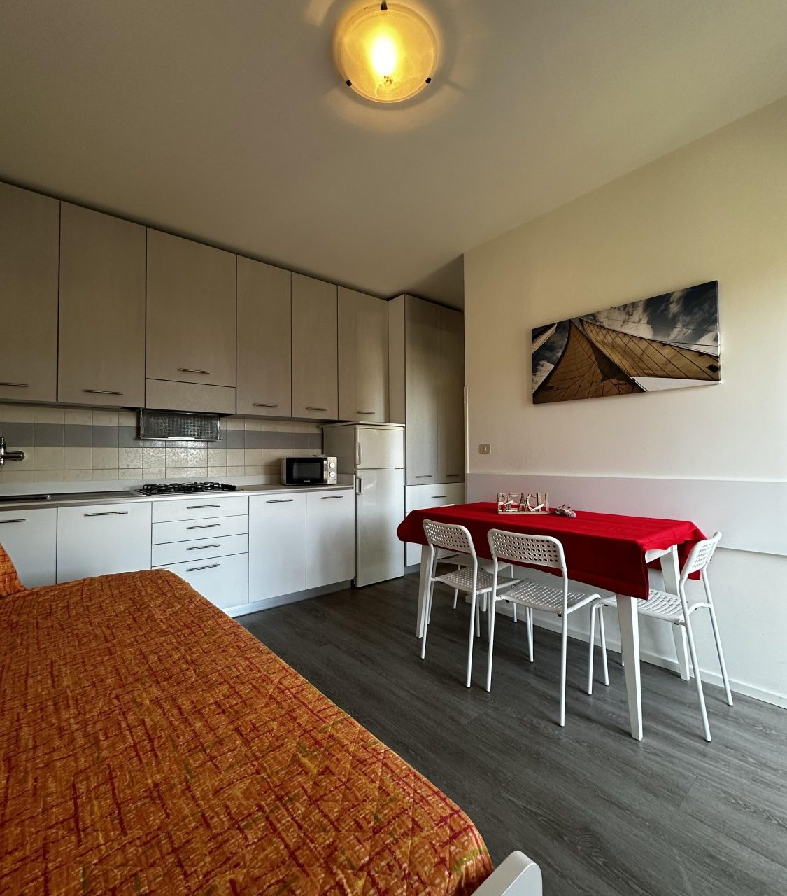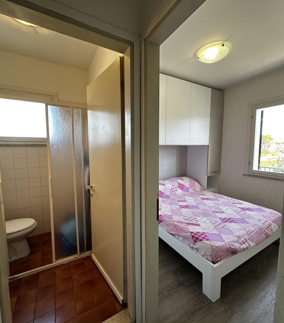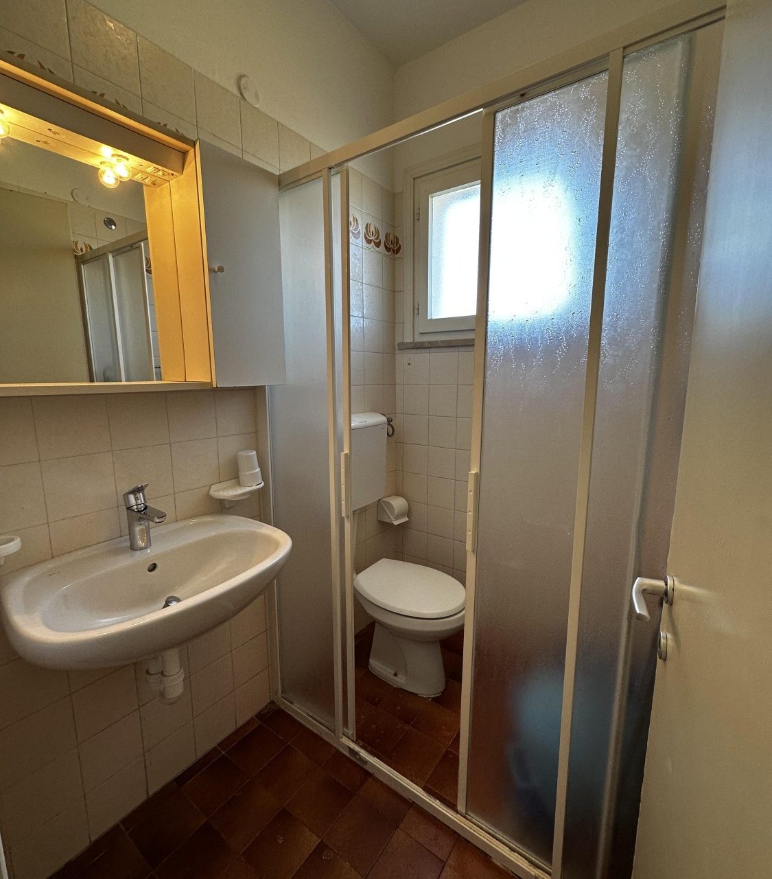 Die kürzlich komplett renovierte Zweizimmerwohnung befindet sich im 1. Stock und bietet Platz für maximal 4 Personen. Sie umfasst ein Schlafzimmer mit Doppelbett sowie ein Schlafsofa im Wohnbereich, das zwei zusätzliche Schlafmöglichkeiten bietet. Ein SAT-TV und Klimaanlage sind ebenfalls vorhanden. Die vollausgestattete Küche verfügt über einen Gasherd, Geschirr, Besteck, Kochtöpfe, Mikrowelle und einen Kühlschrank mit Eisfach. Das Badezimmer ist mit Dusche, WC und Waschbecken ausgestattet. Die Wohnung verfügt über einen Balkon und lädt mit Tisch und Stühlen zum Entspannen ein. Fahrzeit ab italienischer Grenze ca. 4h.