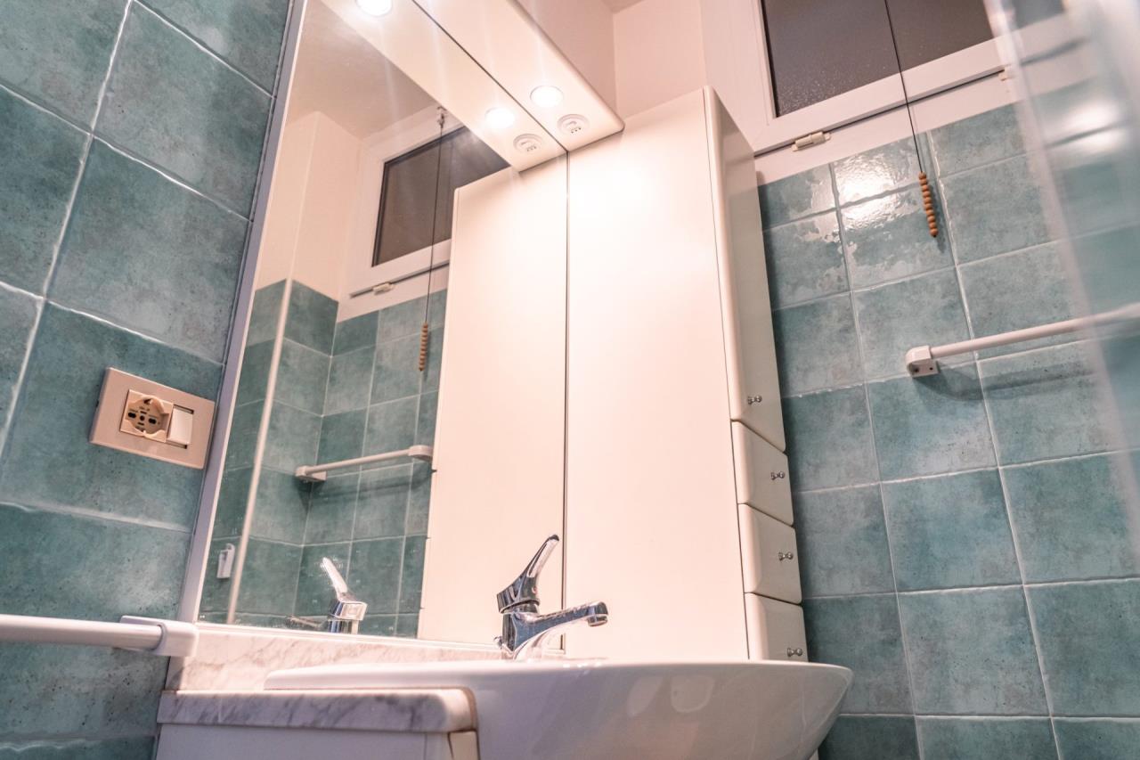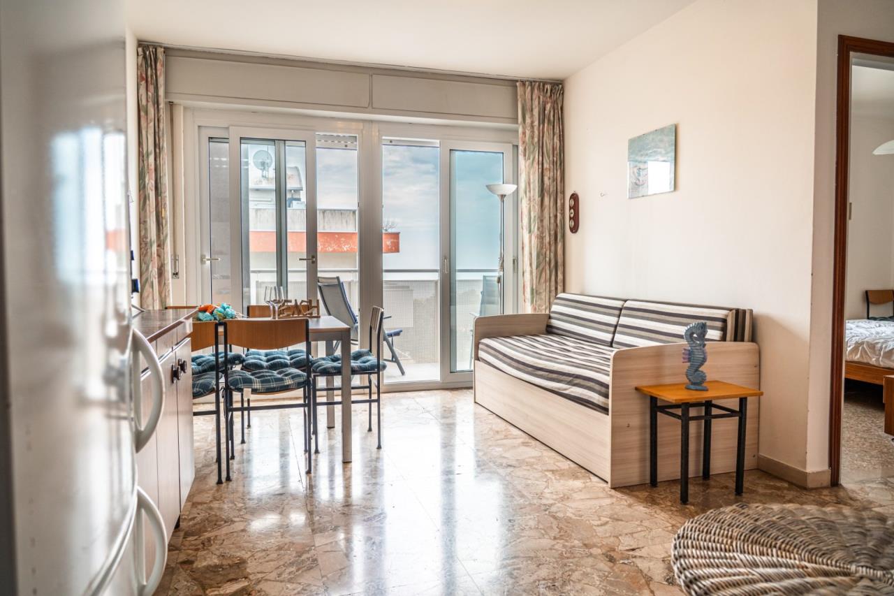 Die Dreizimmerwohnung mit Meerblick befindet sich im 6. und zugleich obersten Stockwerk und bietet Platz für maximal 6 Personen. Sie besteht aus einem Schlafzimmer mit einem Doppelbett sowie einem Schlafzimmer mit zwei Einzelbetten. Im Wohnbereich bietet ein Bettsofa zwei weitere Schlafplätze. Ein SAT-TV, eine Waschmaschine und Klimaanlage sind ebenfalls vorhanden. Die vollausgestattete Küche verfügt über einen Gasherd, Geschirr, Besteck, Kochtöpfe, Mikrowelle und einen Kühlschrank mit Eisfach. Das Badezimmer verfügt über eine Dusche, ein WC, ein Bidet und ein Waschbecken. Der grosszügige Balkon mit Meerblick lädt mit Tisch und Stühlen zum Verweilen und Entspannen ein. Fahrzeit ab italienischer Grenze ca. 4h.