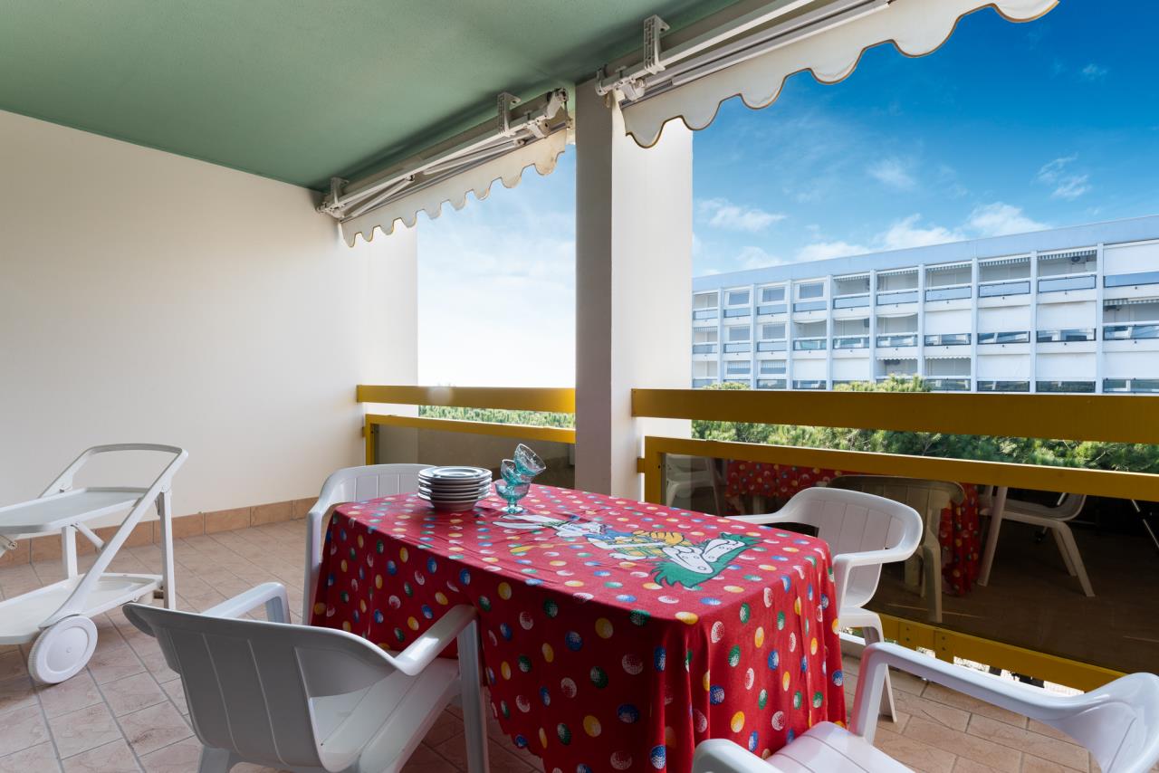 Die Zweizimmerwohnung bietet Platz für maximal 5 Personen. Sie umfasst ein Schlafzimmer mit Doppelbett und Einzelbett sowie ein Schlafsofa im Wohnbereich, das zwei zusätzliche Schlafmöglichkeiten bietet. Ein SAT-TV, Waschmaschine und Klimaanlage sind ebenfalls vorhanden. Die vollausgestattete Küche verfügt über einen Gasherd, Geschirr, Besteck, Kochtöpfe und einen Kühlschrank mit Eisfach. Das Badezimmer ist mit Dusche, WC, Bidet und Waschbecken ausgestattet. Zur Wohnung gehört ein grosszügiger Balkon der mit einem Tisch und Stühlen zum Verweilen und Entspannen einlädt. Fahrzeit ab italienischer Grenze ca. 4h.