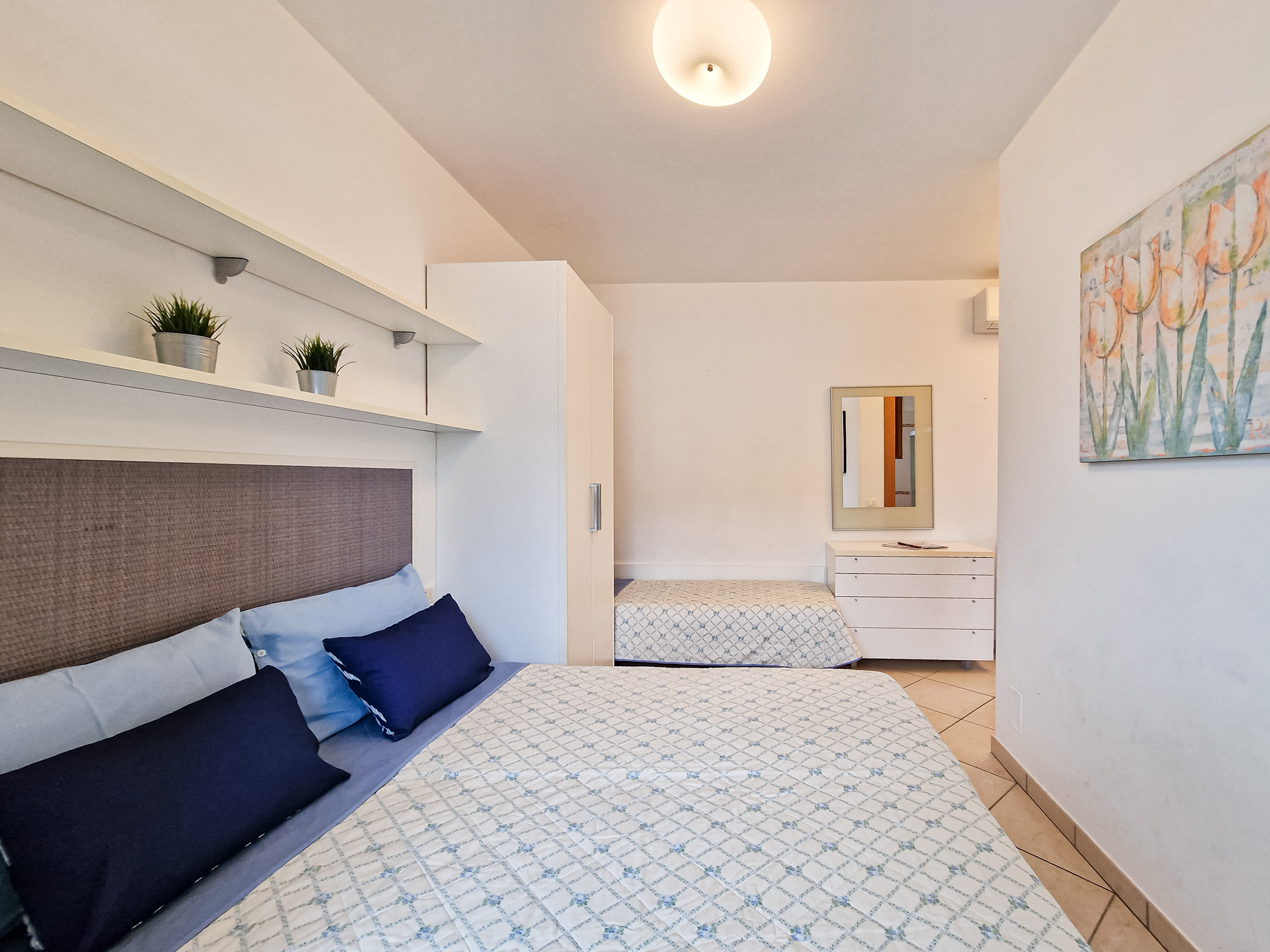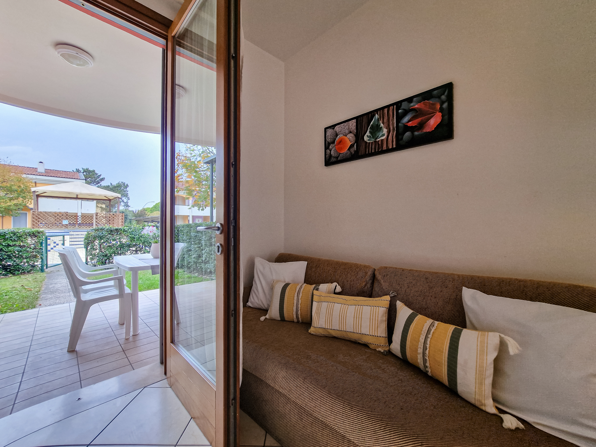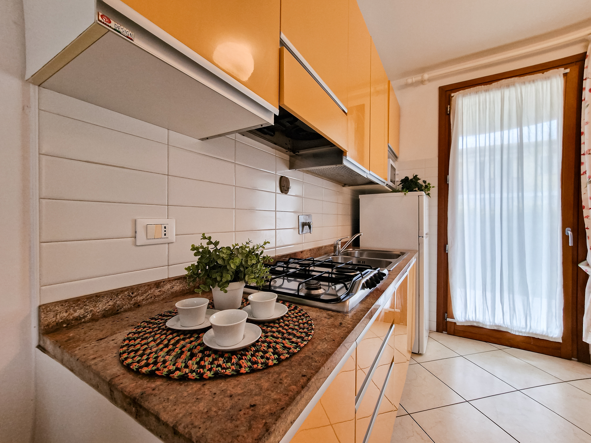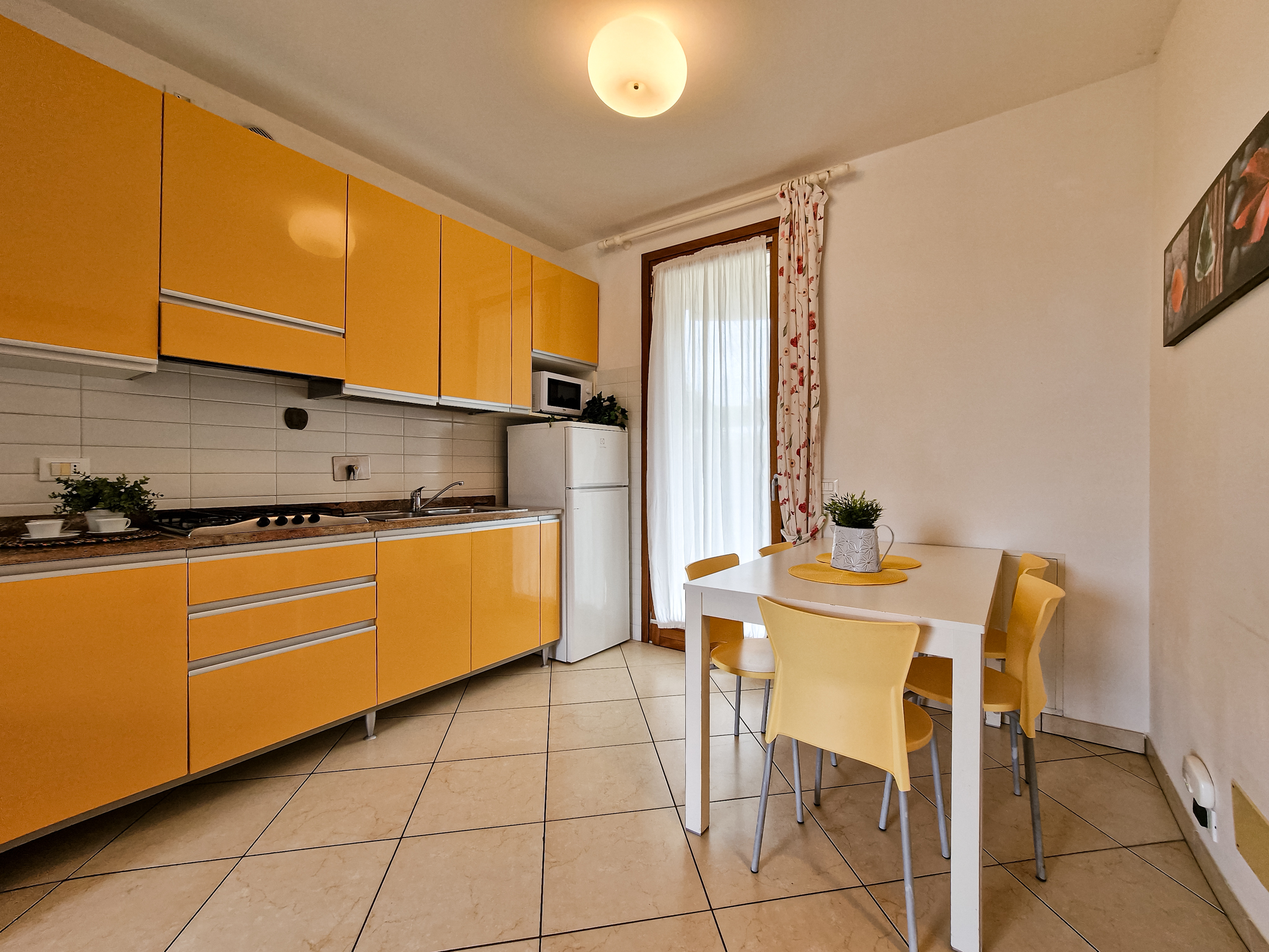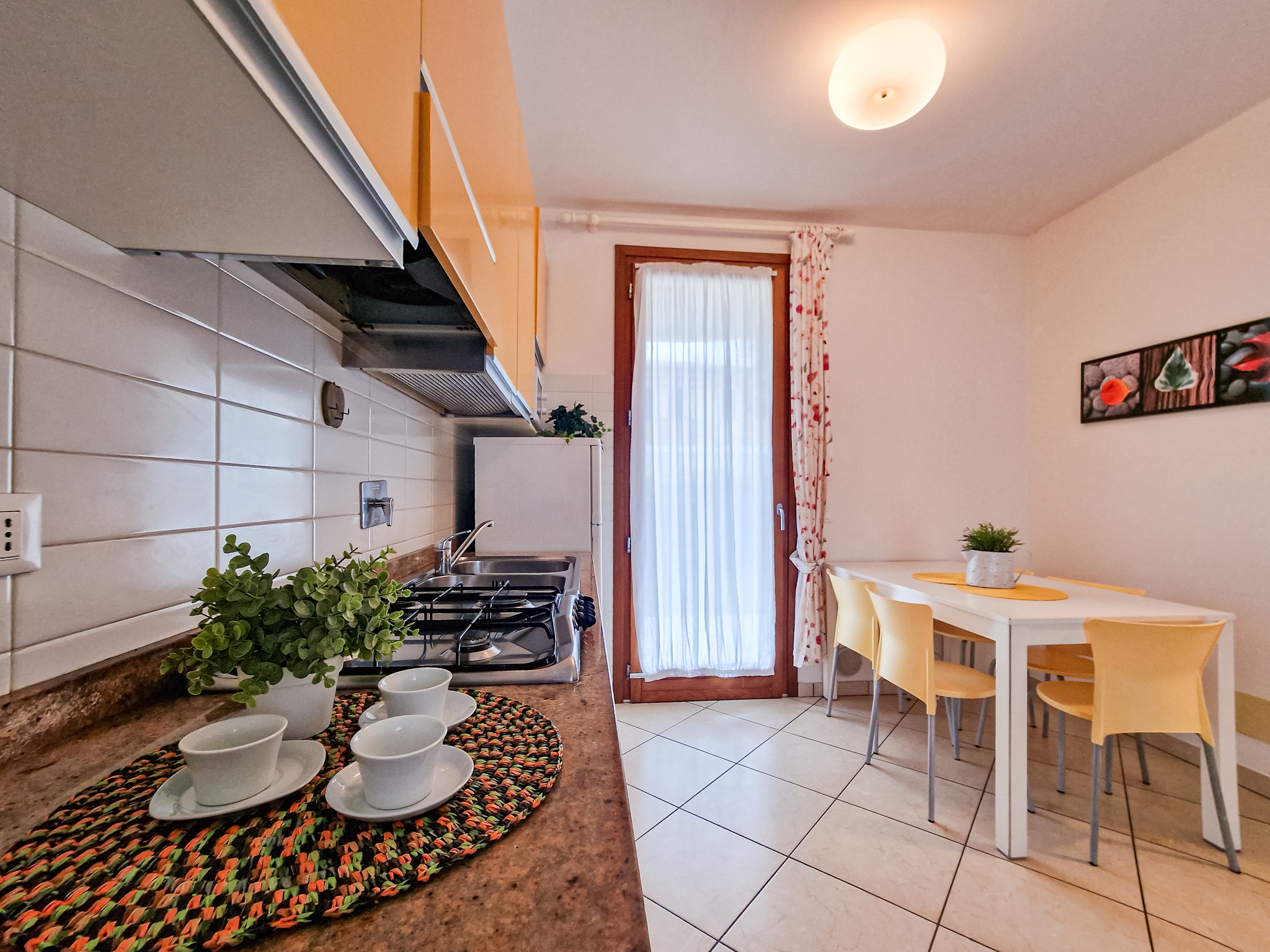Die Zweizimmer-Wohnung Tipo B ist für bis zu 4 Personen geeignet und befindet sich im Erdgeschoss der Residenz. Die Unterkunft verfügt über ein Schlafzimmer, das mit einem Doppelbett sowie einem Einzelbett ausgestattet ist, während im kombinierten Wohn- und Essbereich ein Einzelbettsofa bei Bedarf einen weiteren Schlafplatz bietet. Die gut eingerichtete Küche befindet sich im Wohnbereich und ist mit einem Gasherd, Geschirr, Besteck, Töpfen, einer Mikrowelle, einer Kaffeemaschine und einem grossen Kühlschrank mit Eisfach ausgestattet. Die Wohnung verfügt über ein Badezimmer mit Dusche, WC und Waschbecken. Die Wohnung verfügt gleich über eine überdachten Sitzplatz mit Tisch, Stühlen ausgestattet. Die Klimaanlage und ein SAT-TV sind vorhanden. Eine eigene Waschmaschine steht Ihnen in der Wohnung zur Verfügung. Ein überdachter Parkplatz ist vorhanden. Die Fahrzeit ab der ital. Grenze beträgt ca. 4h. Hinweis: Wenn Sie mehr als eine Unterkunft benötigen, ist dies bei uns in der Regel möglich, da wir über mehrere Objekte des gleichen Haustyps verfügen.