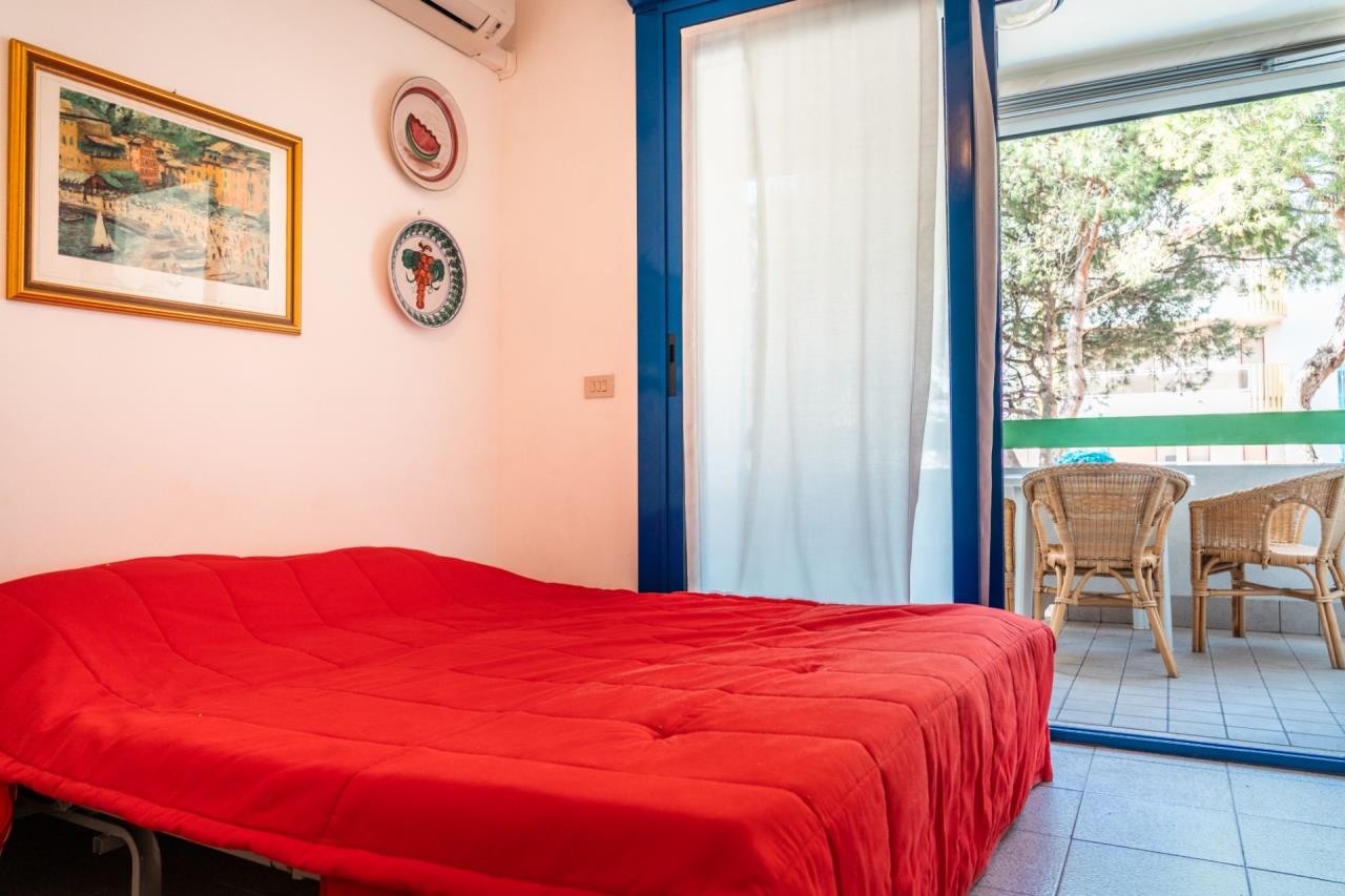 Die Einzimmerwohnung befindet sich je nach Verfügbarkeit im 2. oder 3. Stock und bietet Platz für maximal 4 Personen. Im Wohnraum befinden sich ein Doppelschlafsofa sowie ein ausziehbares Etagenbett. Die vollausgestattete Küche verfügt über einen Gasherd, Geschirr, Besteck, Kochtöpfe, Mikrowelle und einen Kühlschrank mit Eisfach. Das Badezimmer ist mit Dusche, WC, Bidet und Waschbecken ausgestattet. Zur weiteren Ausstattung gehören eine Klimaanlage, ein SAT-TV und ein grosszügiger Balkon der mit Tisch und Stühlen zum Verweilen einlädt. Fahrzeit ab italienischer Grenze ca. 4h.
