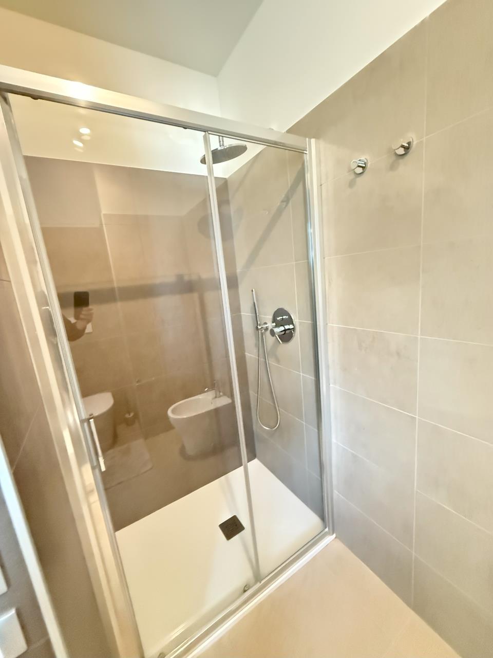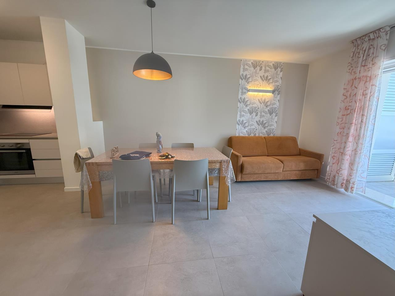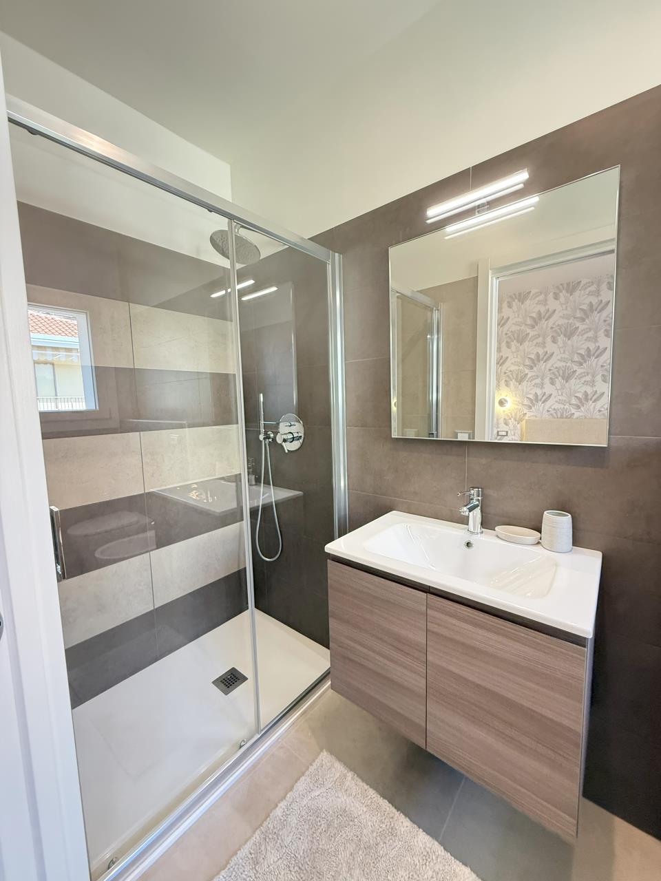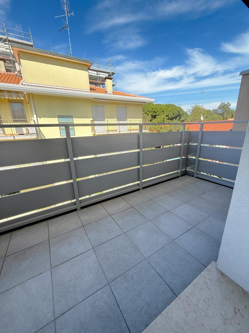 Die moderne, neu renovierte Dreizimmerwohnung befindet sich im 2. Stock des Ferienhauses, das keinen Aufzug besitzt, und bietet Platz für maximal 7 Personen. Sie verfügt über ein Schlafzimmer mit einem Doppelbett sowie ein weiteres Schlafzimmer mit einem Doppelbett und einem Einzelbett. Im Wohnbereich bietet ein Bettsofa zwei weitere Schlafplätze. Ein SAT-TV, eine Waschmaschine und eine Klimaanlage sind ebenfalls vorhanden. Die vollausgestattete Küche verfügt über einen Induktionsherd, Geschirr, Besteck, Kochtöpfe, eine Mikrowelle, einen Geschirrspüler und einen Kühlschrank mit Eisfach. Die Wohnung bietet zwei Badezimmer, die jeweils mit einem Waschbecken, einem WC, einer Dusche und einem Bidet ausgestattet sind. Der Balkon lädt mit Tisch und Stühlen zum Verweilen und Entspannen ein. Fahrzeit ab italienischer Grenze ca. 4h.