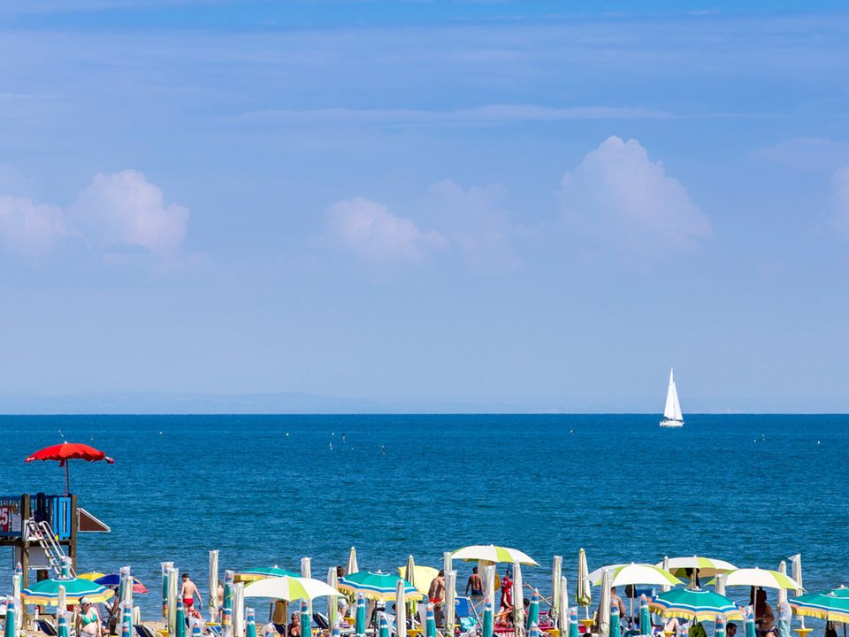 STRANDDer schöne, breite Sandstrand von Bibione Spiaggia ist von der Residenz aus in wenigen Gehminuten zu erreichen. Während Sie die Sonne und das sanfte Rauschen des Meeres geniessen, können sich Ihre Kinder am flachabfallenden goldenen Strand oder auf einem der vielen Spielplätze austoben. Wer es lieber etwas sportlicher möchte, findet am Strand von Bibione diverse Sportmöglichkeiten und auch Animationsprogramme für Gross und Klein. Für die Kinder gibt es Bastelwerkstätten, sportliche Aktivitäten und Spiele, welche es Ihnen ermöglichen rasch neue Freundschaften zu schliessen. Selbstverständlich stehen Ihnen am Strand verschieden Bars, WCs und Duschen zur Verfügung. Zudem sorgen Rettungsschwimmer für die Sicherheit der Gäste, so dass Sie Ihren Aufenthalt am Strand in vollen Zügen geniessen können. Der Strand ist mit breiten Wegen ausgestattet und somit auch ideal für Familien mit Kinderwagen. Für Hundebesitzer gibt es in Bibione den Pluto-Strand. Hier finden Hundebesitzer alles vor, was man sich von einem Hundestrand wünscht. Von der Hundeleinenhalterung an der Sonnenliege, über Hundeschüsseln und Fliesswasser für die Erfrischung der Hunde.
