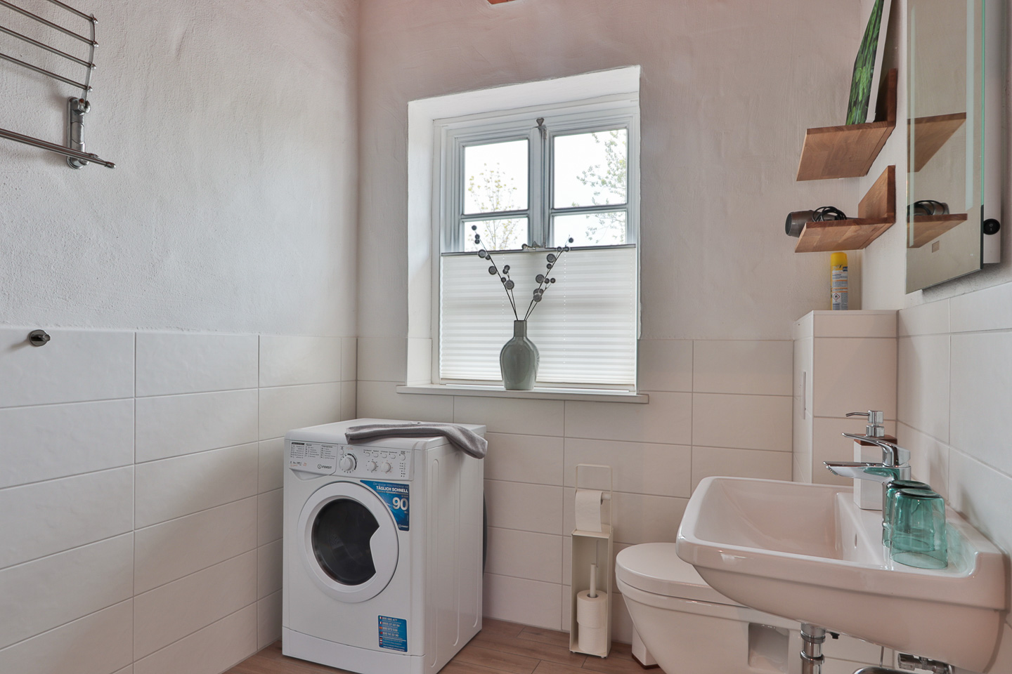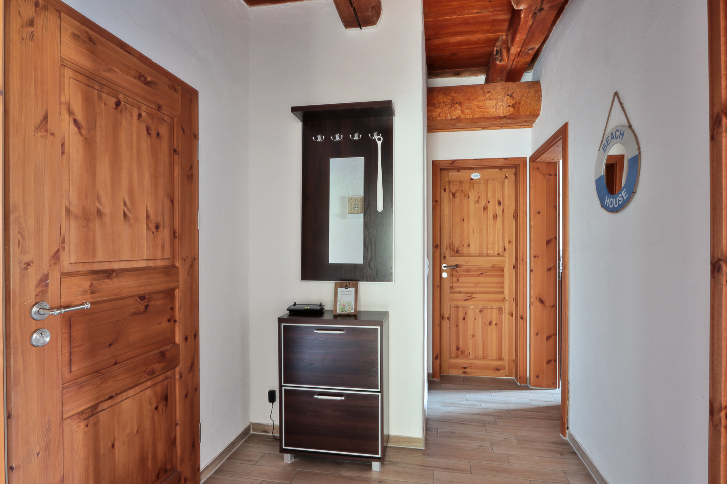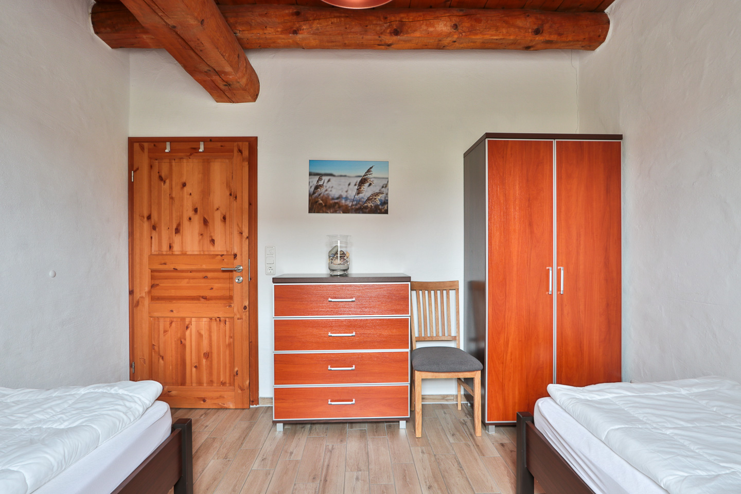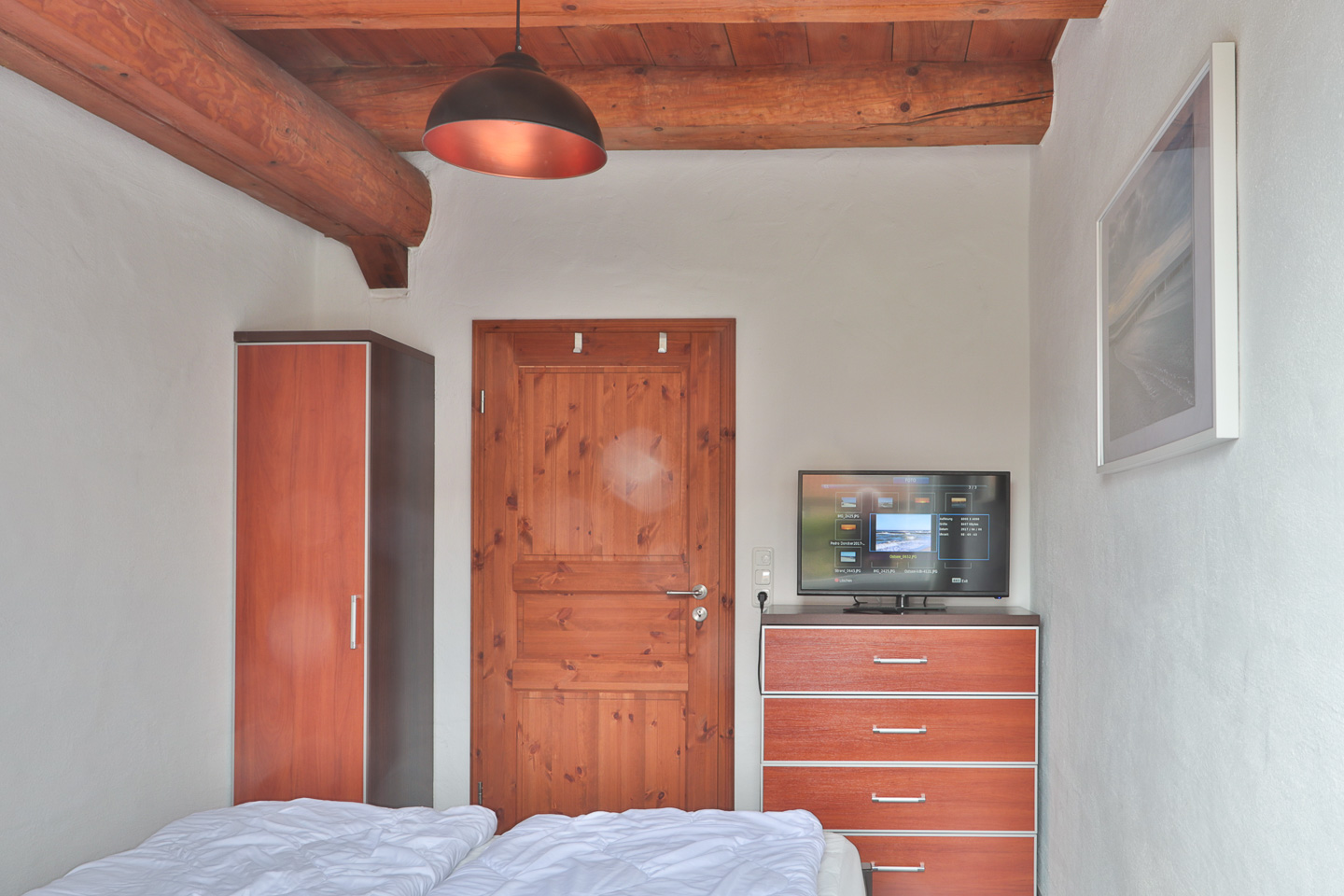 Die Wohnung befindet sich im Erdgeschoss und hat keine Stufen. Es gibt 3 Schlafzimmer, eins mit Doppelbett und TV, eins mit 2 Einzelbetten und im dritten steht ein Einzelbett.. Das großzügige Wohnzimmer ist ausgestattet mit einern bequemen Couch und Esstisch, TV und Radio. Die offene Küche verfügt über alle modernen Geräte u.a. gibt es eine Kaffeemaschine für ganze Bohnen. Vom Wohnzimmer aus gelangt man auf die Terrasse, Terrassenmöbel und Sonnenschirm fehlen natürlich auch nicht. Das Bad hat eine Dusche sowie eine Waschmaschine. Es sind 2 PKW-Stellplätze vorhanden.