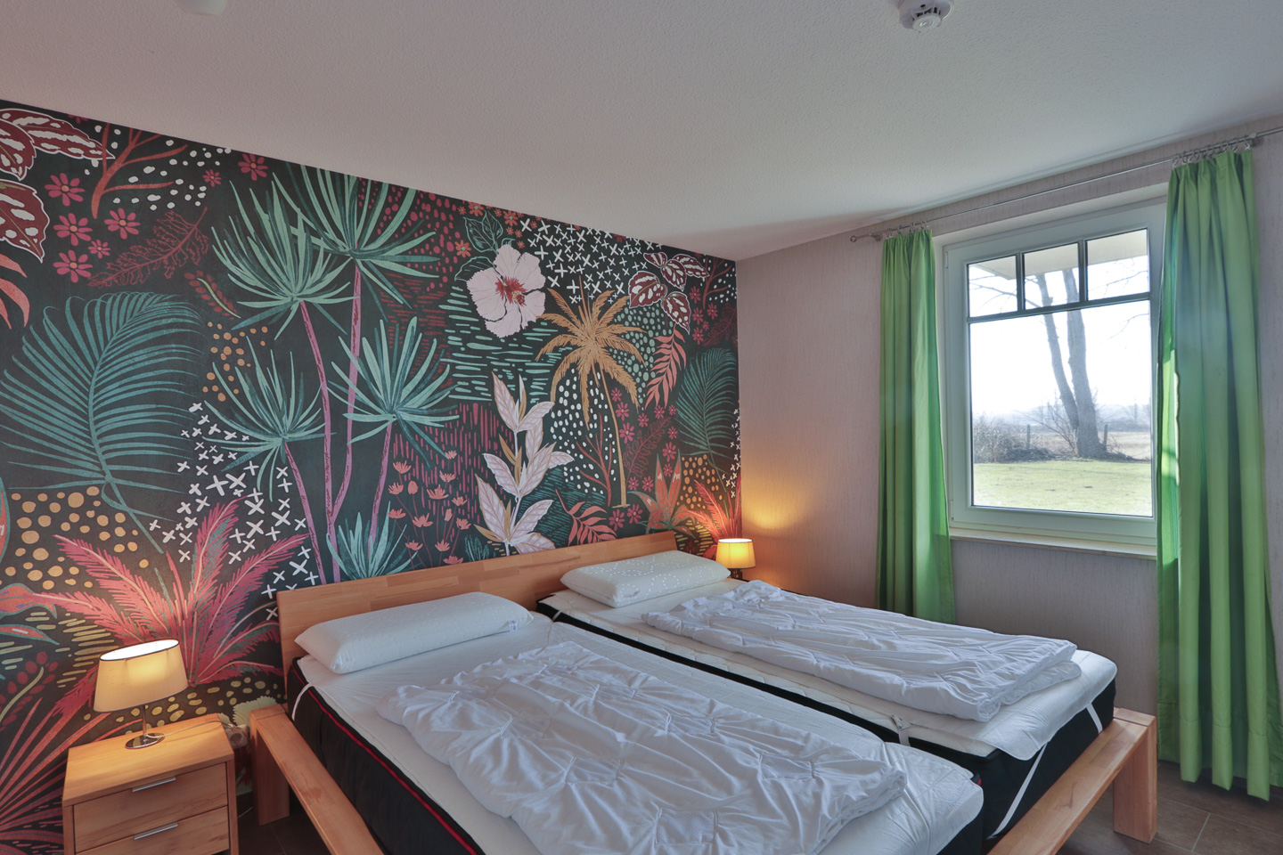 Das ruhige Schlafzimmer hat ein Doppelbett (200x200 cm) und einen Kleiderschrank.