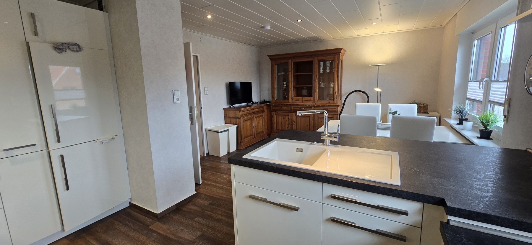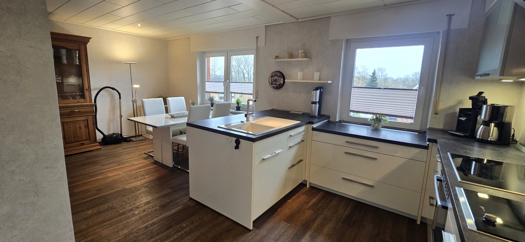 Die separate Küche ist ausgestattet und bietet eine Sitzmöglichkeit für bis zu 4 Personen, ideal für gemeinsame Mahlzeiten.