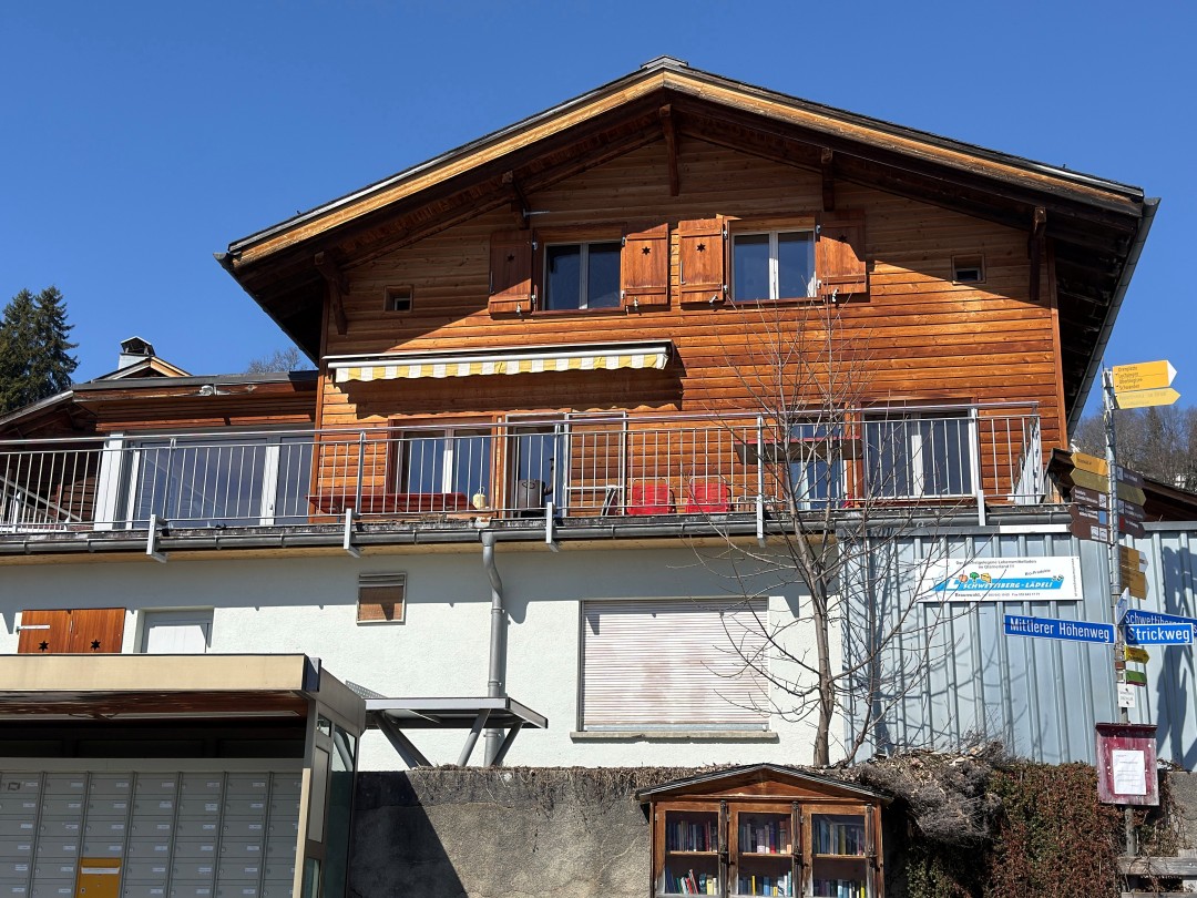 Die Wohnung befindet sich direkt oberhalb des Schwettiberg-Lädeli, im 1. und 2. OG - Sozusagen direkt im Shoppingcenter.
