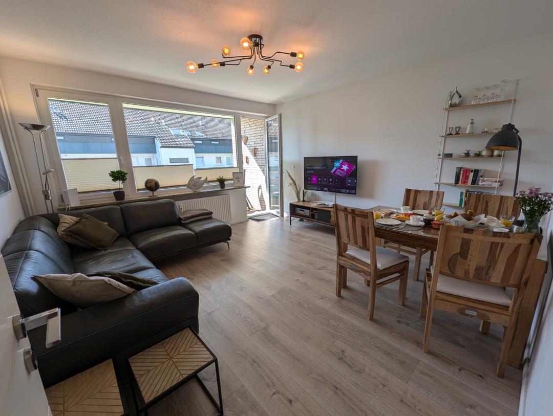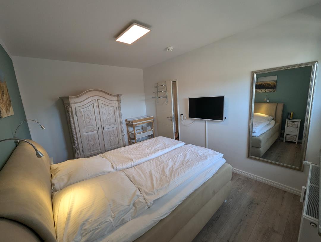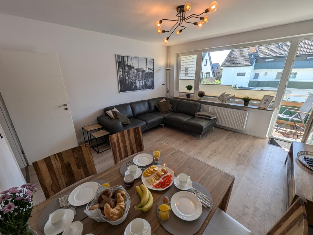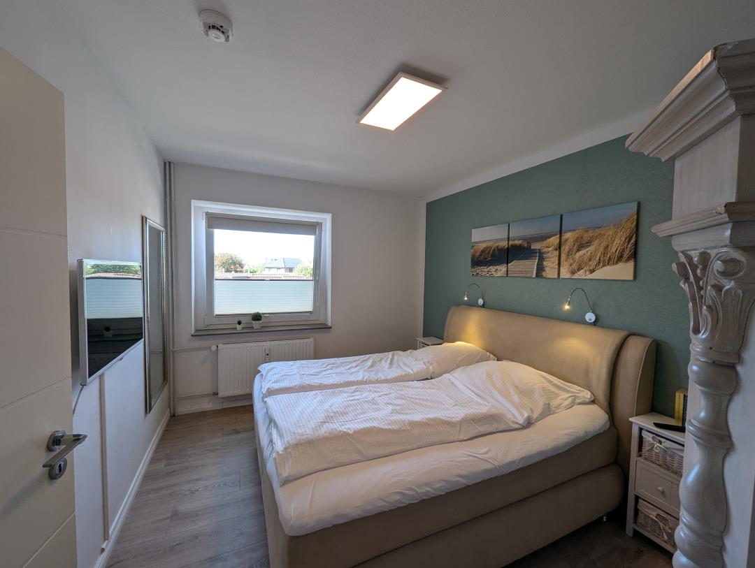 Moin! Unsere schöne und modern eingerichtete 65 qm große Ferienwohnung befindet sich im sehr gepflegten Haus Steuerbord, in der ruhigen Seitenstraße Blauort. Zur Familienlagune Perlebucht sind es nur wenige 100 Meter. Ein Keller zum Unterstellen von Fahrrädern ist ebenfalls vorhanden. Einkaufsmöglichkeiten, Bäcker und Kinderspielplatz erreichen Sie ebenfalls sehr schnell fußläufig. Unsere vom DTV mit 3 Sternen klassifizierte, familienfreundliche Fewo wurde Mitte 2020 neu renoviert und bietet Platz bis zu 4 Erwachsene plus Kleinkind. Reisebett vorhanden. Die frisch renovierte Wohnung liegt im 1. OG und verfügt über ein Elternschlafzimmer mit Boxspringbett 180 x 200cm, einem weiteren Schlafzimmer mit Doppelbett 160 x 200cm, einem Wohnzimmer mit separatem Essbereich, SmartTV und Relaxsofa, sowie einem Badezimmer mit Fenster und einer separaten voll ausgestatteten Küche inkl. Geschirrspüler, KühlGefrierkombination und Mikrowelle. Die vom Wohnzimmer ausgehende Südwestloggia runden das maritime Wohnvergnügen ab. Wir wünschen einen angenehmen Aufenthalt.