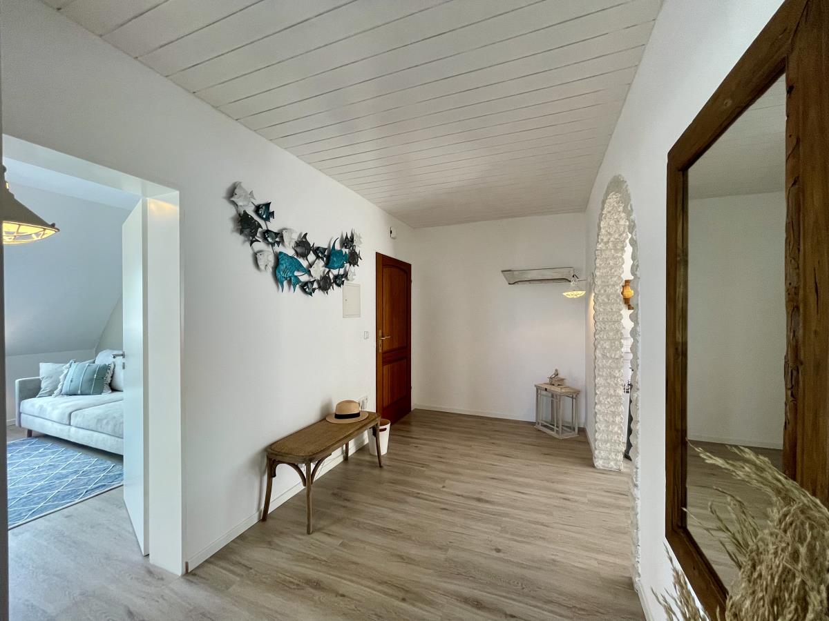Die 86qm-Wohnung ist schick und, stilsicher eingerichtet und außerdem perfekt für alle, die etwas mehr Raum zur freien Entfaltung lieben. Richtig gut(!)- falls Euch ein Deko- oder Möbelstück besonders gefällt, schaut einfach mal bei Treibsel & Mee(h)r in Büsum vorbei.