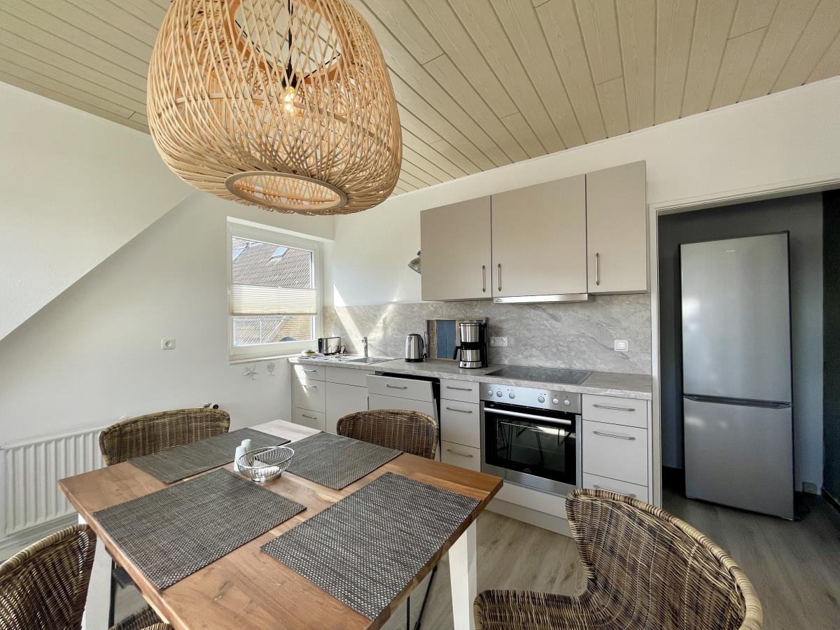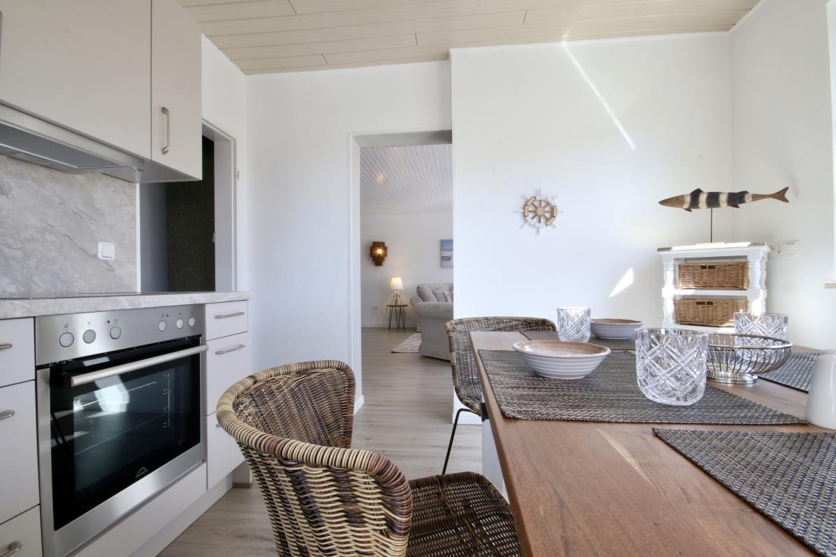 Im Wohnbereich findet ihr schicke bequeme Sitzmöbel, Smart-TV und einen direkten Zugang zum Balkon und natürlich zur angrenzenden Küche mit Essbereich. Hier gibt es alle praktischen Küchenhelfer, die man für die leckere Urlaubsküche, einen gepflegten Kaffee oder die Zubereitung kleiner Leckereien für Zwischendurch so braucht.