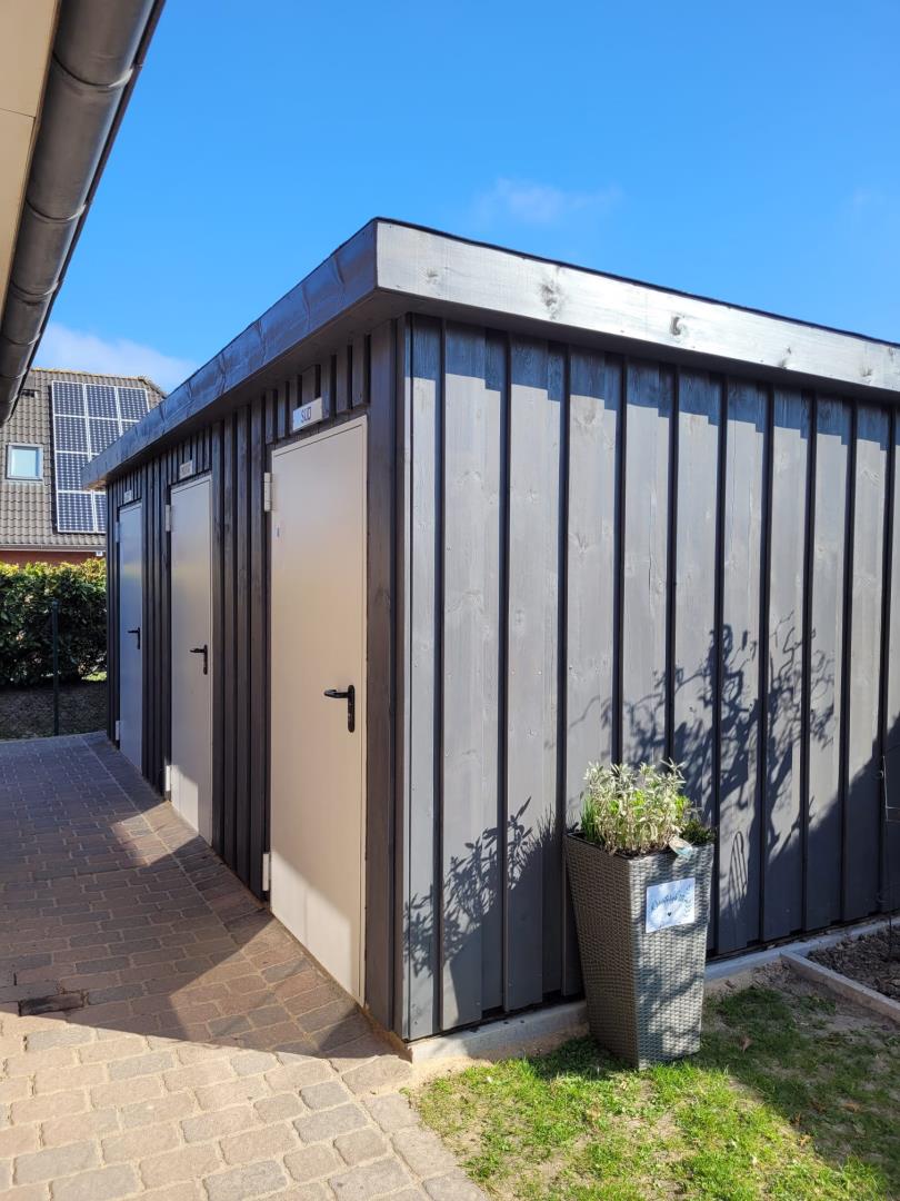 Für jede Einheit steht ein separater und abschließbarer Fahrradschuppen mit Lademöglichkeit zur Verfügung.