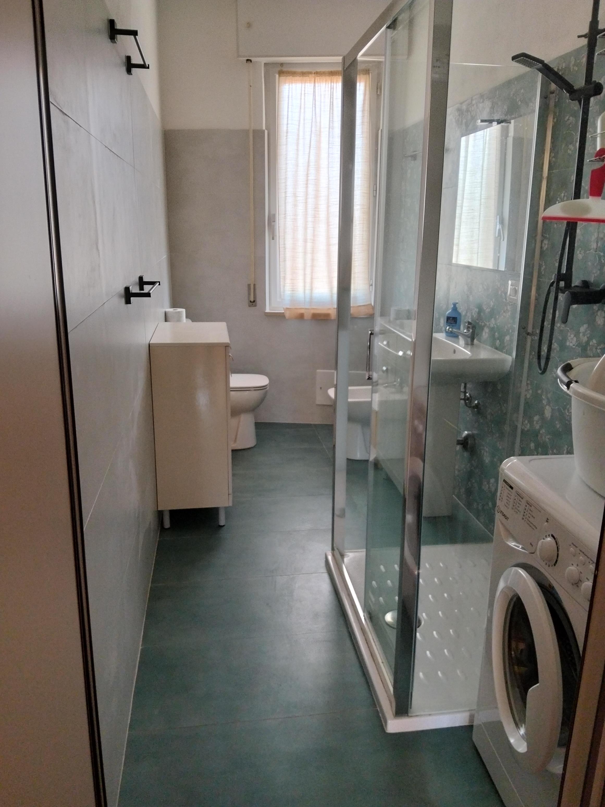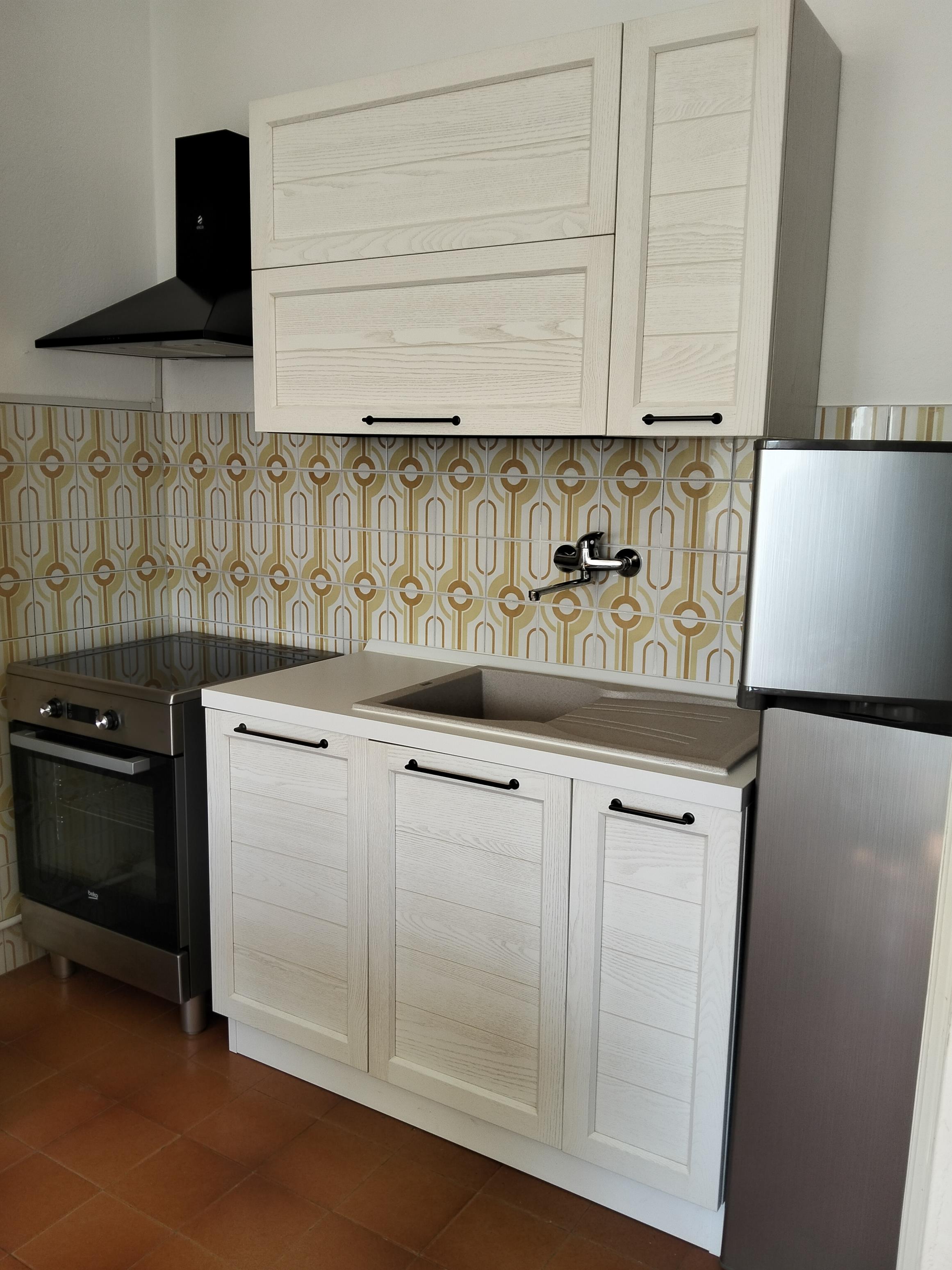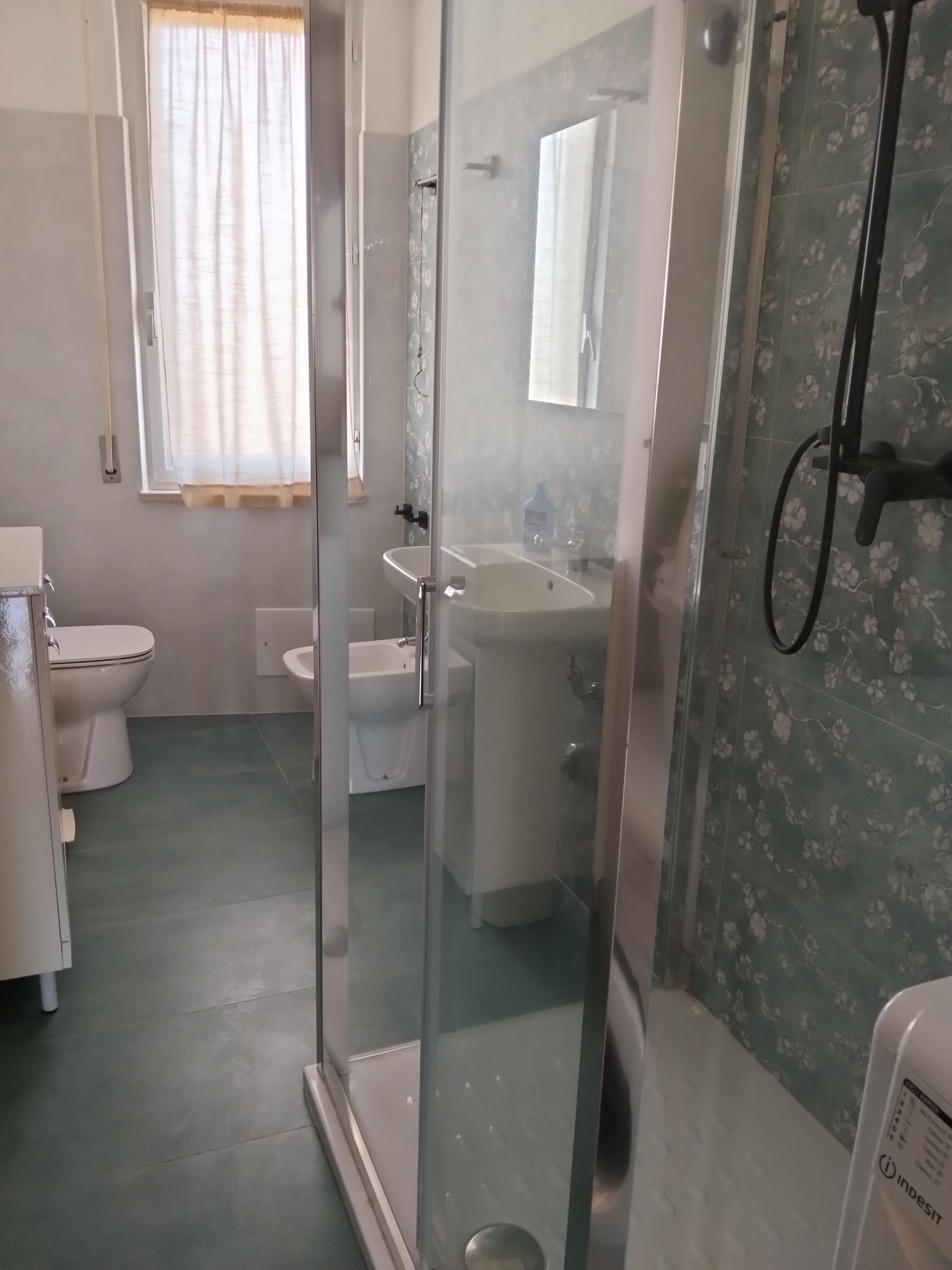 Il trilocale ristrutturato si trova al primo piano e vanta una splendida vista mare. L'appartamento può ospitare un massimo di 5 adulti oppure 4 adulti e 2 bambini (fino a 10 anni). Dispone di una camera da letto con letto matrimoniale e di una seconda camera con due letti singoli. Nella zona pranzo, il divano letto offre un ulteriore posto letto per due bambini (fino a 10 anni) o per un adulto. L’angolo cottura, ben attrezzato, è inserito nella zona giorno e comprende fornelli, pentole, stoviglie, posate, microonde, forno, una moka per il caffè e un frigorifero con scomparto freezer. Per garantire il massimo comfort nelle giornate più calde, sono presenti in totale tre condizionatori: un apparecchio separato per ciascuna delle due camere da letto e uno per la zona giorno. Il bagno, finestrato, è dotato di doccia, lavatrice, lavabo, bidet e WC. Oltre al balcone, l'appartamento dispone di due giardini privati recintati. Il primo giardino è attrezzato con barbecue, tavolo e sedie, offrendo la cornice ideale per serate conviviali. Il secondo giardino funge da oasi di pace, arredato con accoglienti lettini per il massimo relax.