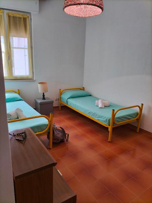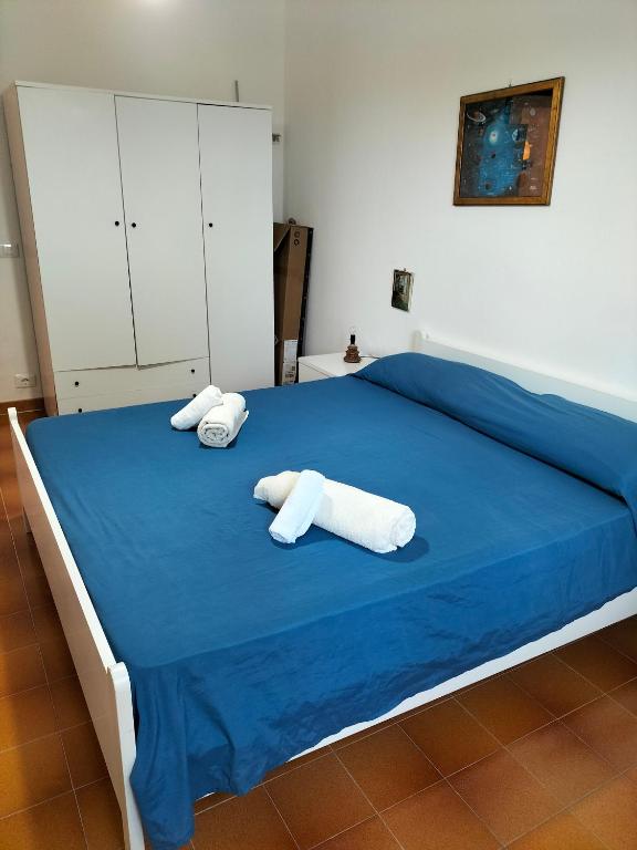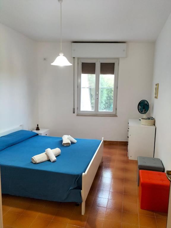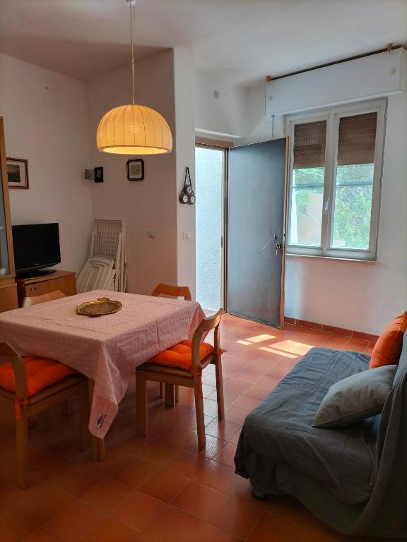 Il trilocale ristrutturato si trova al piano terra e può ospitare un massimo di 5 adulti oppure 4 adulti e 2 bambini (fino a 10 anni). Dispone di una camera da letto con letto matrimoniale e di una seconda camera con due letti singoli. Nella zona pranzo, il divano letto offre un ulteriore posto letto per due bambini (fino a 10 anni) o per un adulto. L’angolo cottura, ben attrezzato, è inserito nella zona giorno e comprende fornelli, pentole, stoviglie, posate, microonde, forno, una moka per il caffè e un frigorifero con scomparto freezer. È inoltre presente una TV satellitare. Il bagno, finestrato, è dotato di doccia, lavatrice, lavabo, bidet e WC. L'appartamento dispone di una terrazza privata recintata, arredata con tavolo e sedie, ideale per trascorrere piacevoli momenti all'aperto. Direttamente collegato si trova il giardino privato, dotato di un proprio barbecue. Qui è consentito l'uso della carbonella, offrendo la cornice perfetta per rilassanti serate nel verde.