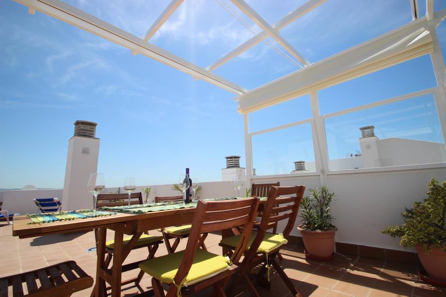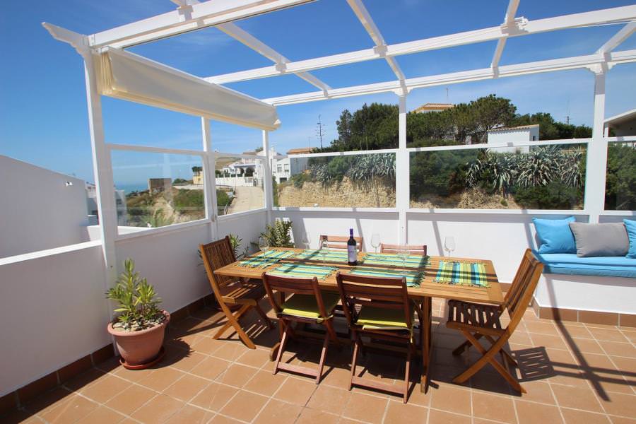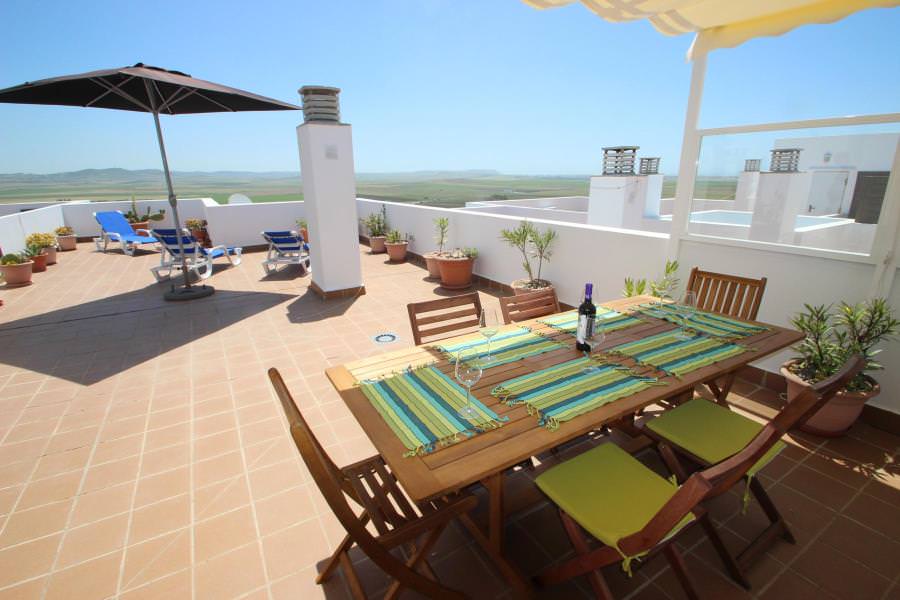 Die Wohnung ist sehr geräumig und komfortabel - die Dachterasse mit Blick bis zum Meer und zum Leuchtturm von Trafalgar ist genauso groß.
