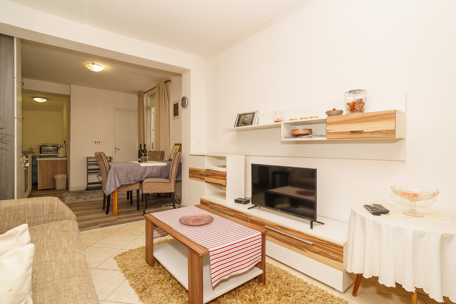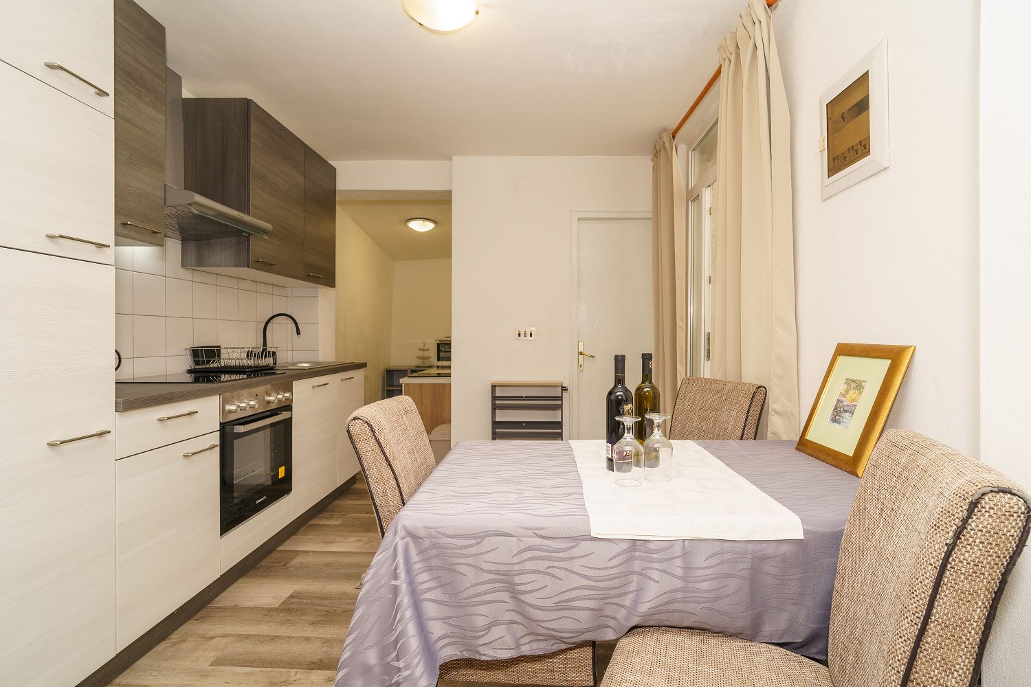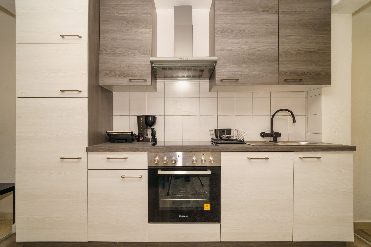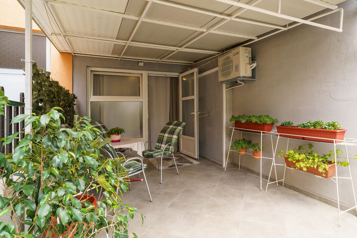 Das Wohnzimmer: Wohn-, Schlaf- und Esszimmer sowie Küche sind ein Raum. Es gibt eine Terrasse und Fliesen sowie Satellitenfernsehen. Küche mit Geschirr und Küchenhandtüchern, Elektro-/Gasherd mit vier Kochplatten, Backröhre, Kühlschrank mit Gefrierfach, Filterkaffeemaschine Bad mit WC und Dusche Eigene Terrasse, überdacht, Bestuhlung, Terrassengröße: 13 m² Parkplatz beim Haus, Klimaanlage, Eigentümer lebt im gleichen Haus, Bettwäsche und Handtücher vorhanden, Waschmaschine im Apartment, Internet per WLAN