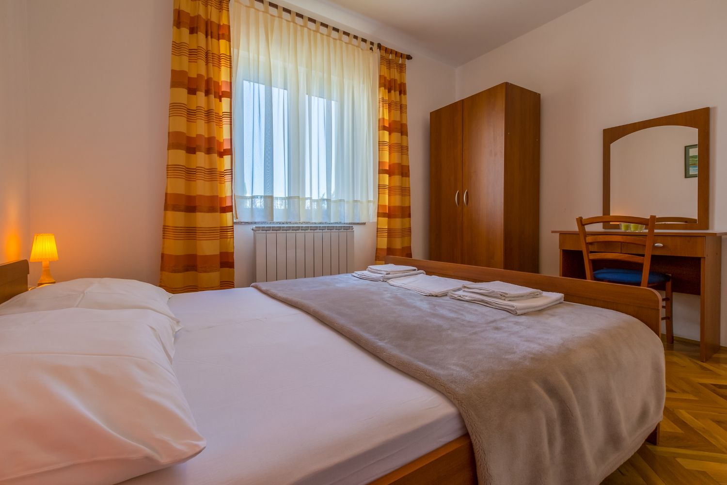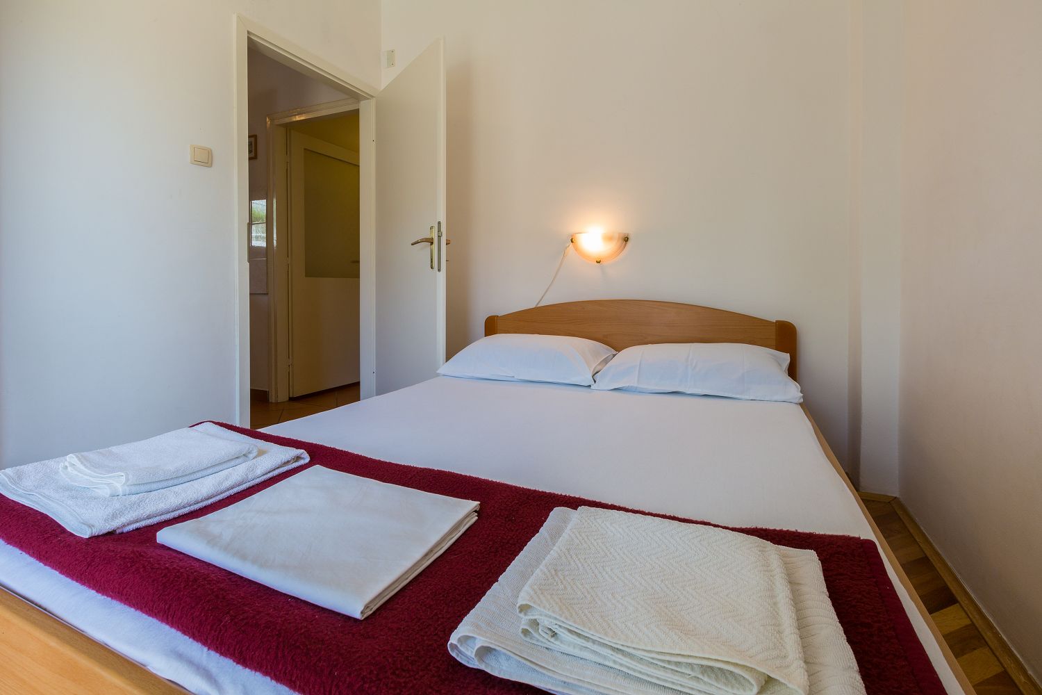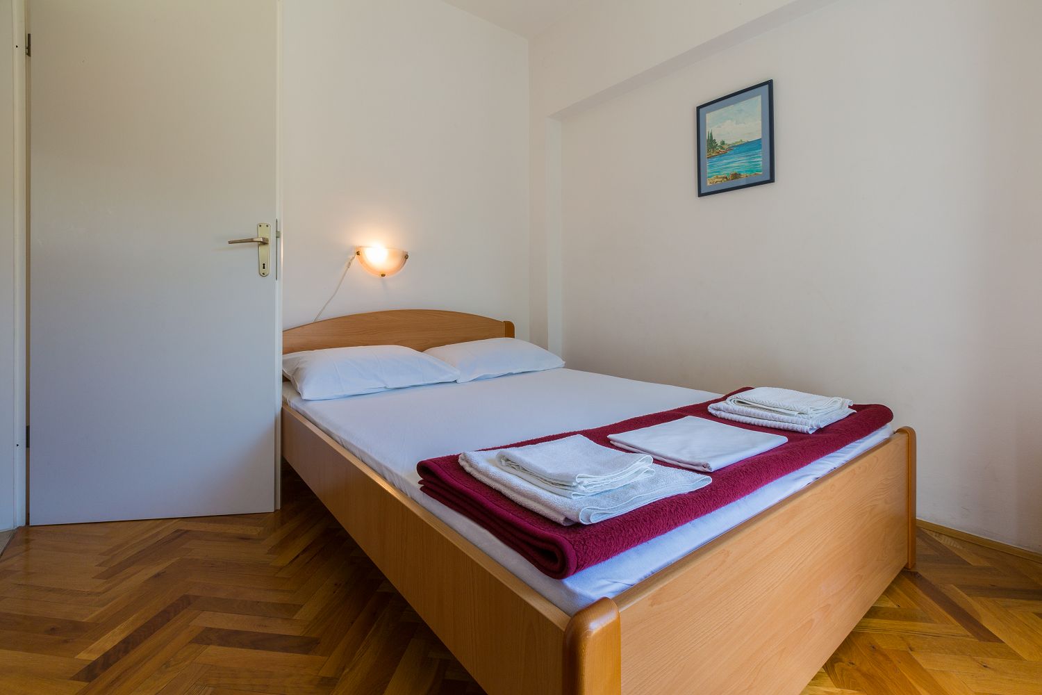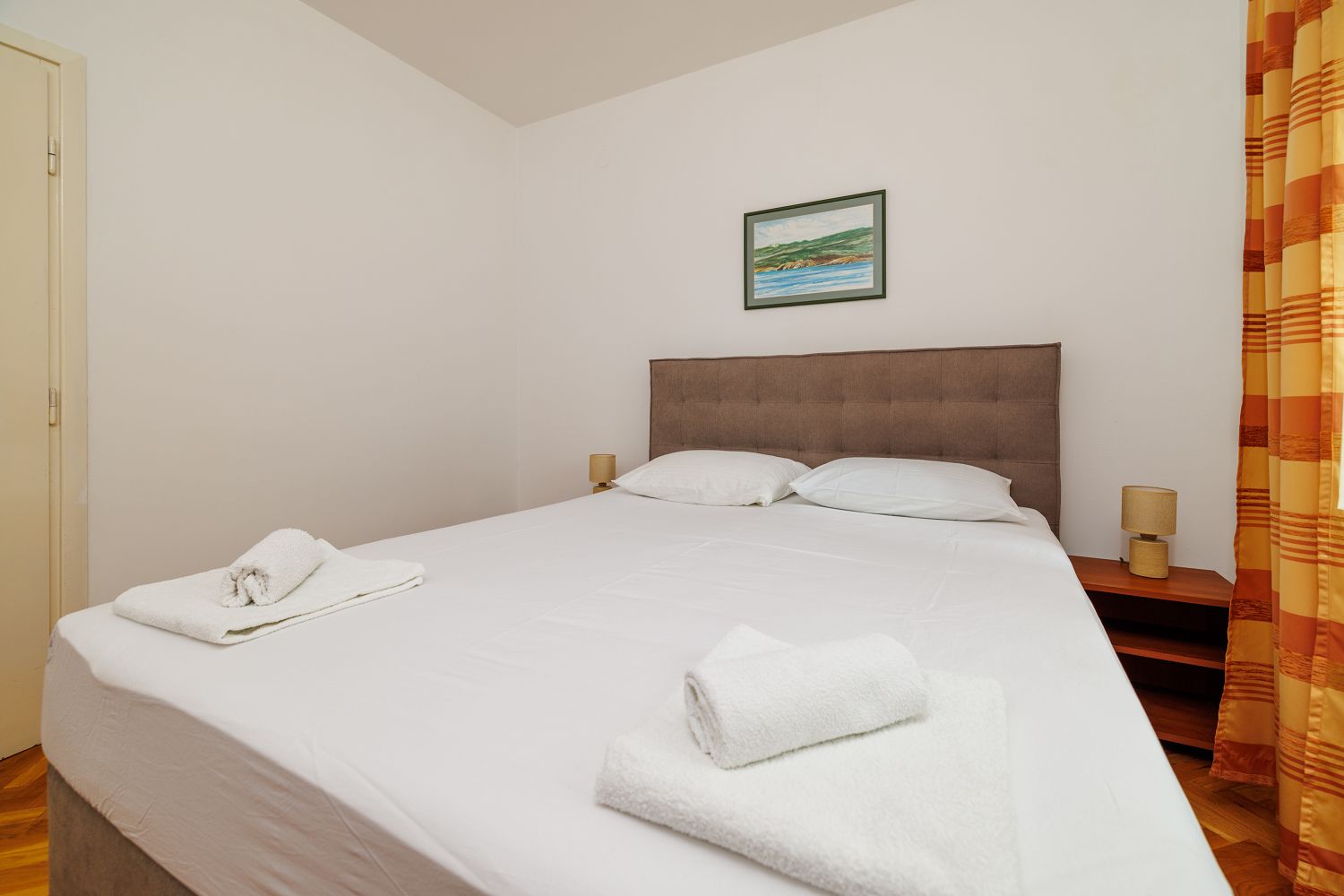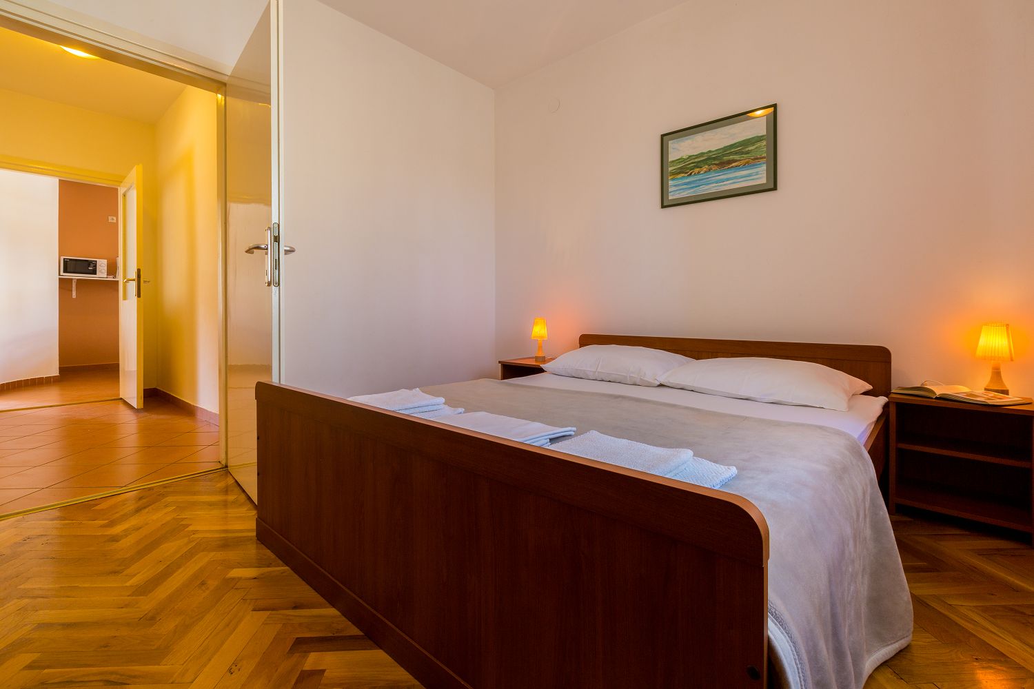 Ferienwohnung für zwei bis drei Personen in Crikvenica im ersten Stock, 36 m², zwei Schlafzimmer, ein Bad, Balkon, Klimaanlage, Satellitenfernsehen, Parkplatz auf dem Grundstück, Haustiere bis fünf Kilogramm sind erlaubt. Die Ferienwohnung besteht aus zwei Schlafzimmern, einem Badezimmer, einem Esszimmer mit Küche in einem Raum und einem kleinen Balkon. Die Unterkunft verfügt über eine Klimaanlage, Satellitenfernsehen und WLAN.