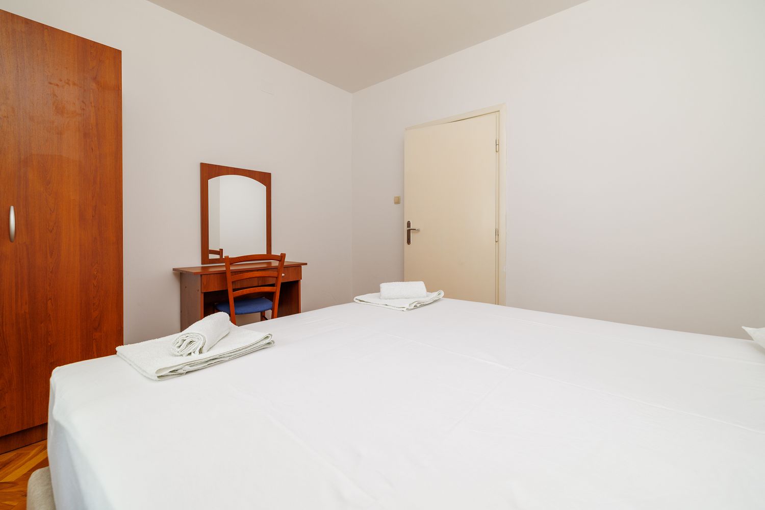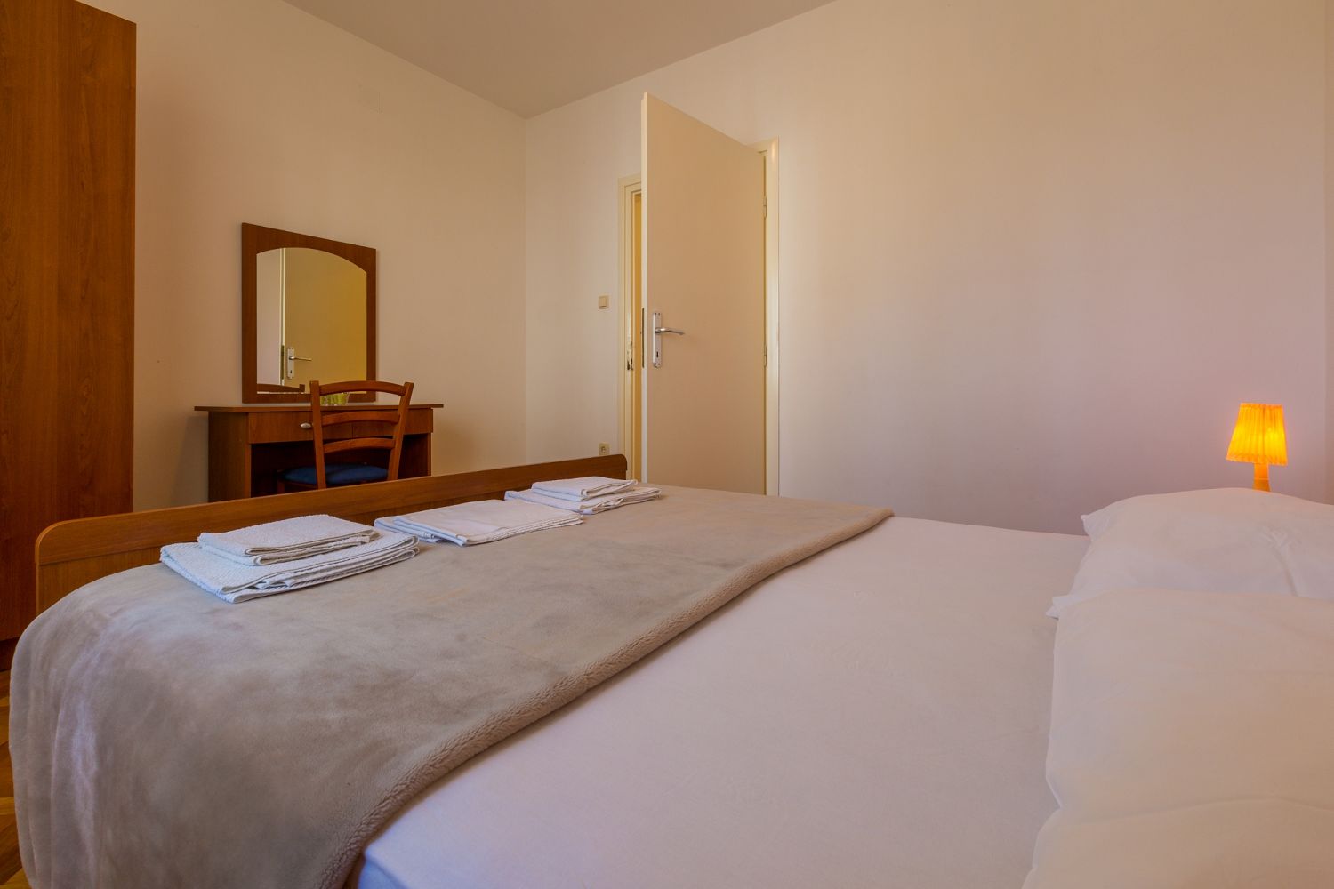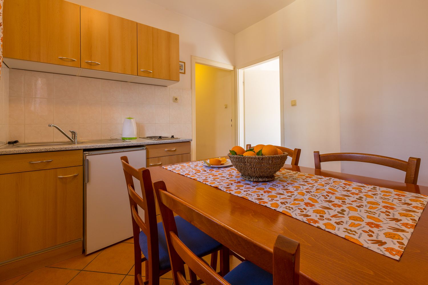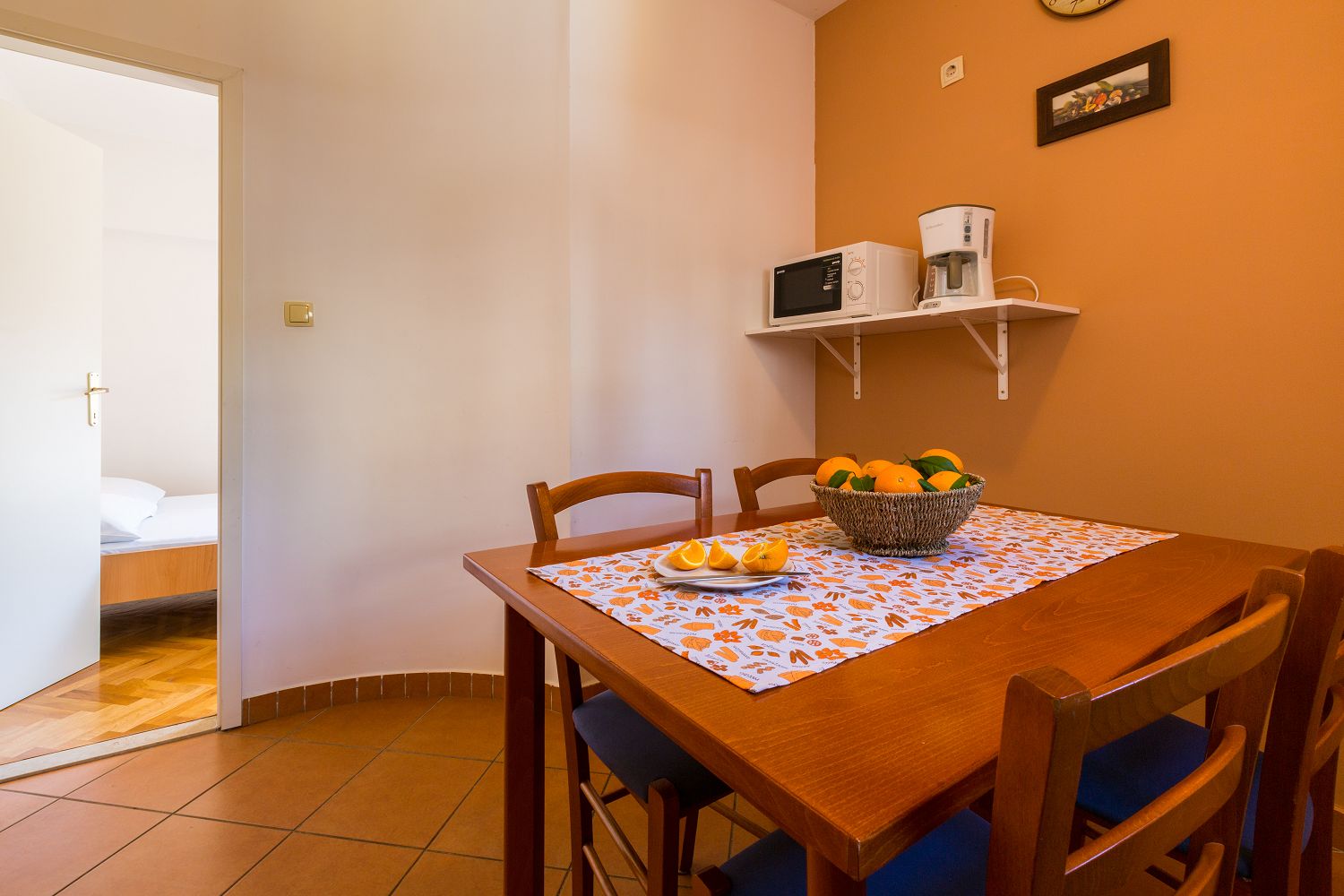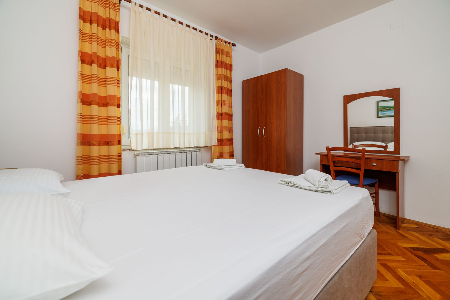 Ferienwohnung für zwei bis drei Personen in Crikvenica im ersten Stock, 36 m², zwei Schlafzimmer, ein Bad, Balkon, Klimaanlage, Satellitenfernsehen, Parkplatz auf dem Grundstück, Haustiere bis fünf Kilogramm sind erlaubt. Die Ferienwohnung besteht aus zwei Schlafzimmern, einem Badezimmer, einem Esszimmer mit Küche in einem Raum und einem kleinen Balkon. Die Unterkunft verfügt über eine Klimaanlage, Satellitenfernsehen und WLAN.
